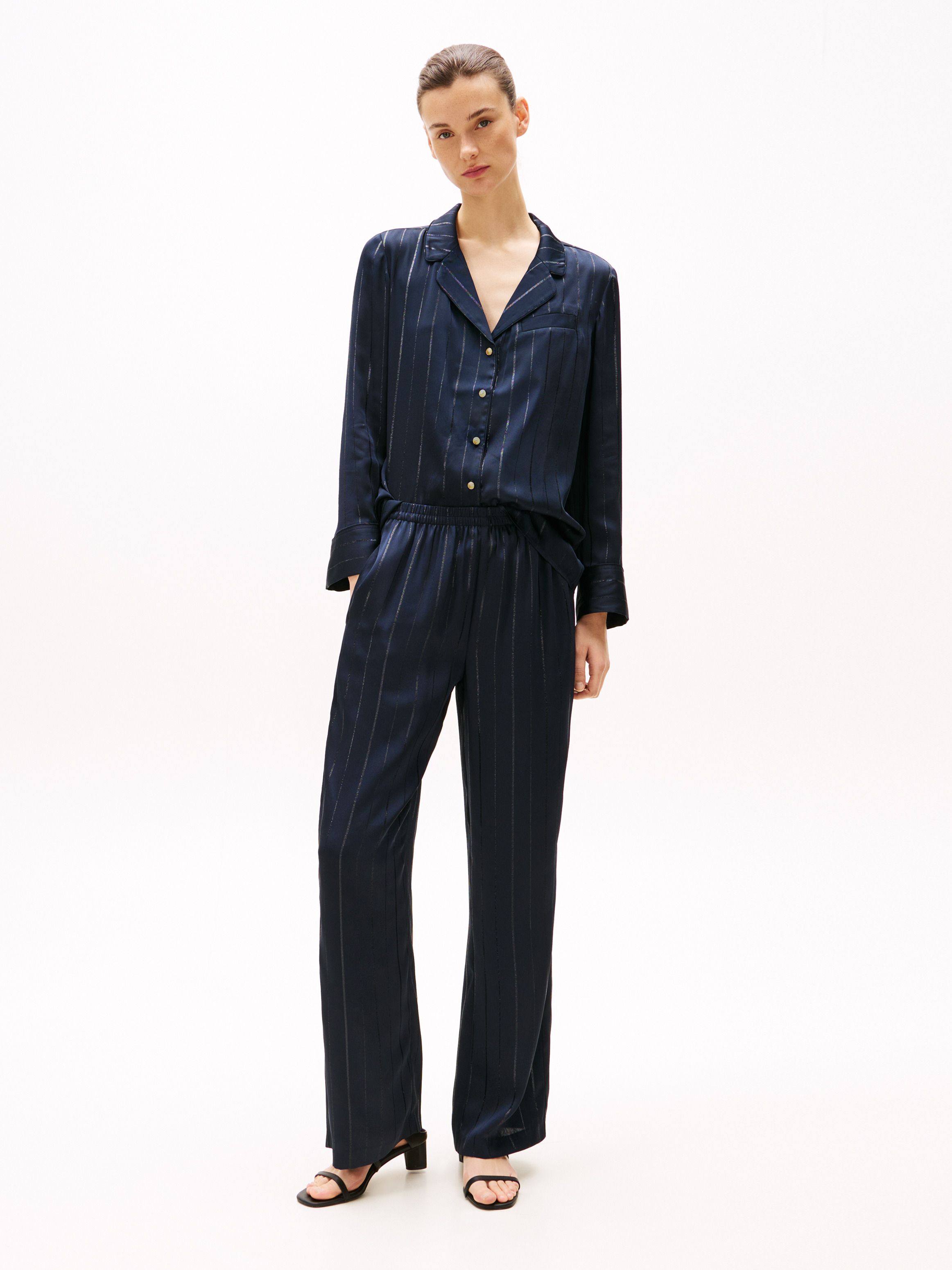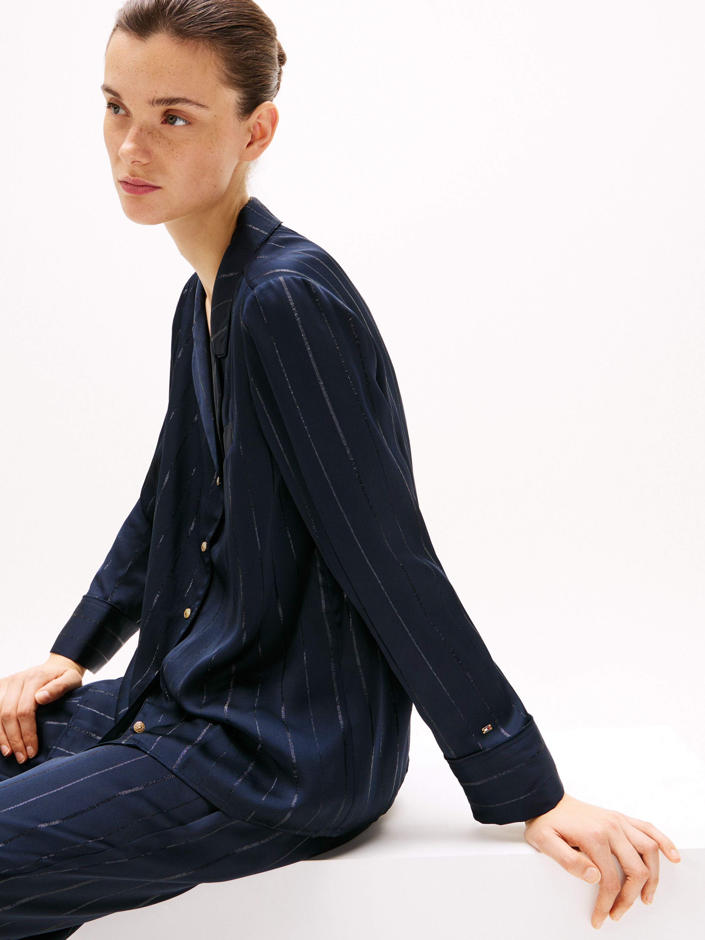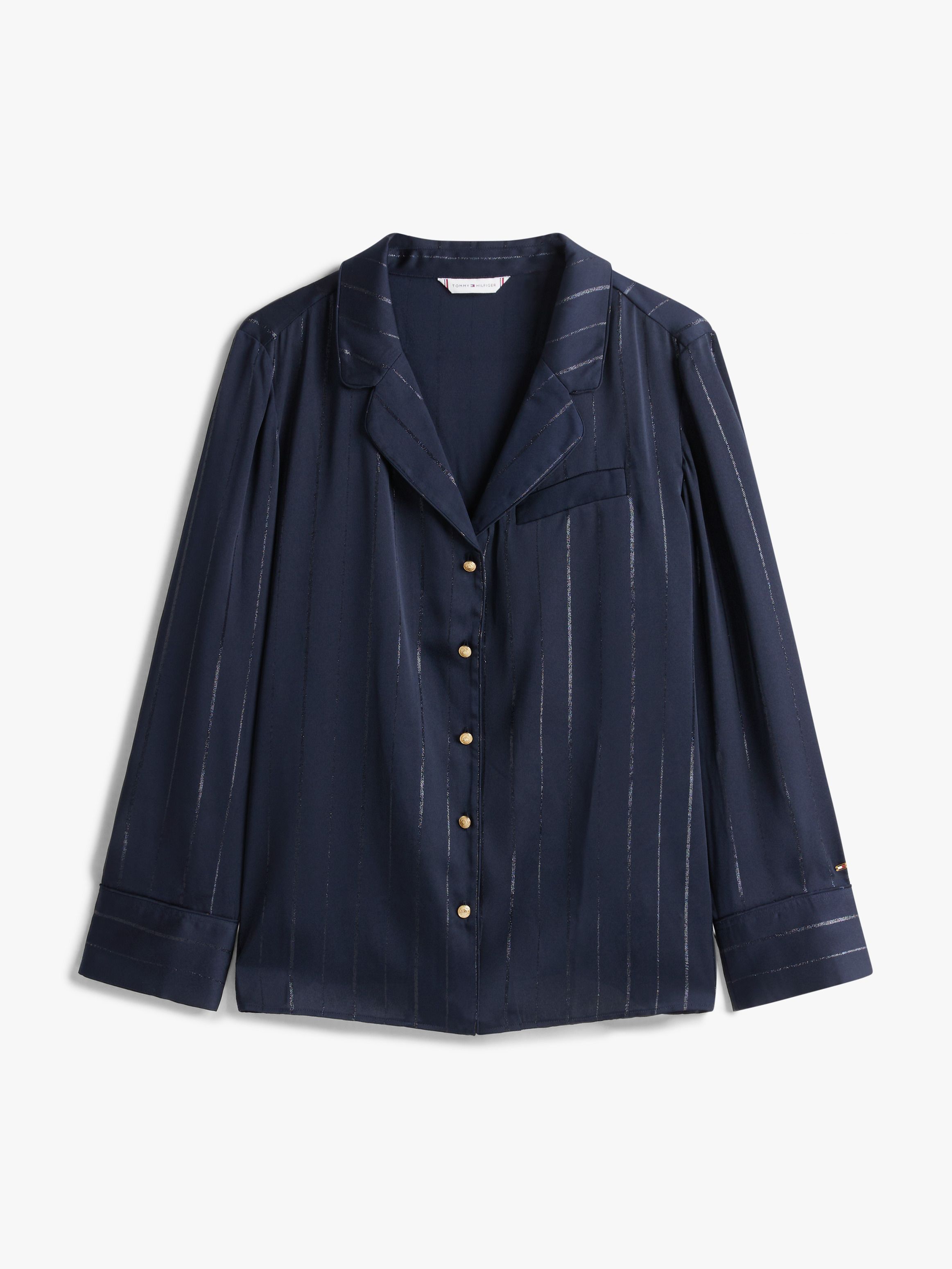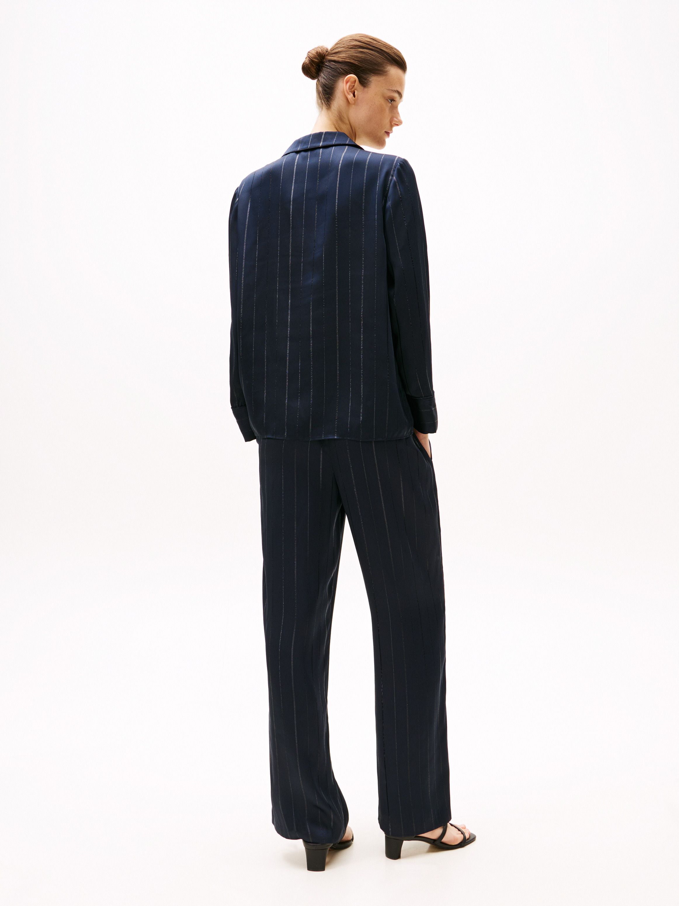 This party-ready blouse features tonal metallic stripes throughout, emphasising the fluidity of the fabric and the relaxed silhouette.
