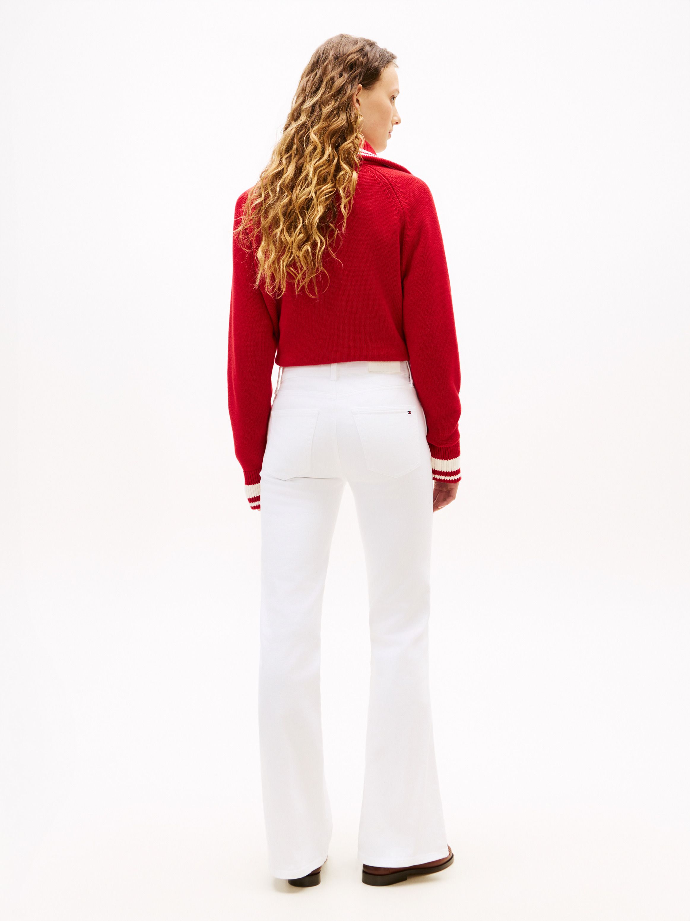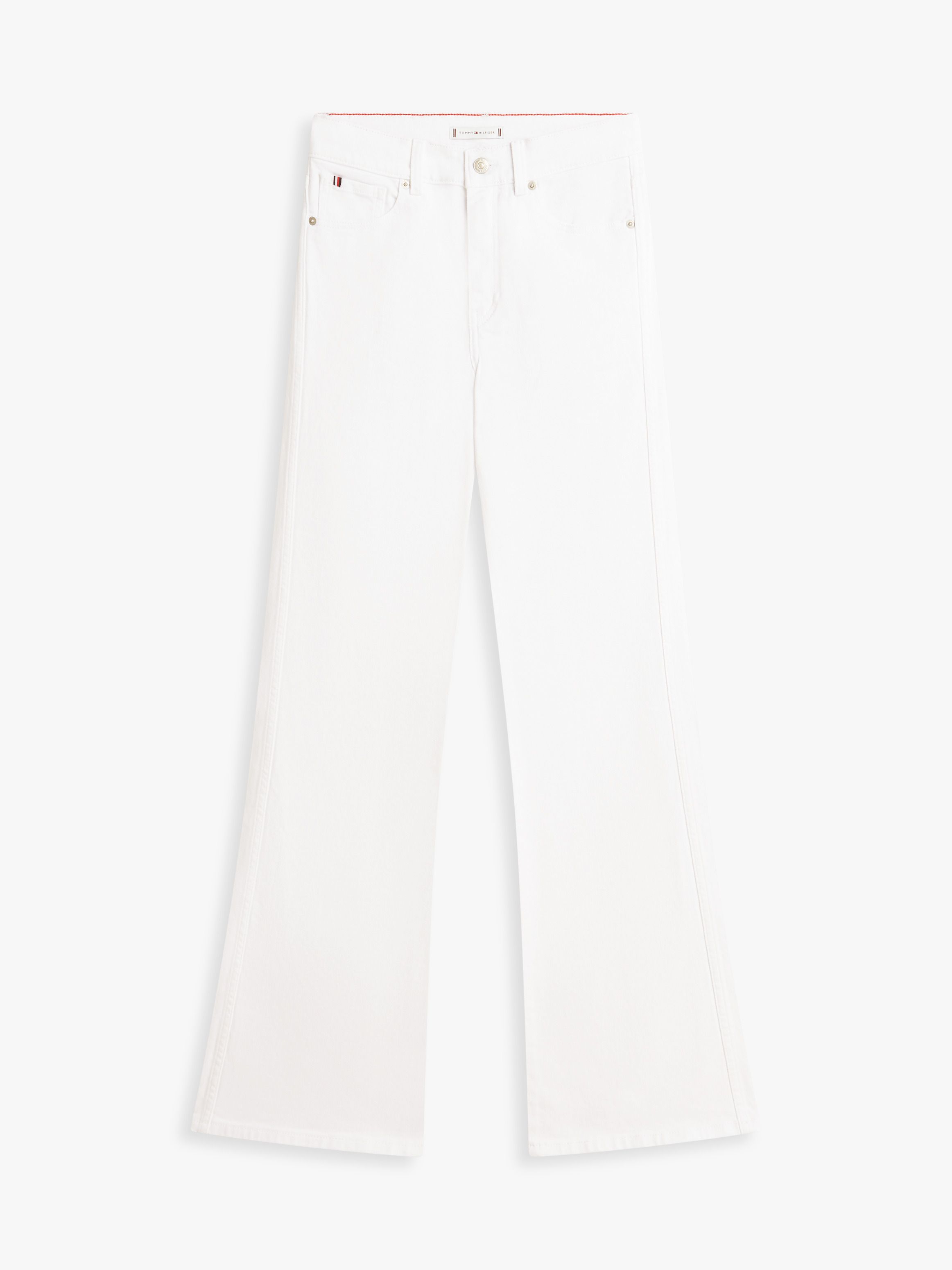 • Stretch cotton denim • Zip with button closure • Five-pocket styling • Branded metal button and rivets • Signature tape on coin pocket • Tommy Hilfiger branding • Tommy Hilfiger flag embroidery on back pocket