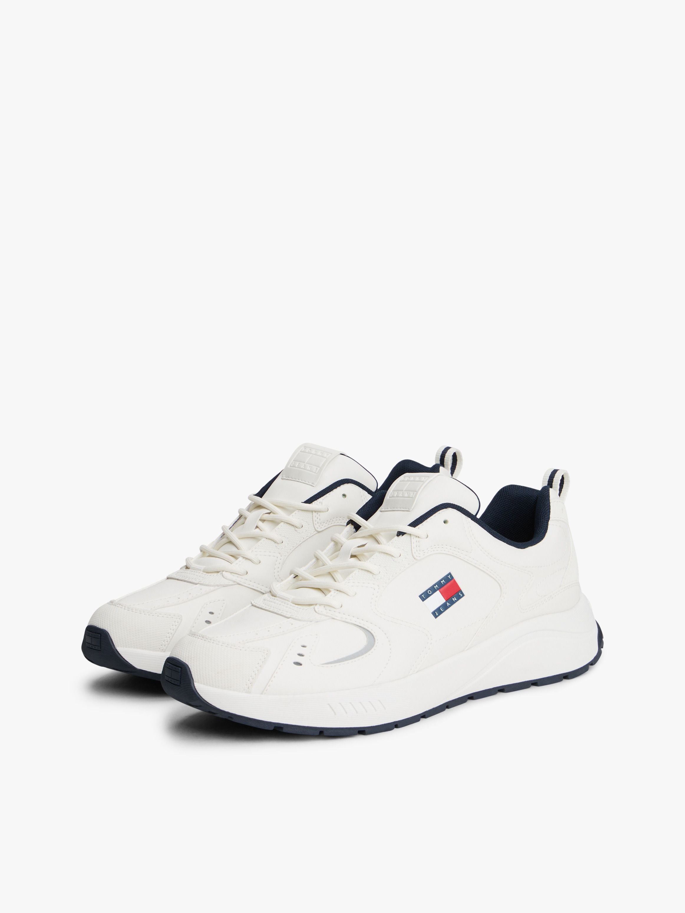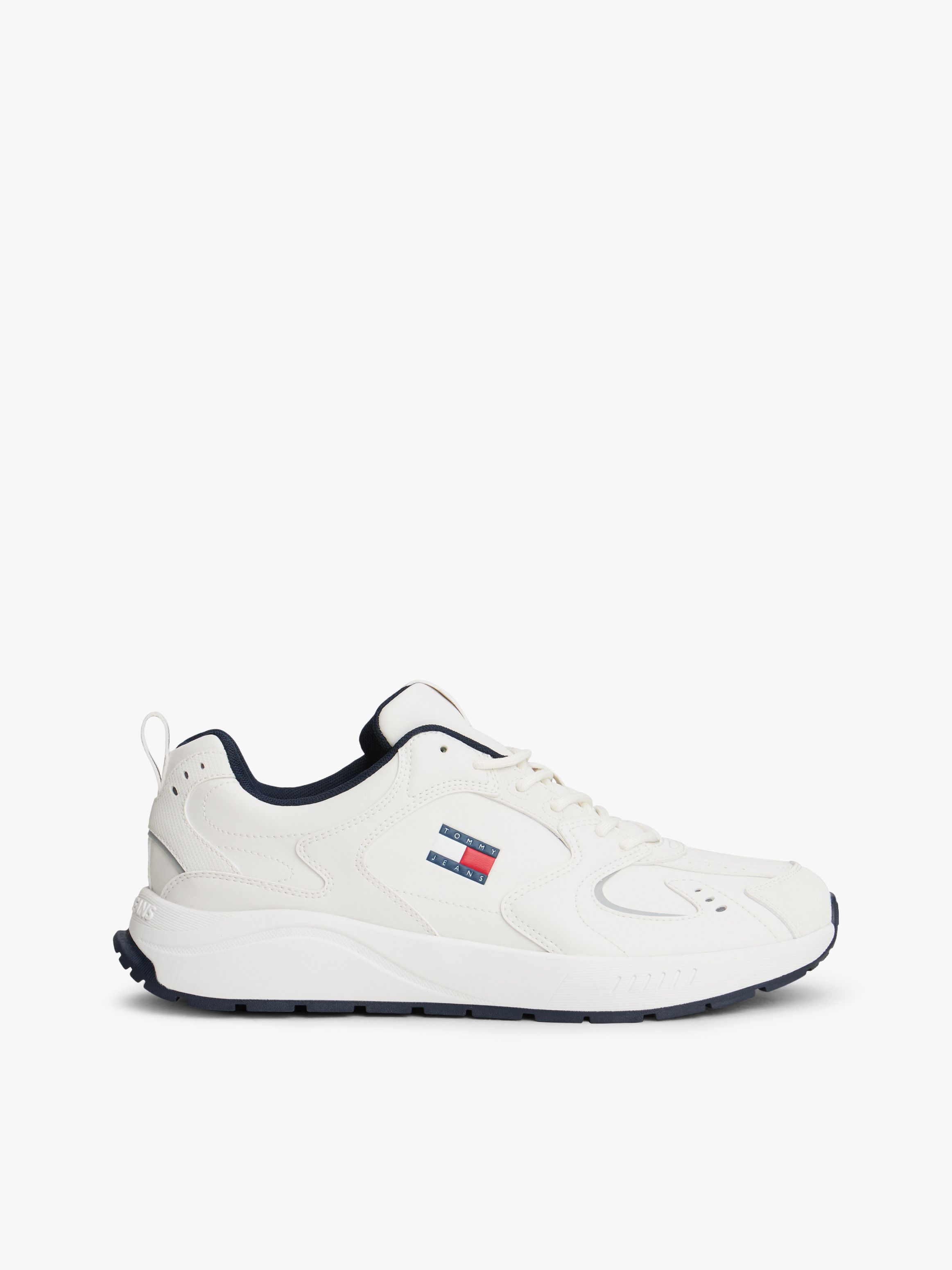 • Mixed upper: polyurethane, polyester • Polyester lining • Removable insock • Rubber cleated outsole • Mixed texture panels • Pull-on loop • Tommy badge on side • Tommy badge debossed on tongue • Tommy Jeans logo embossed on midsole • Tommy Jeans branding