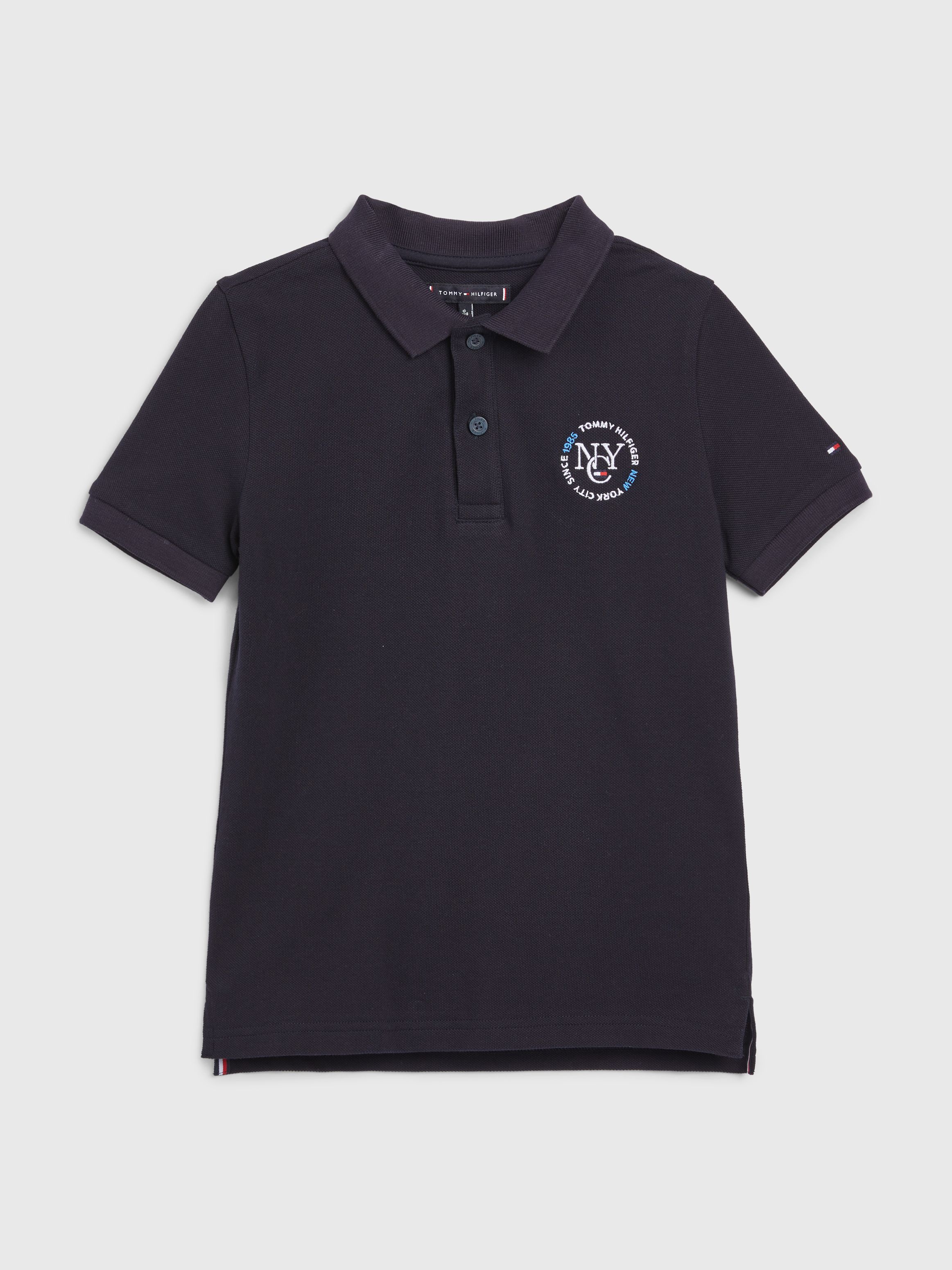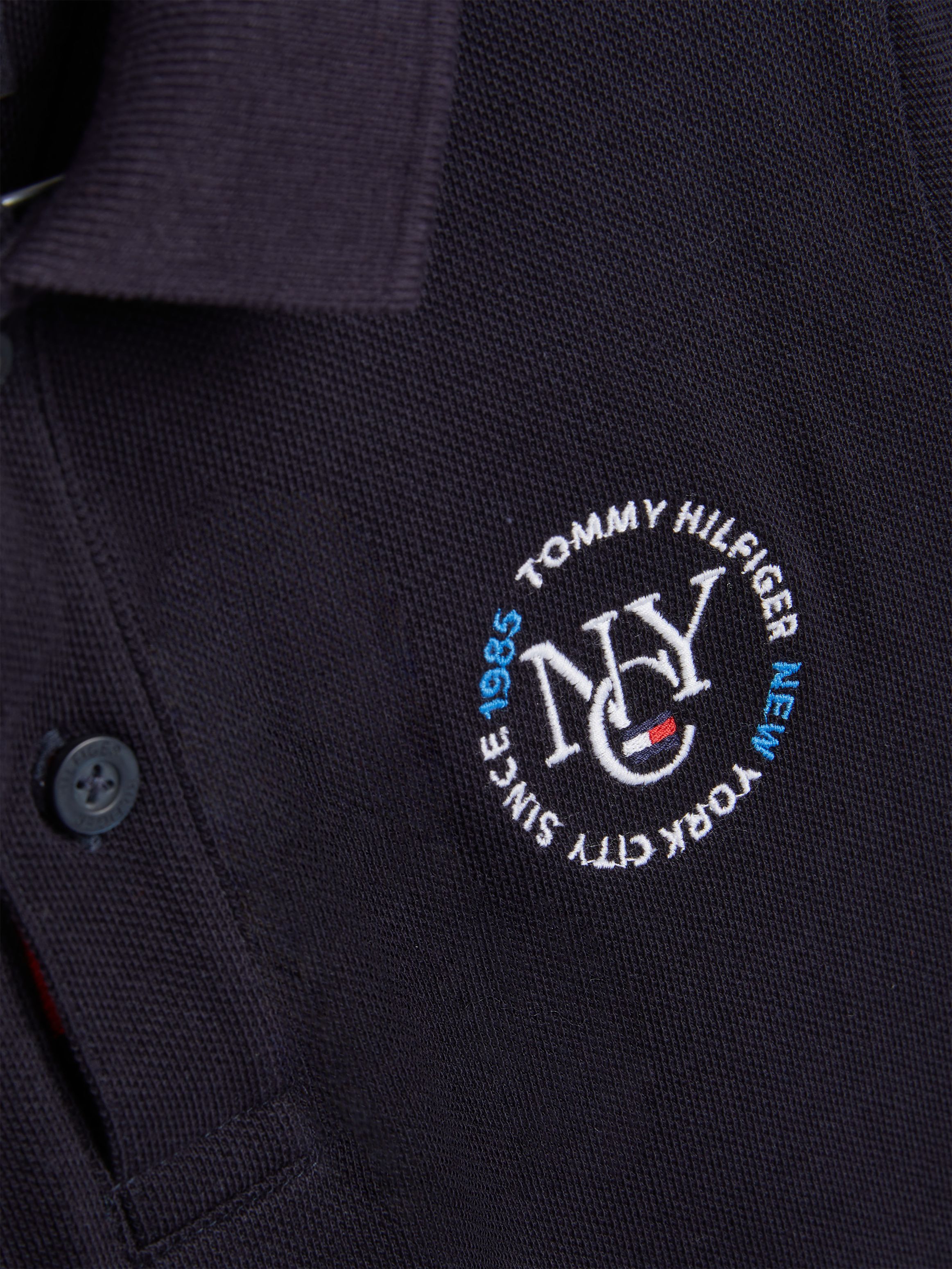 • Pure organic cotton pique • Polo collar • Two-button placket • Signature detailing inside placket • Tommy Hilfiger NYC logo embroidery on chest and back • Tommy Hilfiger branding • Tommy Hilfiger flag embroidery at cuff