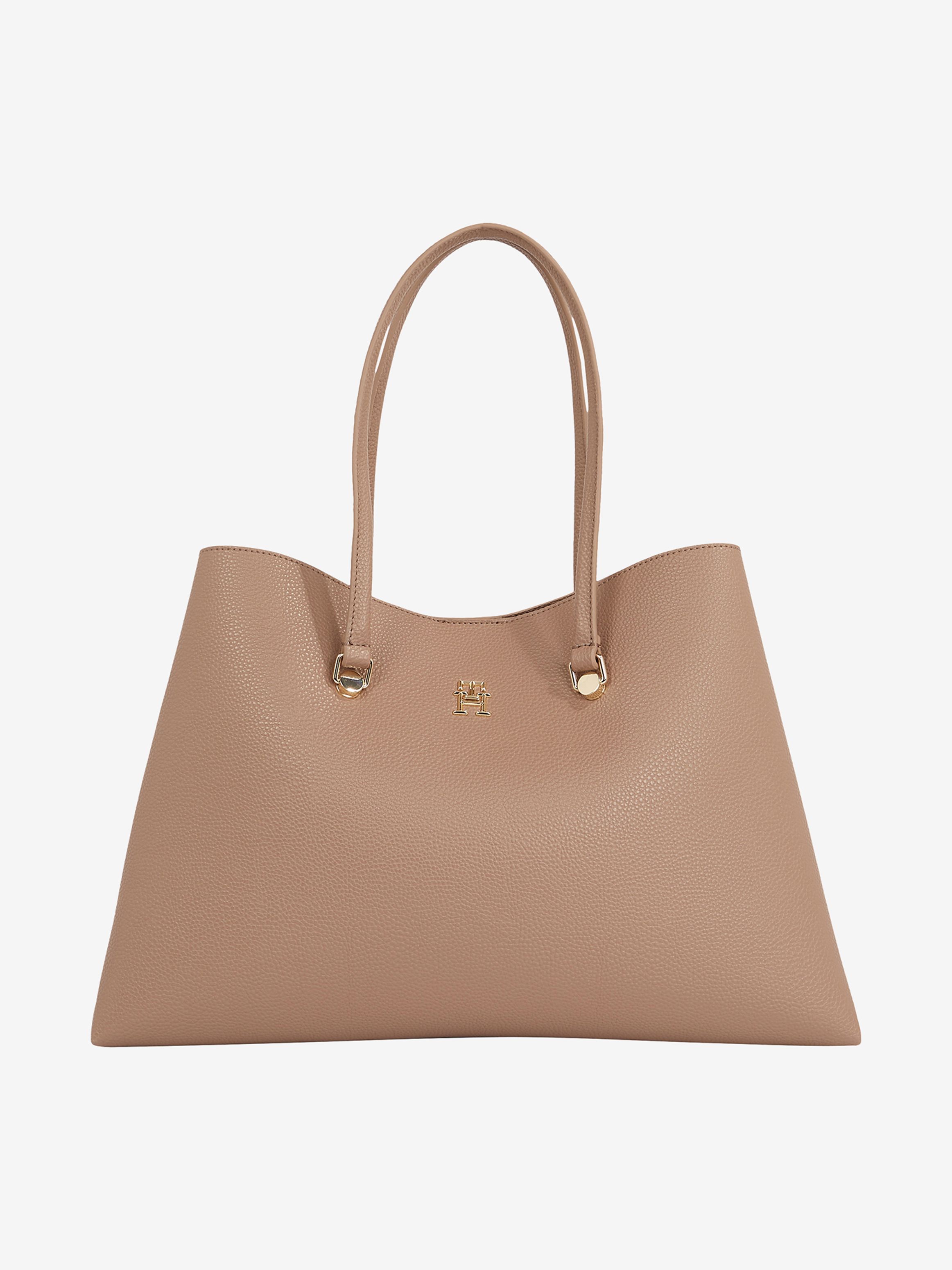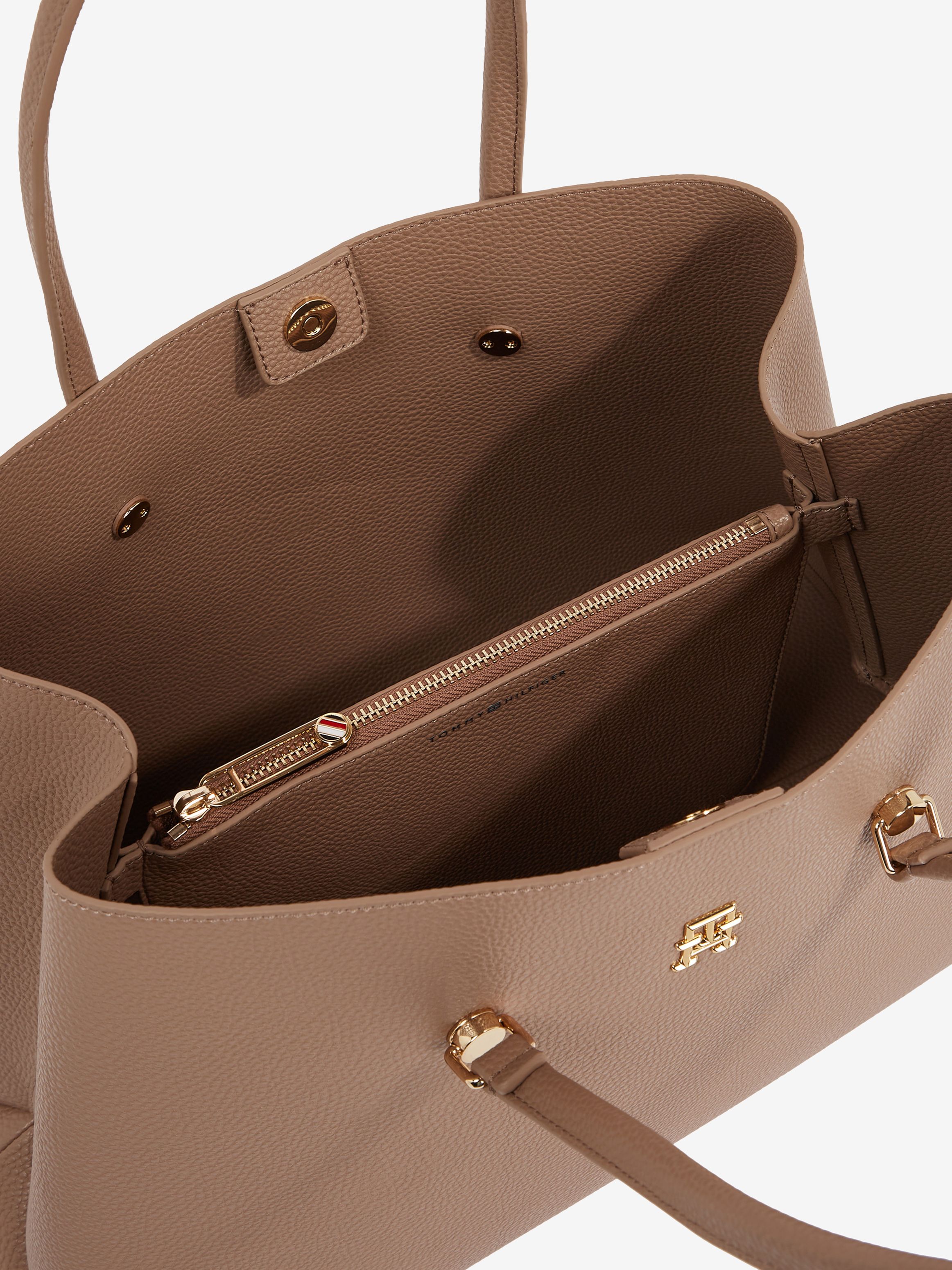 • Pebble grain finish • Magnetic closure • Two top handles • Two main compartments • One interior zipped compartment • TH monogram plaque on front • Tommy Hilfiger branding