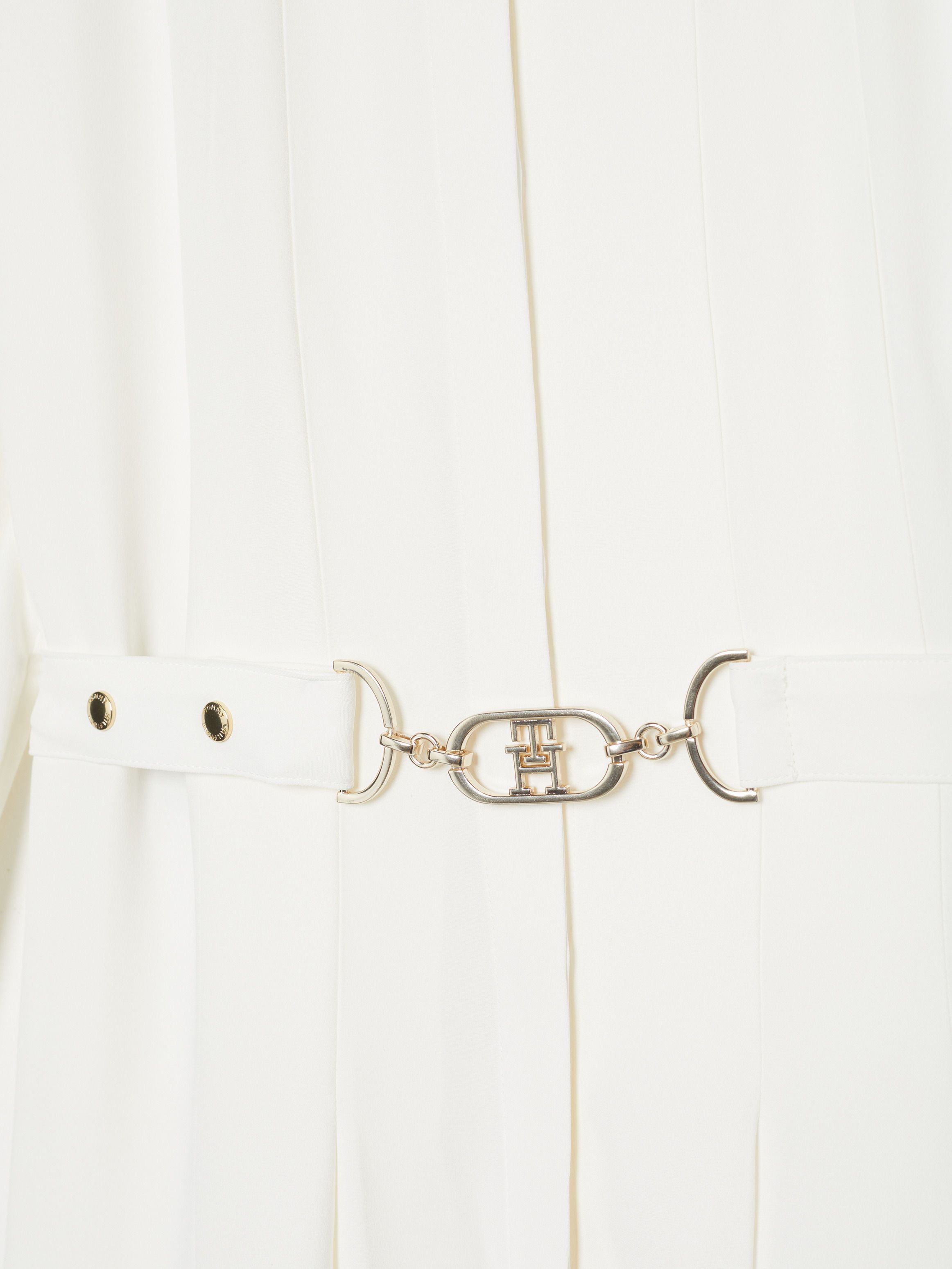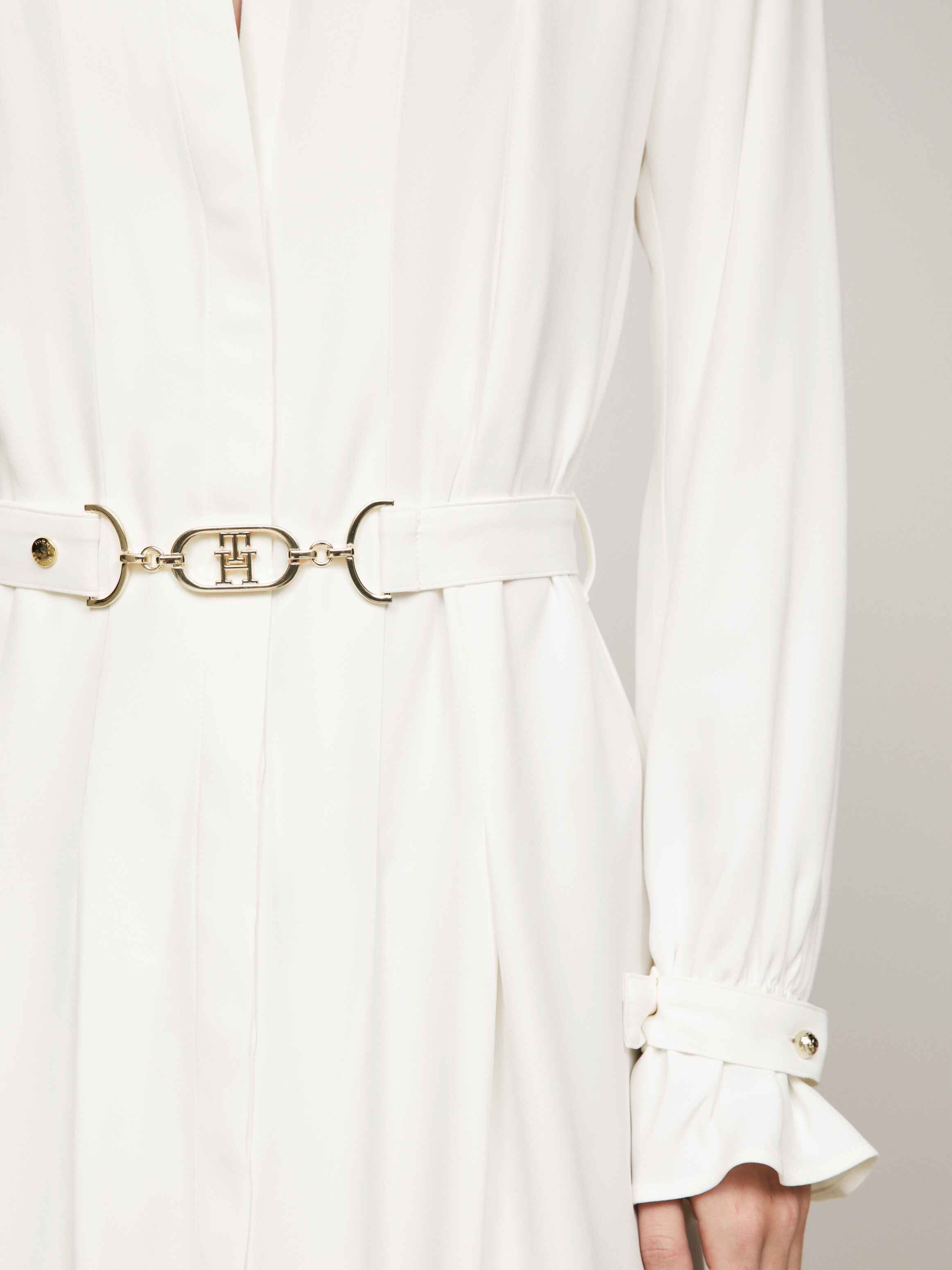 • Pleated Belted Horsebit Maxi Shirt Dress