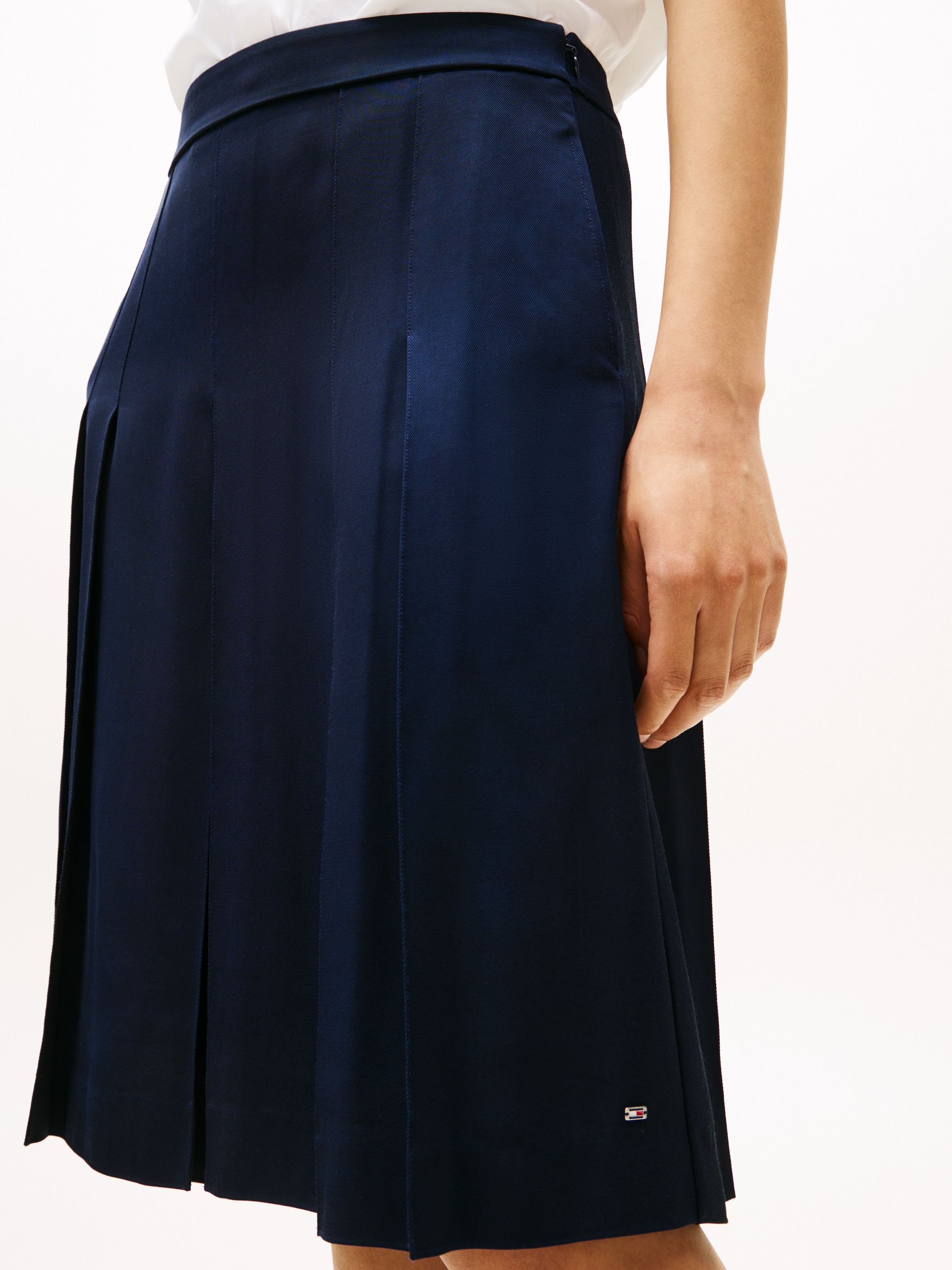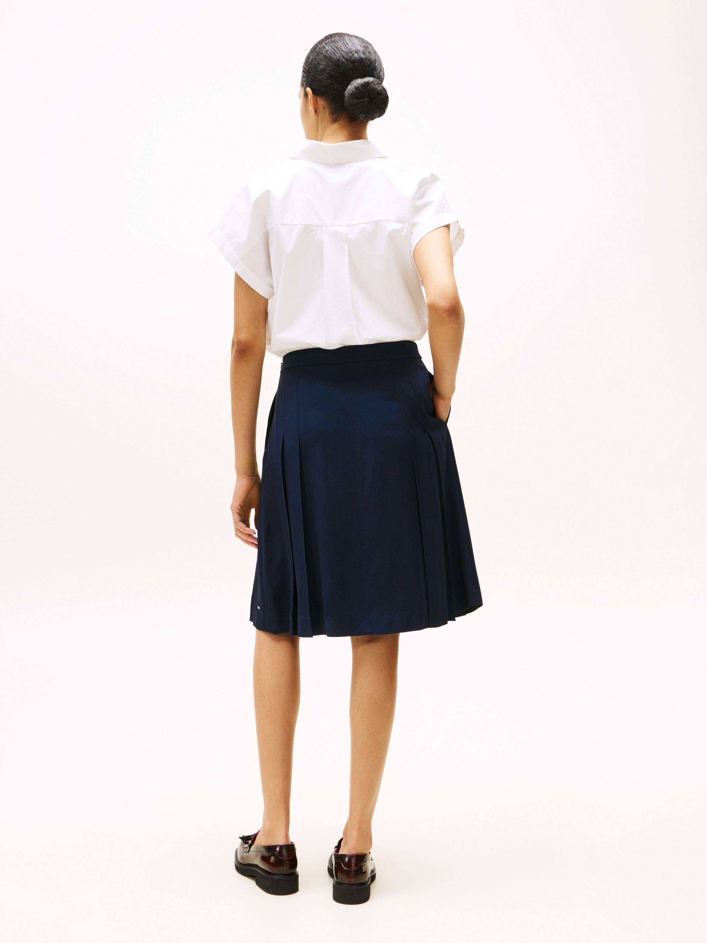 This twill skirt is made to a pencil-inspired shape for a flattering silhouette and features wide pleats for added movement.