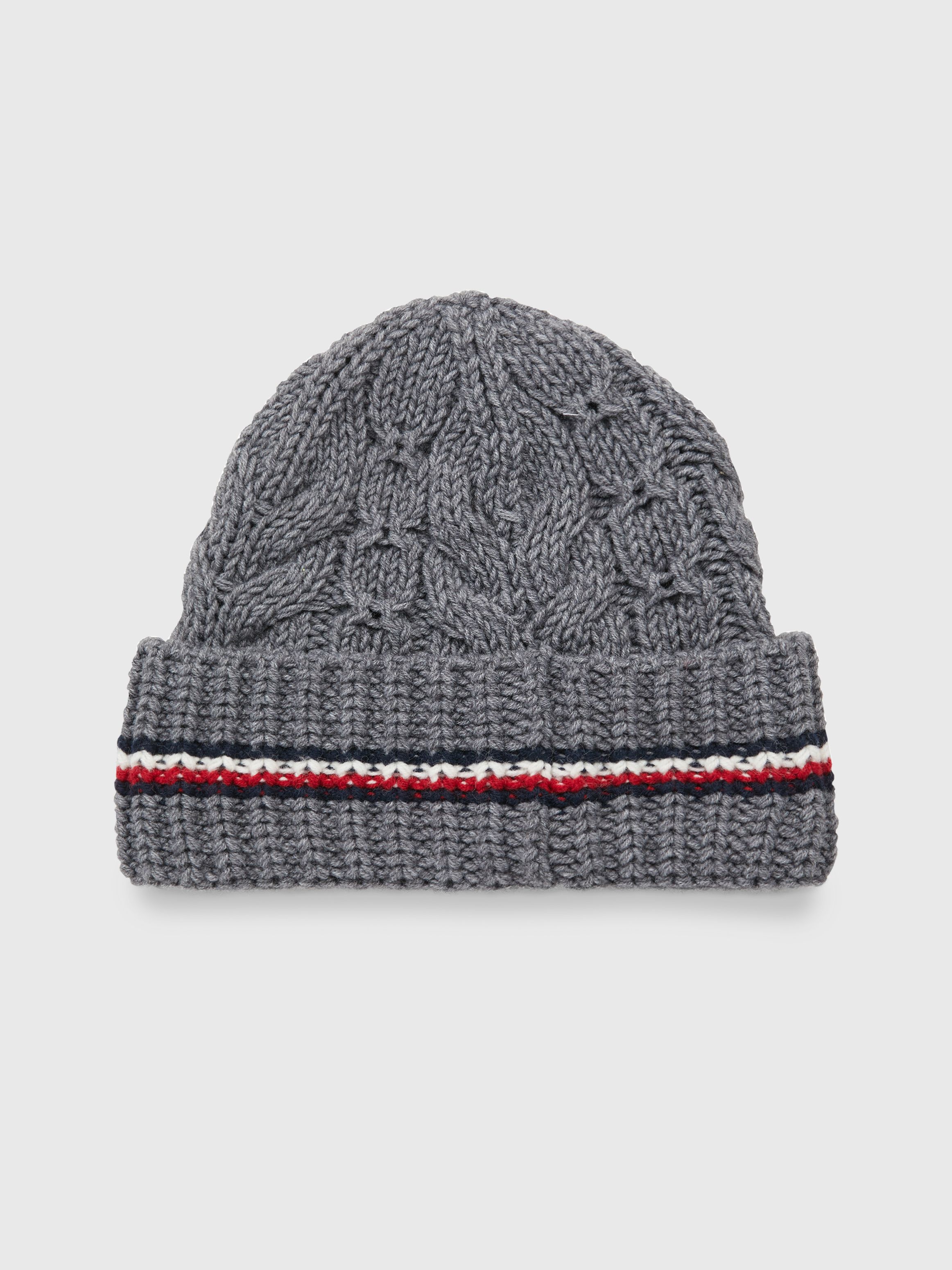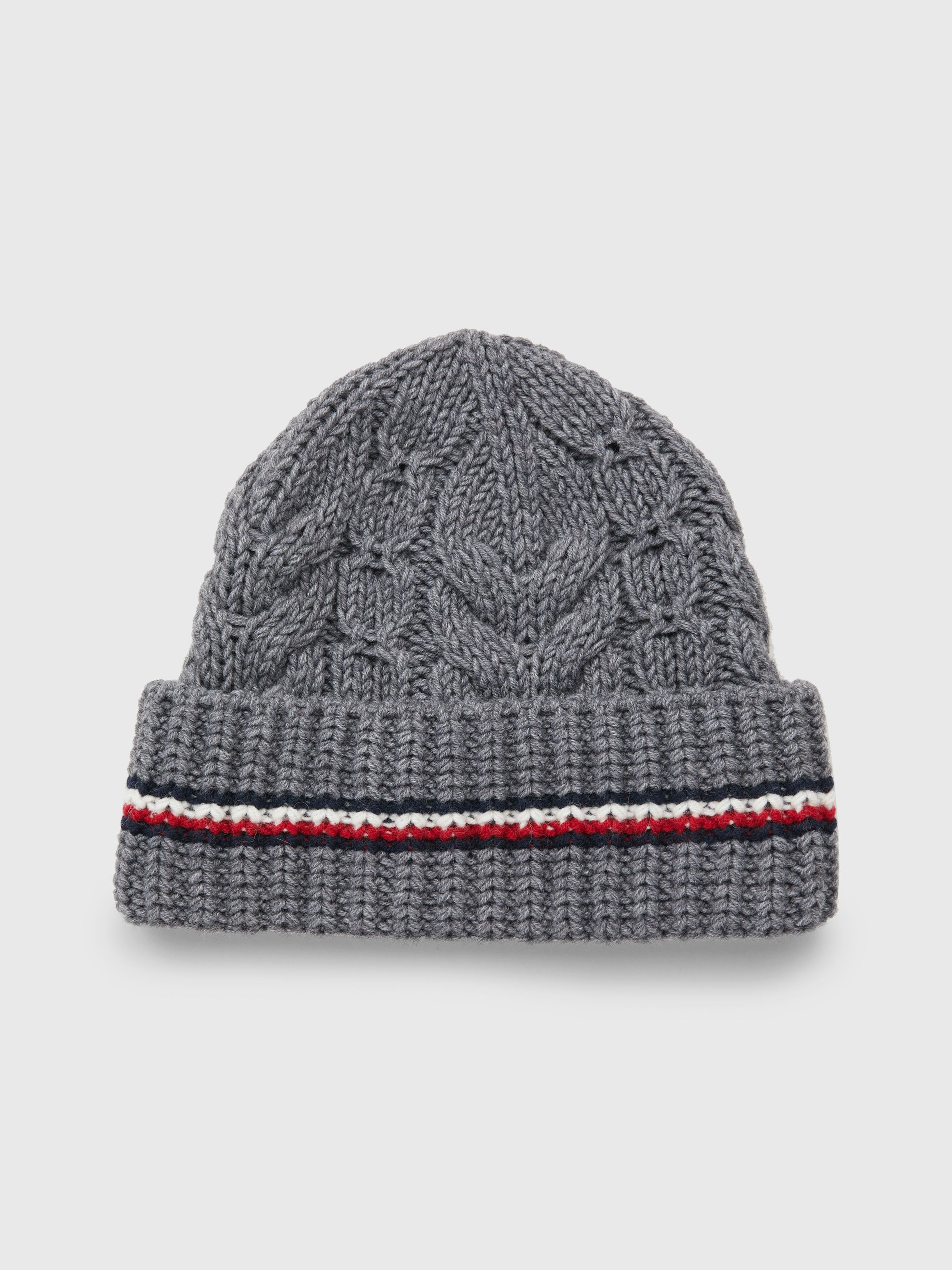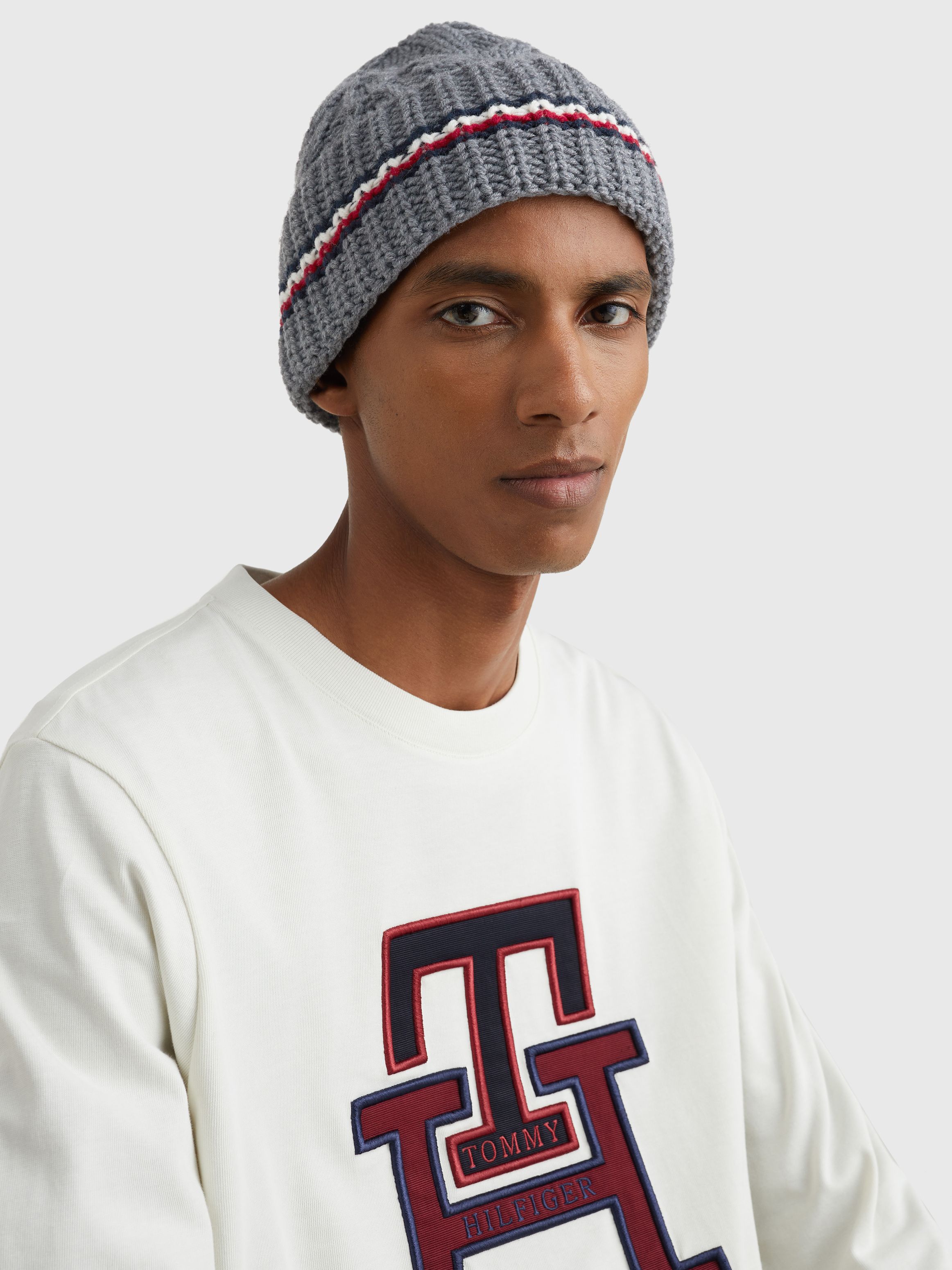Add a pop of colour to your cool-weather look with the signature design woven into this chunky cable-knit beanie.
