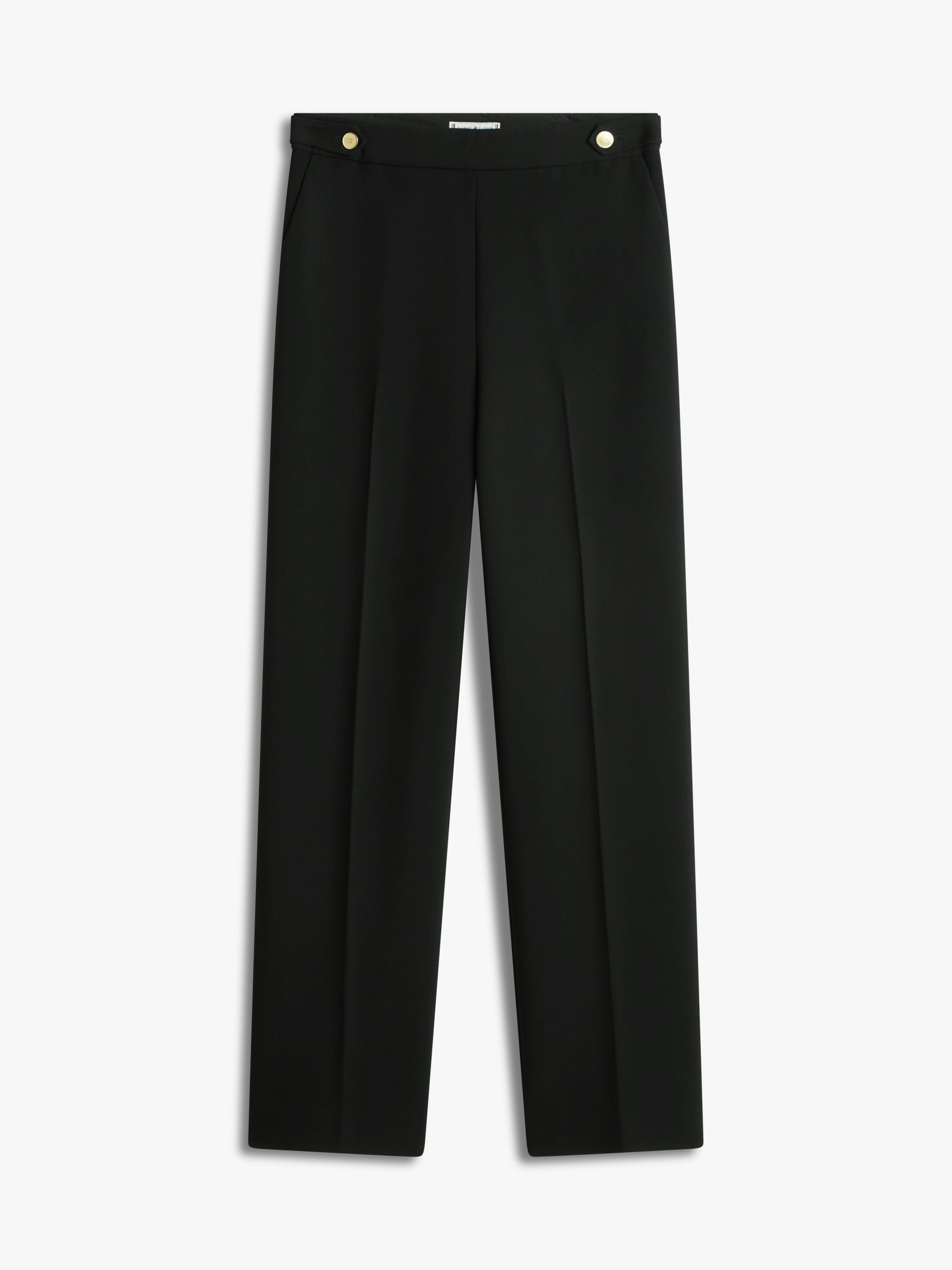 • Stretch viscose • Pressed front and back creases • Two buttoned waist tabs • Two side angled slip pockets • Two back flap pockets • Tommy Hilfiger branding • Tommy Hilfiger metal flag on back