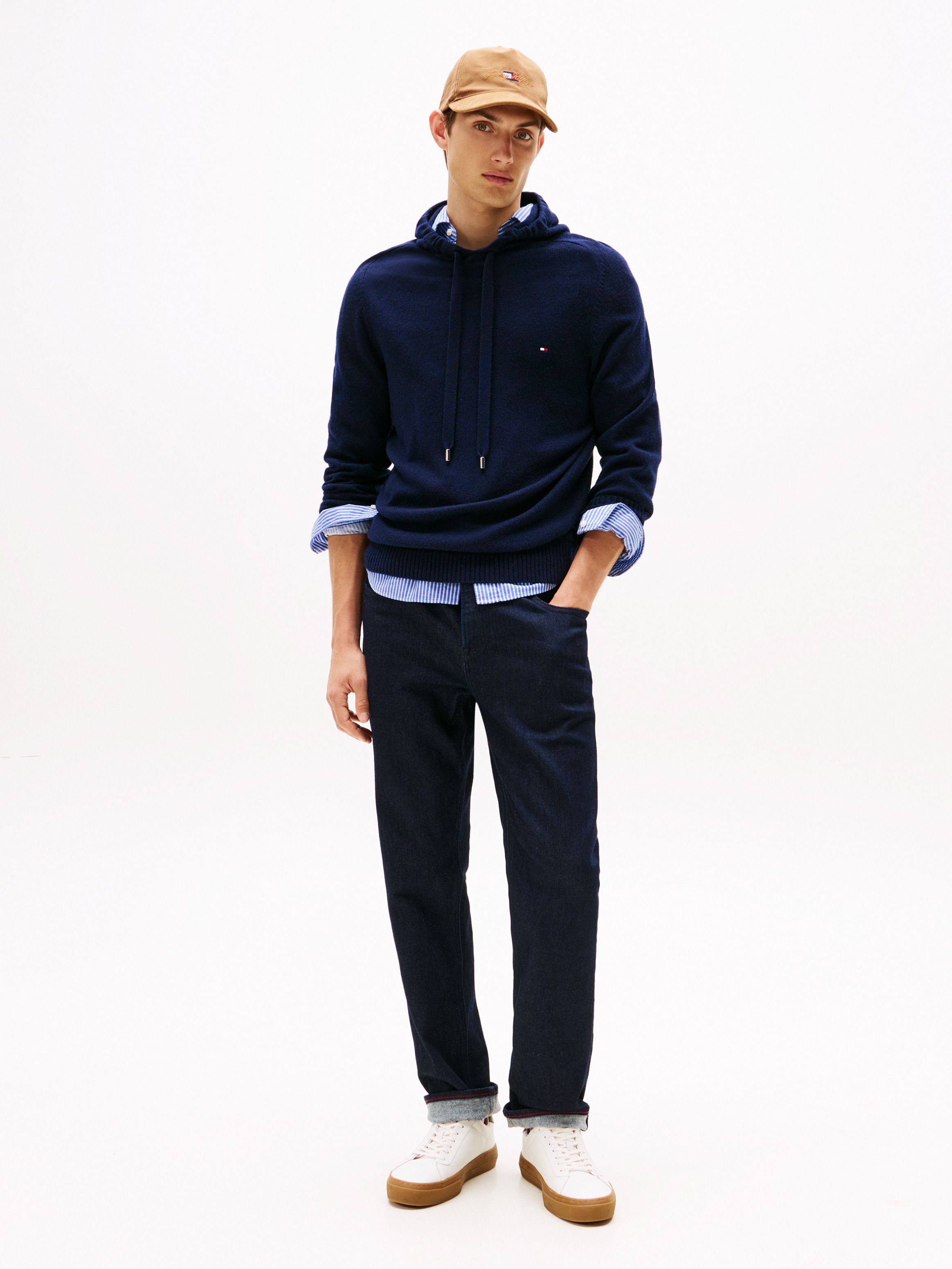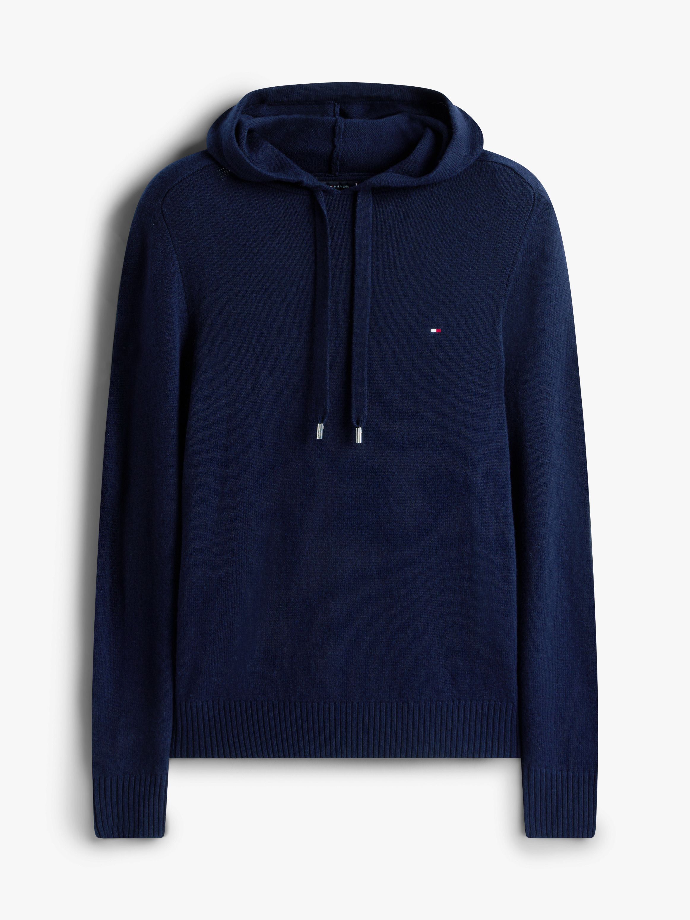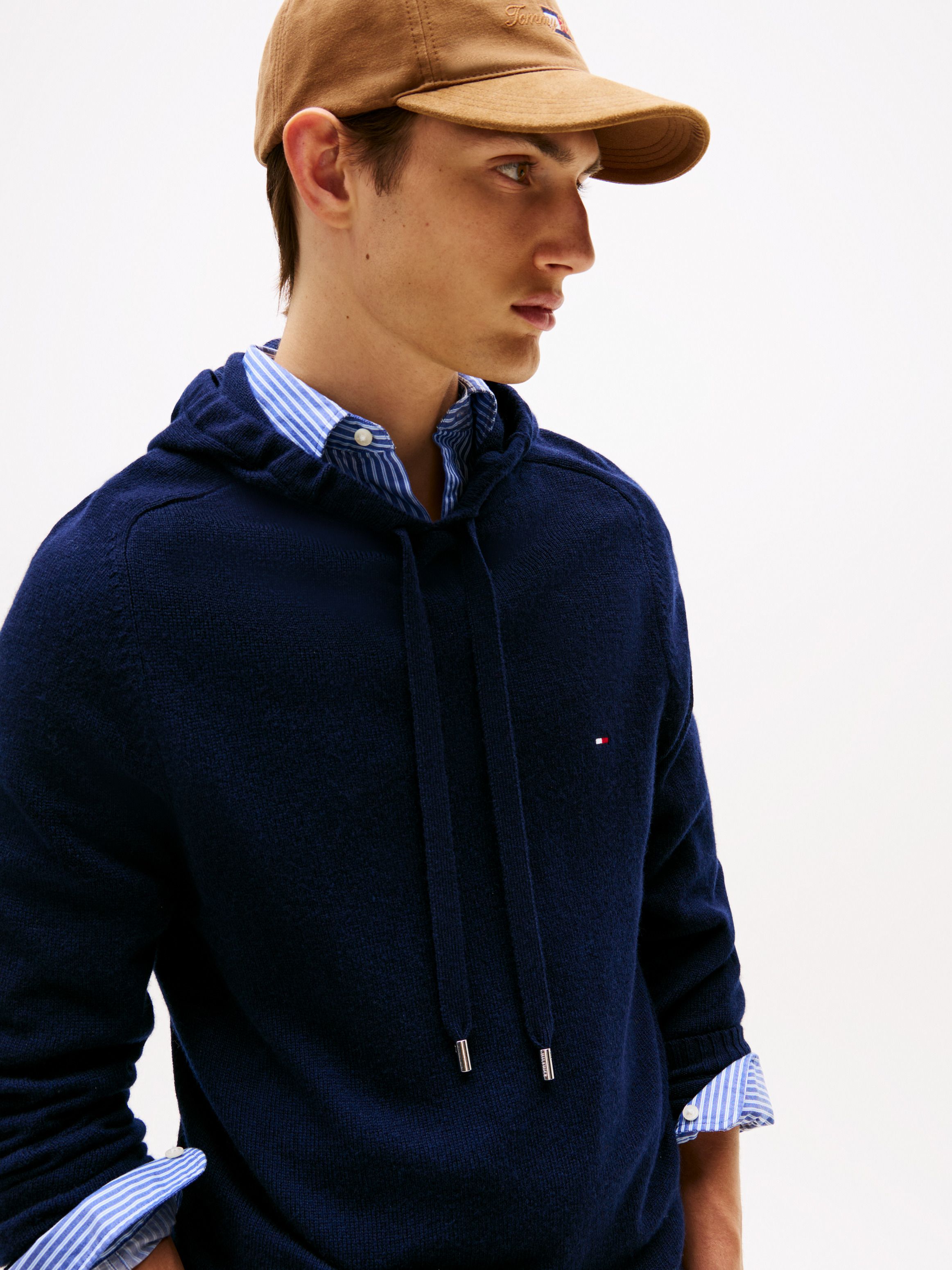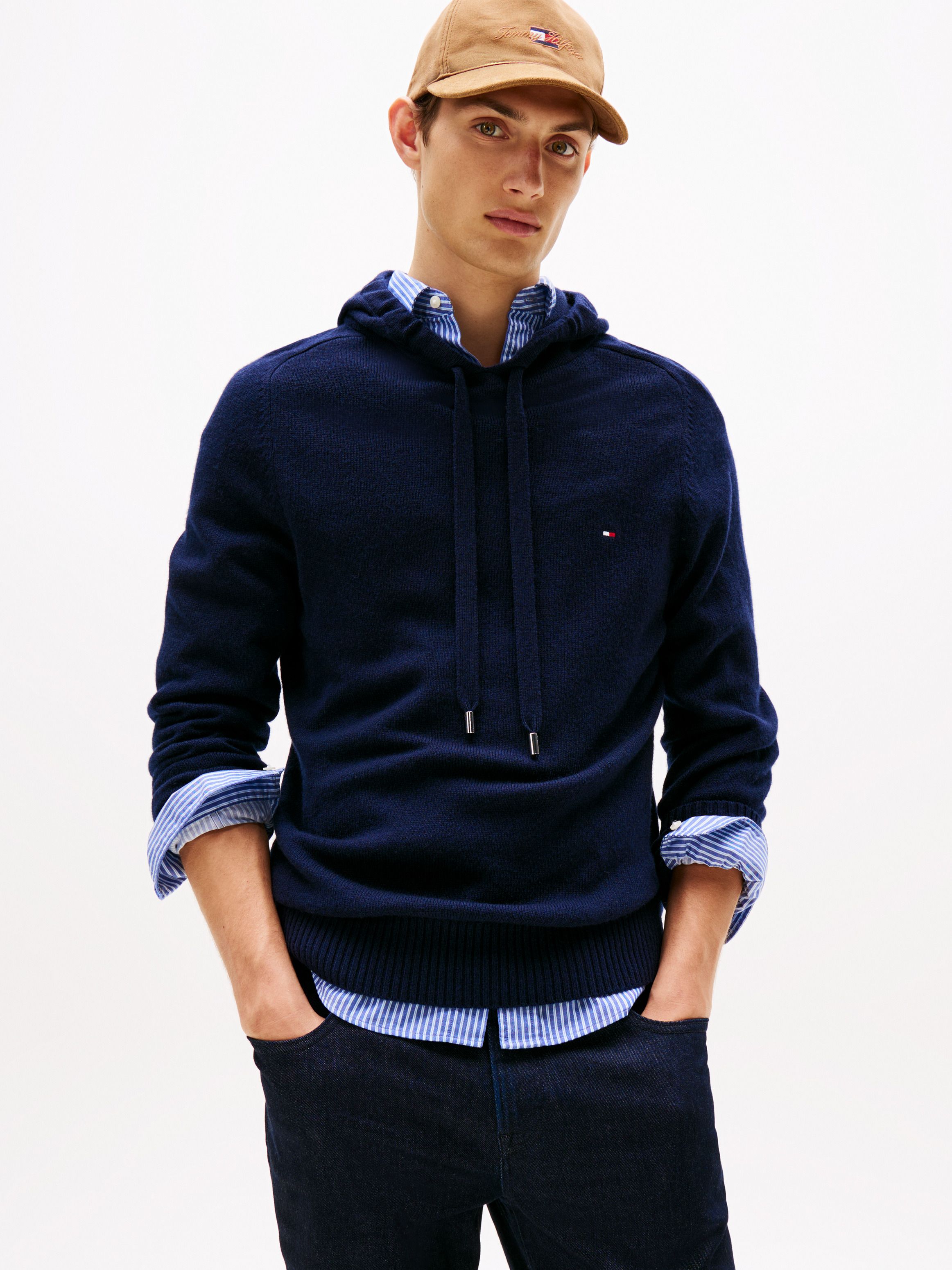 • Pure lambswool • Drawstring hooded neck • Rib-knit cuffs and hem • Signature detailing inside neckline • Tommy Hilfiger branding • Tommy Hilfiger flag embroidery on chest