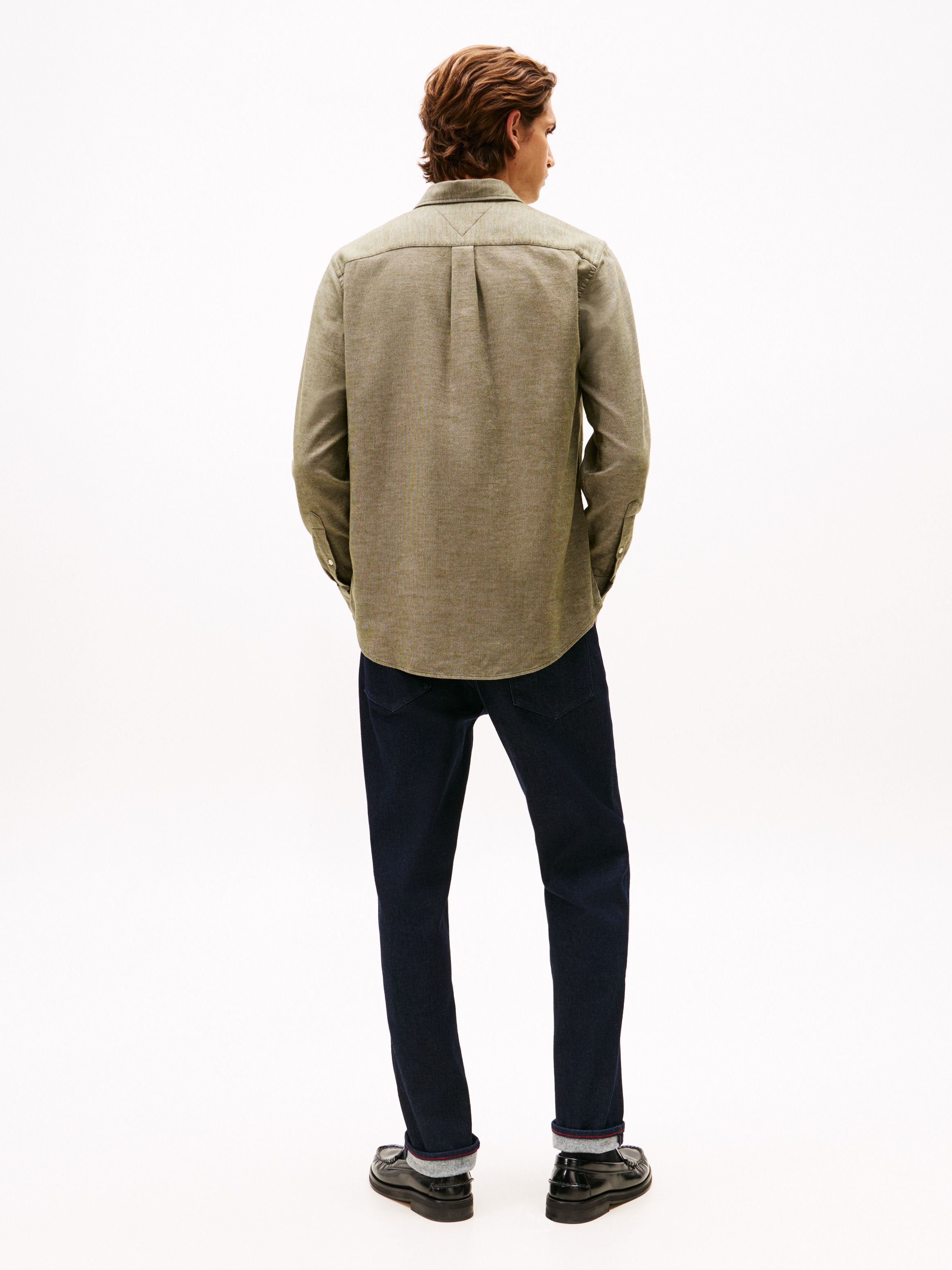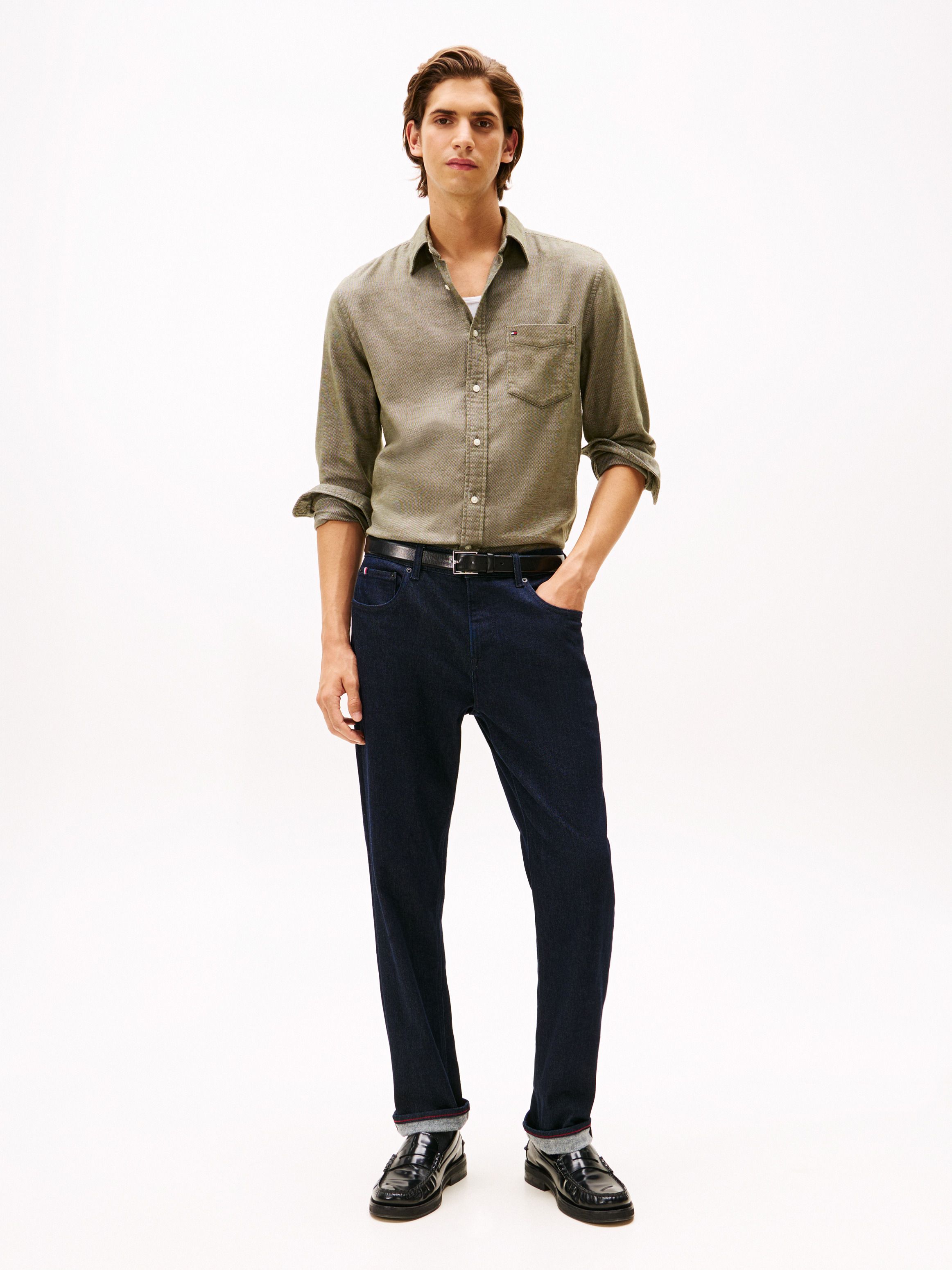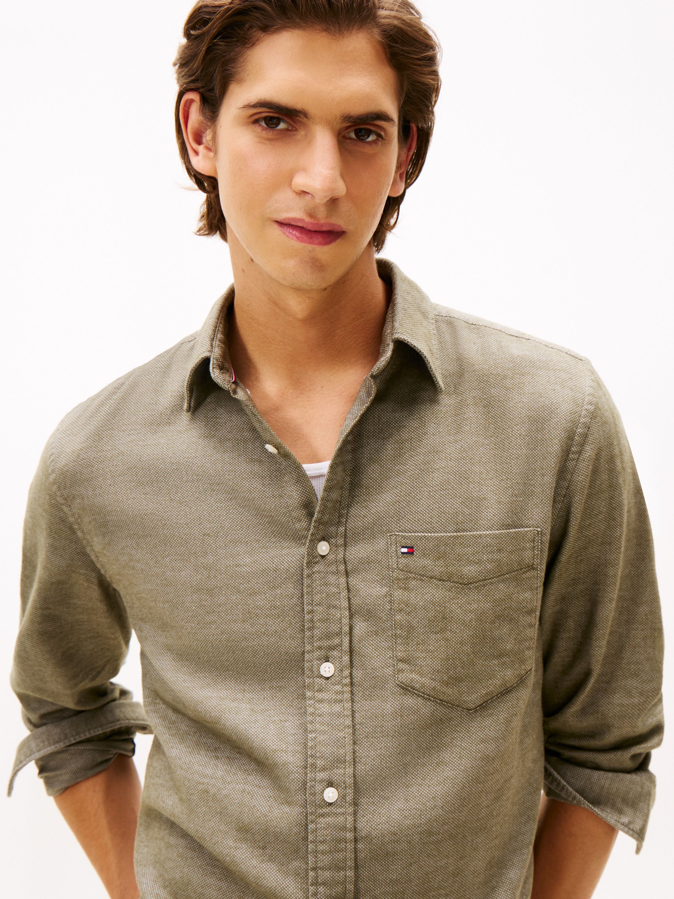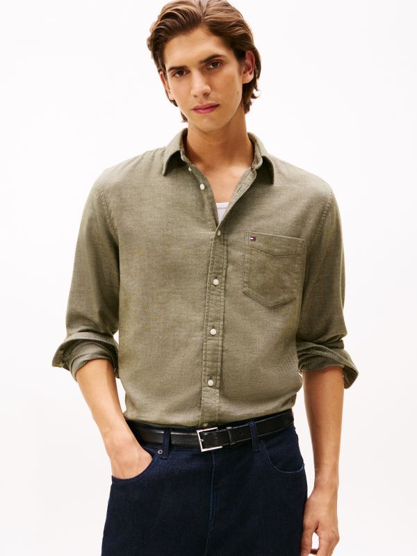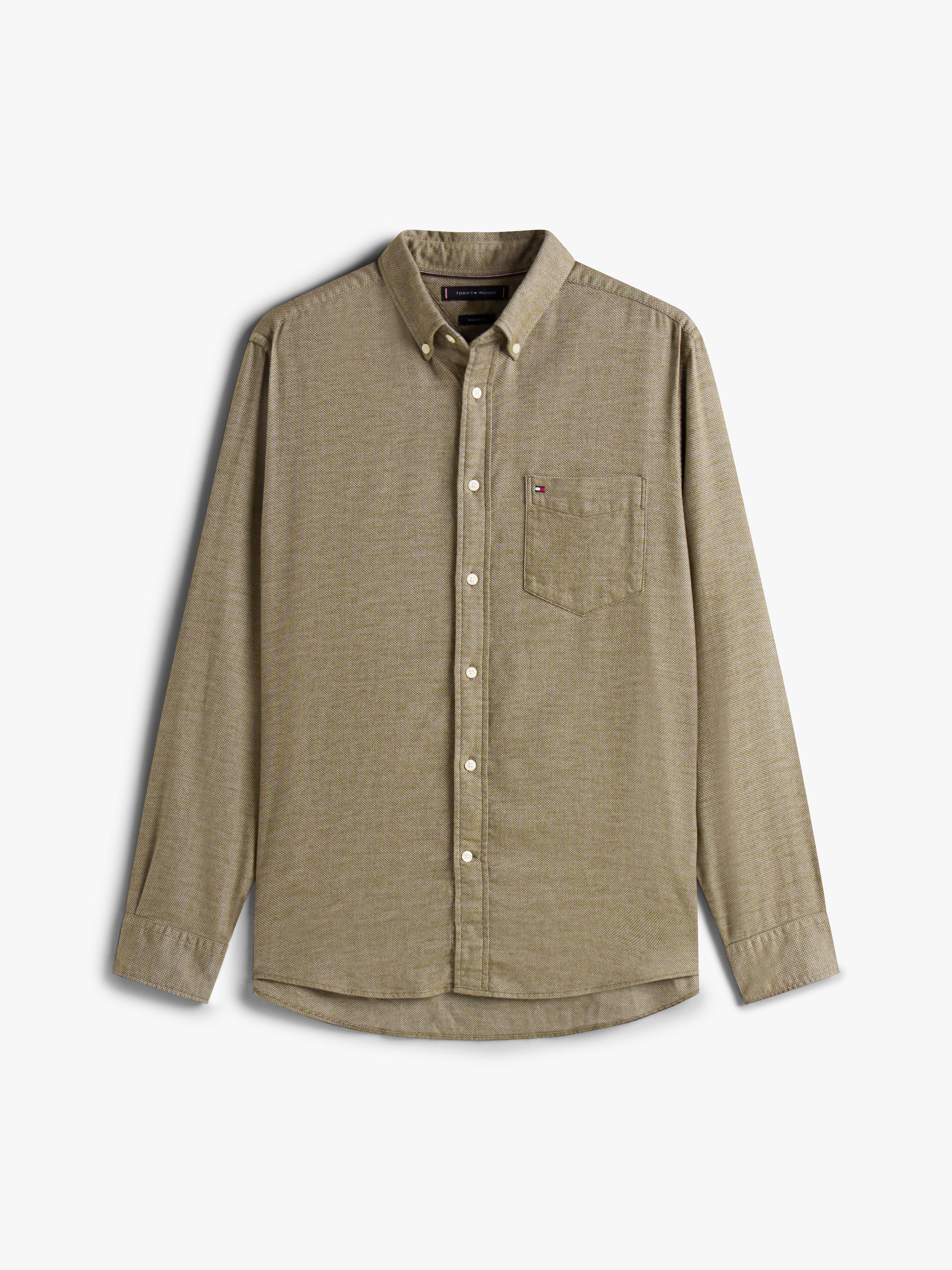 • Pure cotton dobby • Brushed flannel • Button-down collar • Rounded one-button cuffs • One chest patch pocket • Tommy Hilfiger branding • Tommy Hilfiger flag embroidery on pocket
