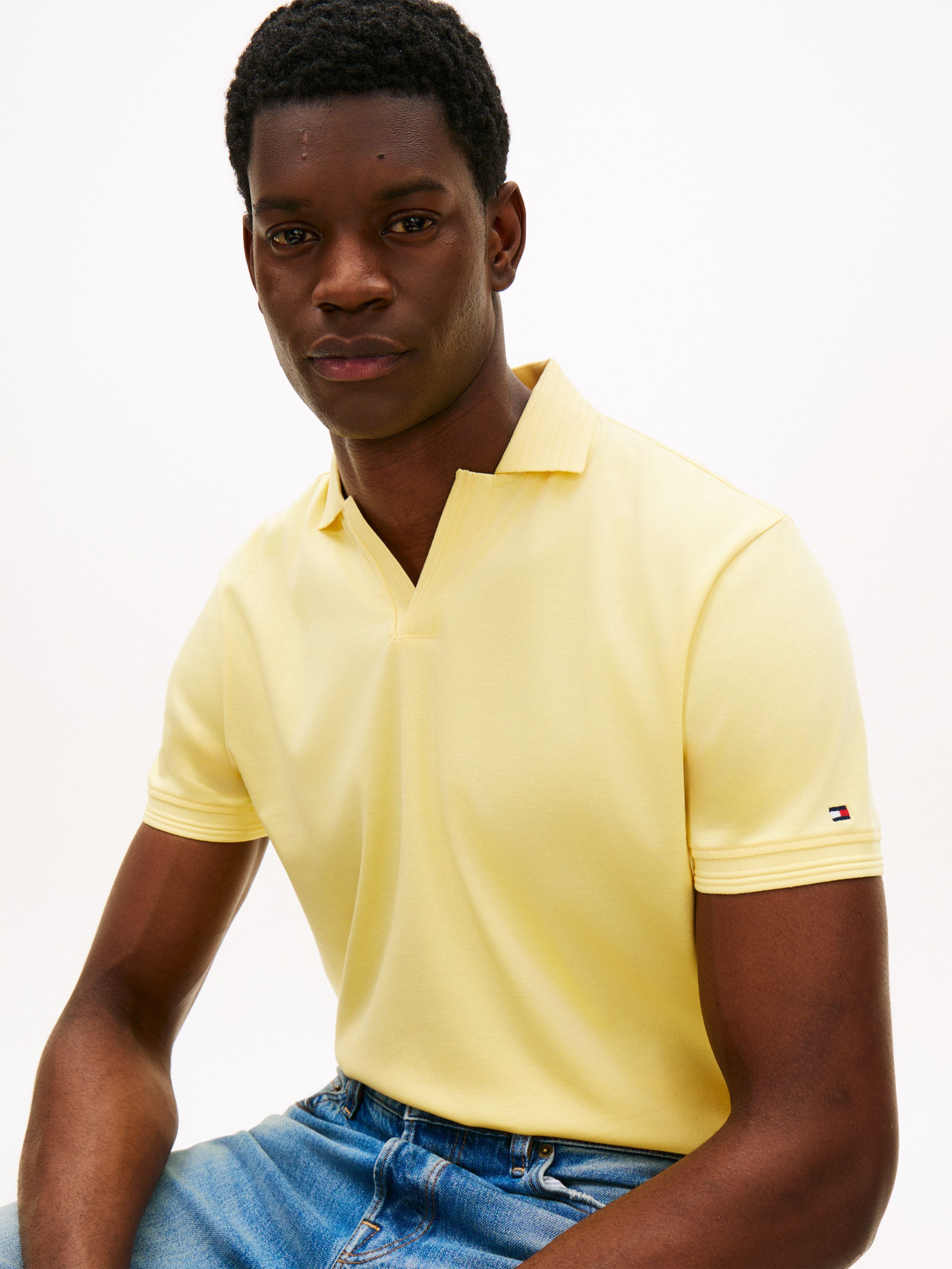 • Pure mercerised cotton • Interlock knit • Polo collar • Open placket • Textured collar, placket and cuffs • Signature tape inside neckline • Tommy Hilfiger branding • Tommy Hilfiger flag embroidery on sleeve
