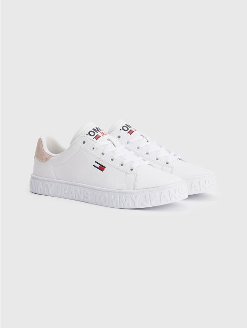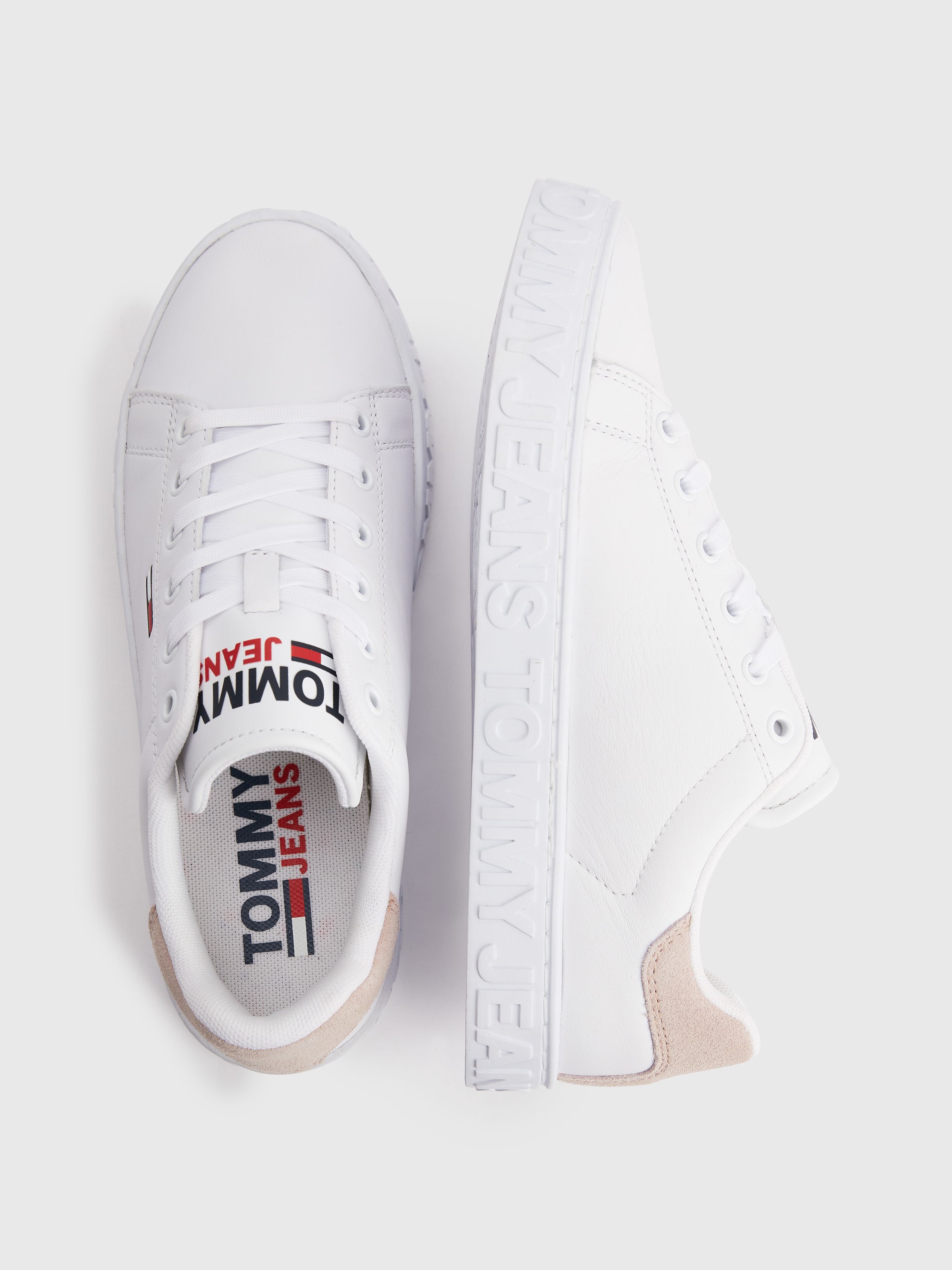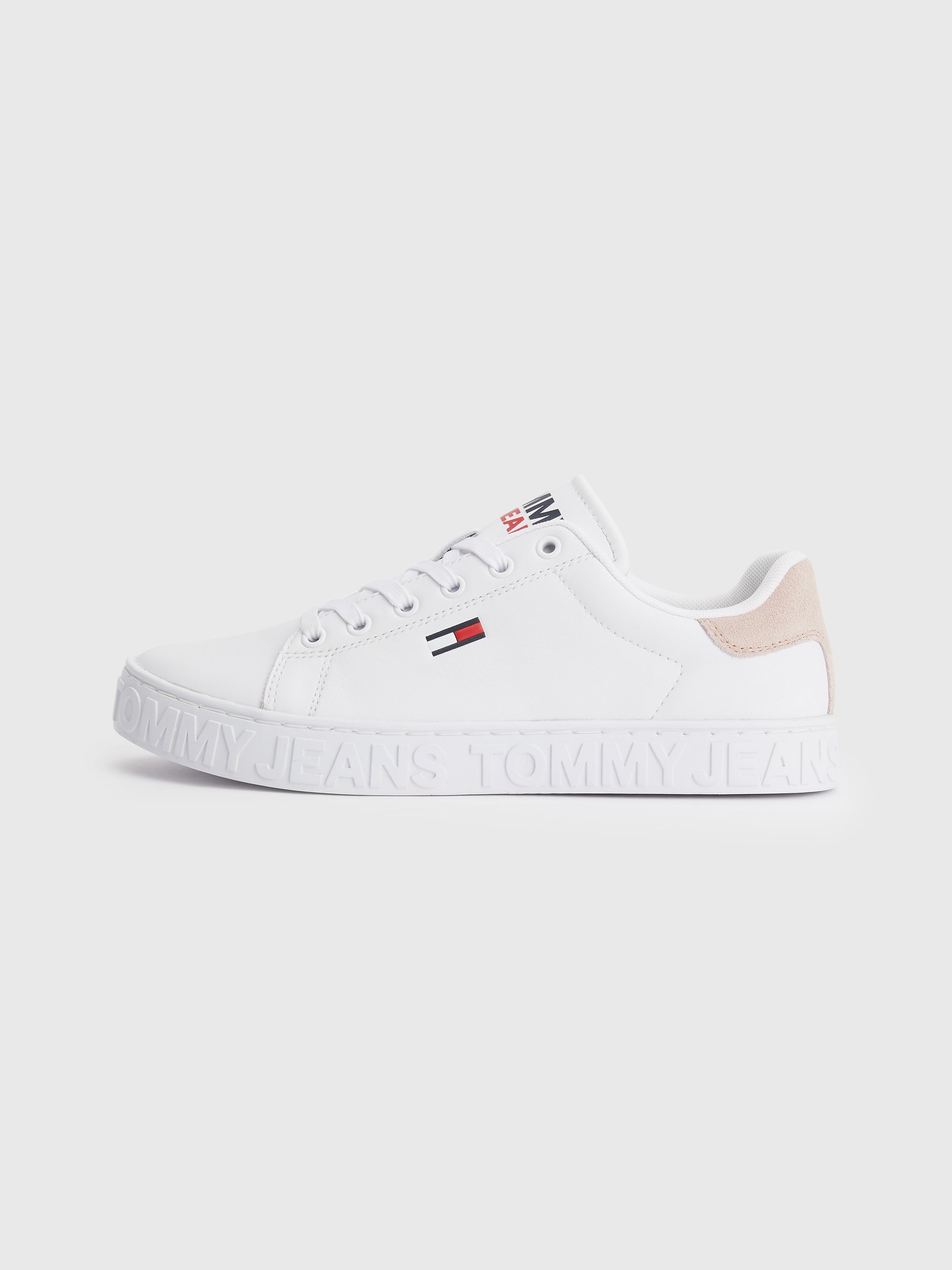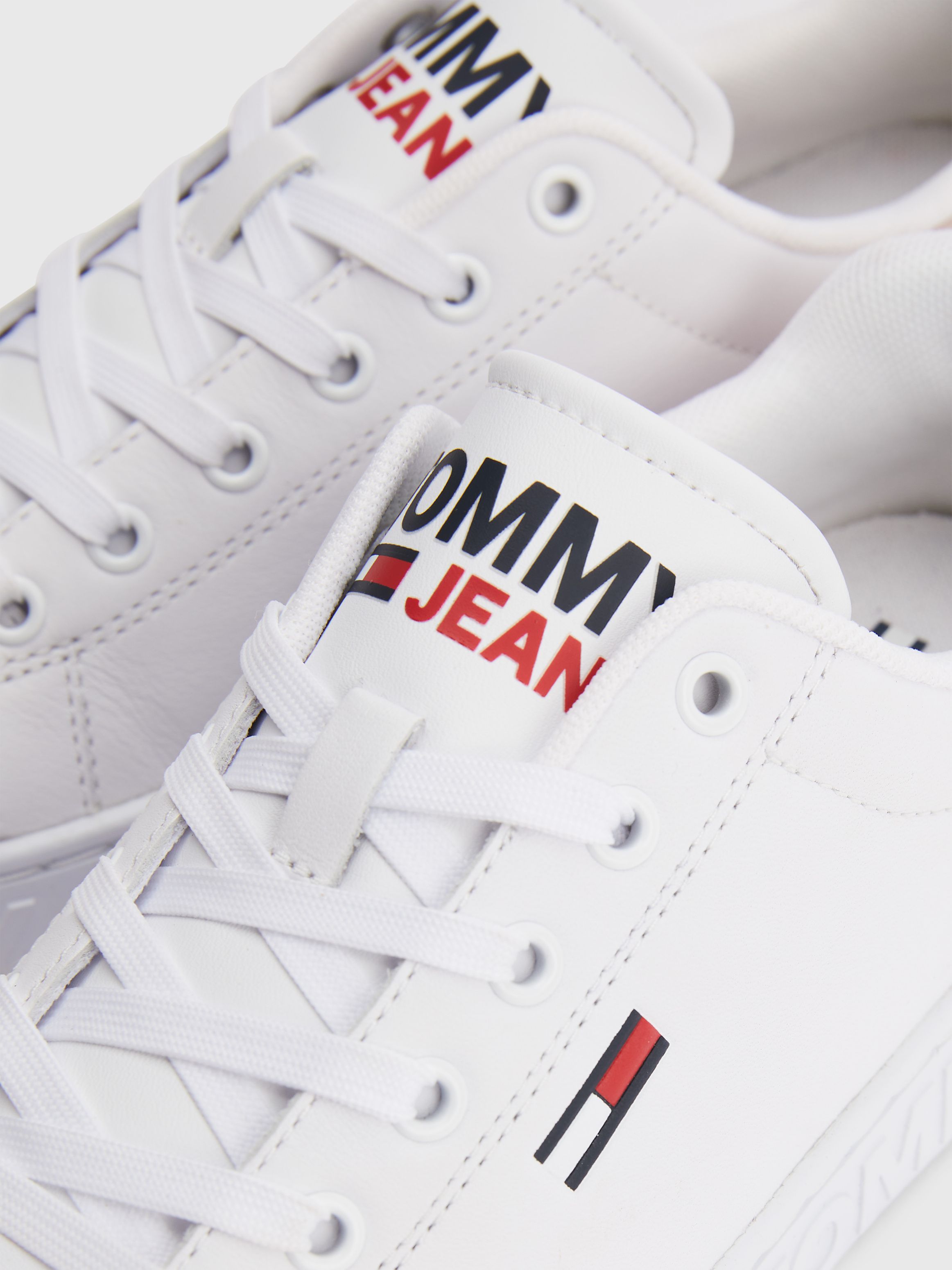 • Leather upper • Recycled polyester lining • Recycled polyurethane and polyurethane insock • Rubber and natural rubber outsole • Cupsole • Textured detail on heel • Tommy Jeans repeat logo embossed on midsole • Tommy Jeans branding • Tommy Jeans flag on side