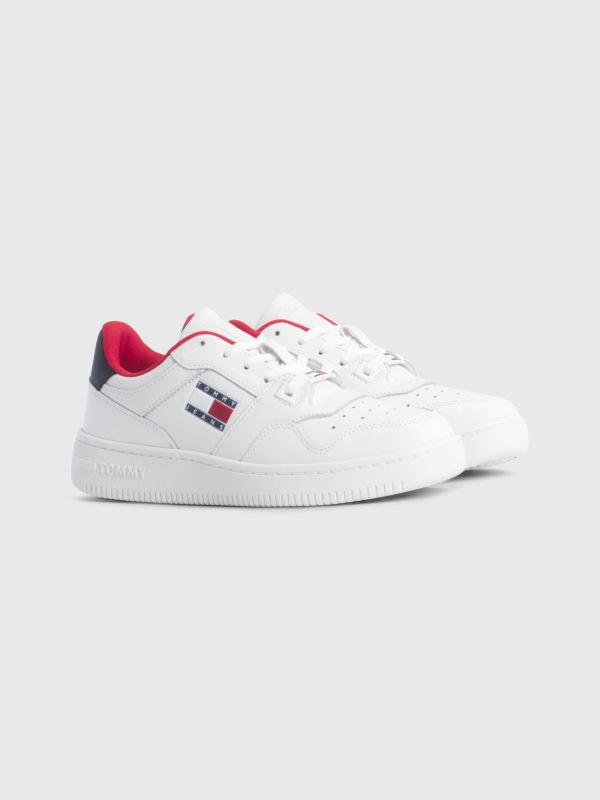 Shine on the court or the streets in these glossy basketball-inspired trainers crafted from a coated leather mix and featuring colour-popped heels.