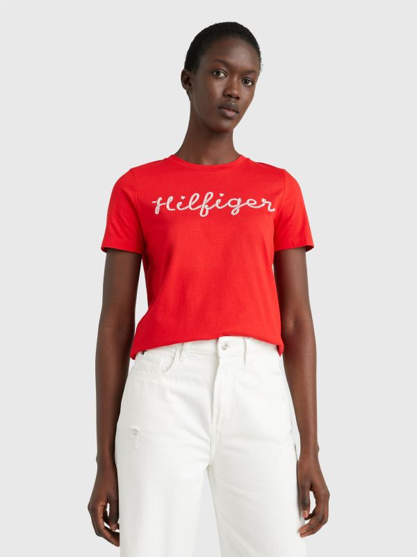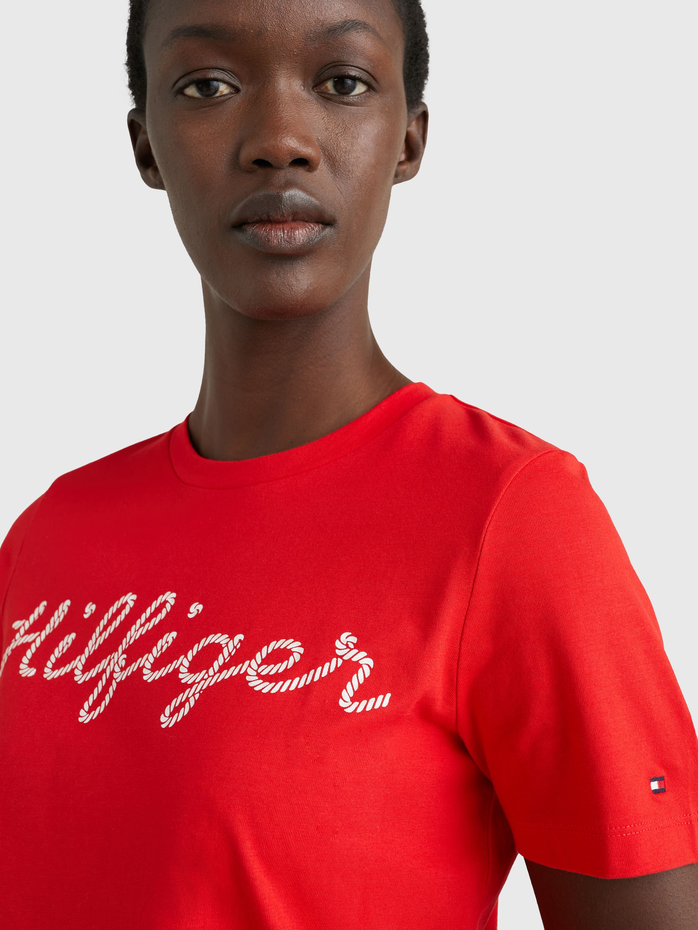 This crew-neck, cotton jersey tee features a Tommy Hilfiger rope logo in puff print on the front for a textural touch.