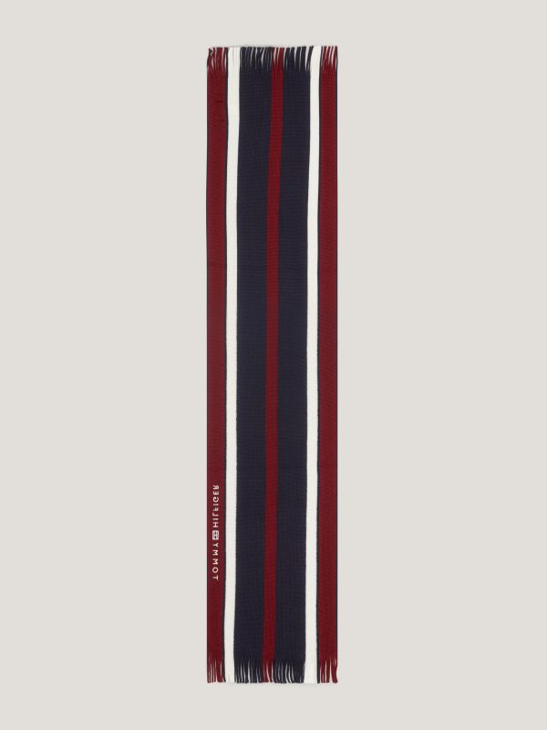 Texture and pattern combine in this stylish wool blend scarf, featuring a striped design and classic fringed ends.