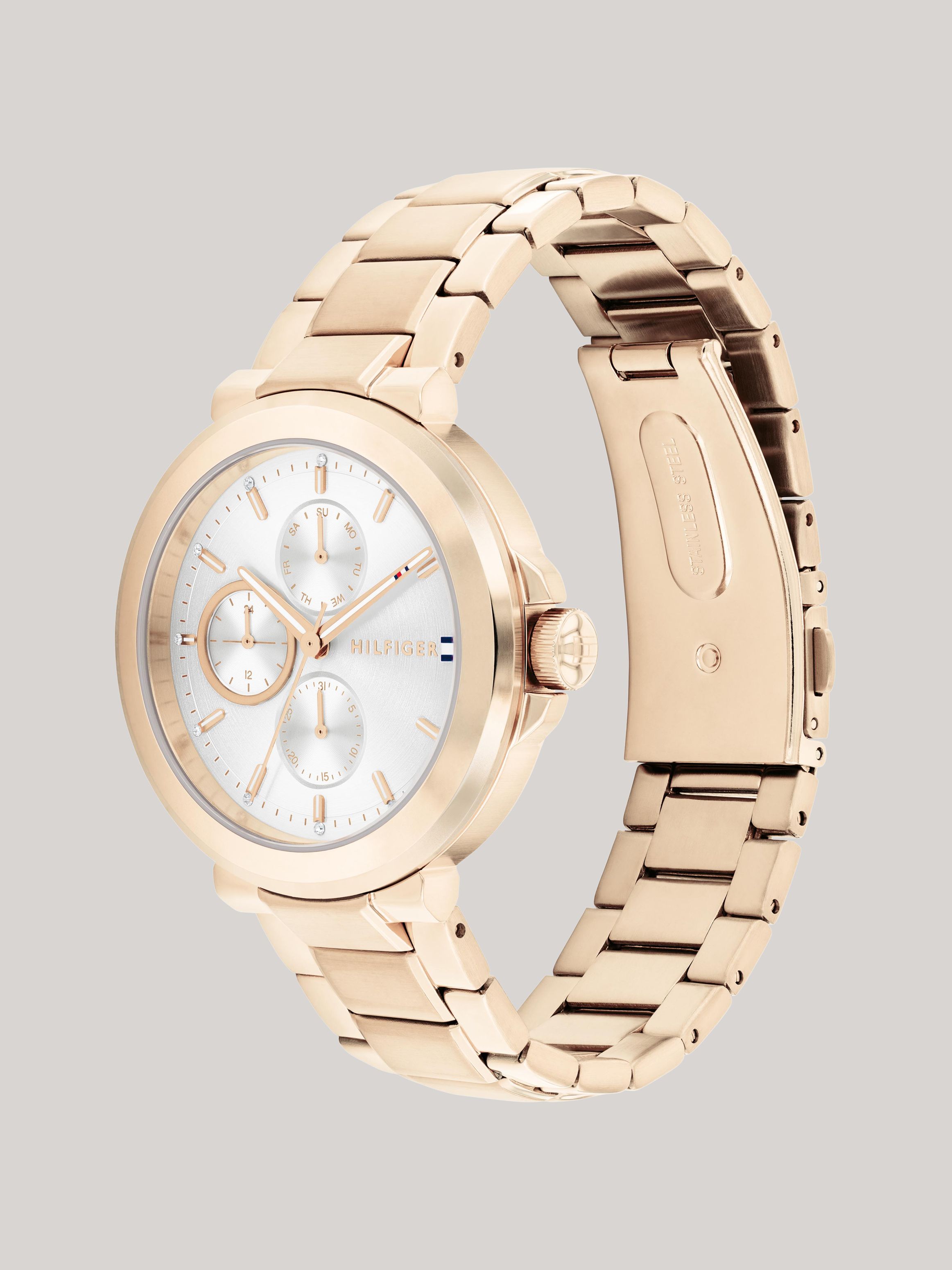Keep things elegant with this dazzling rose gold-plated watch, crafted from hardy stainless steel and complete with a sleek chain-link strap.