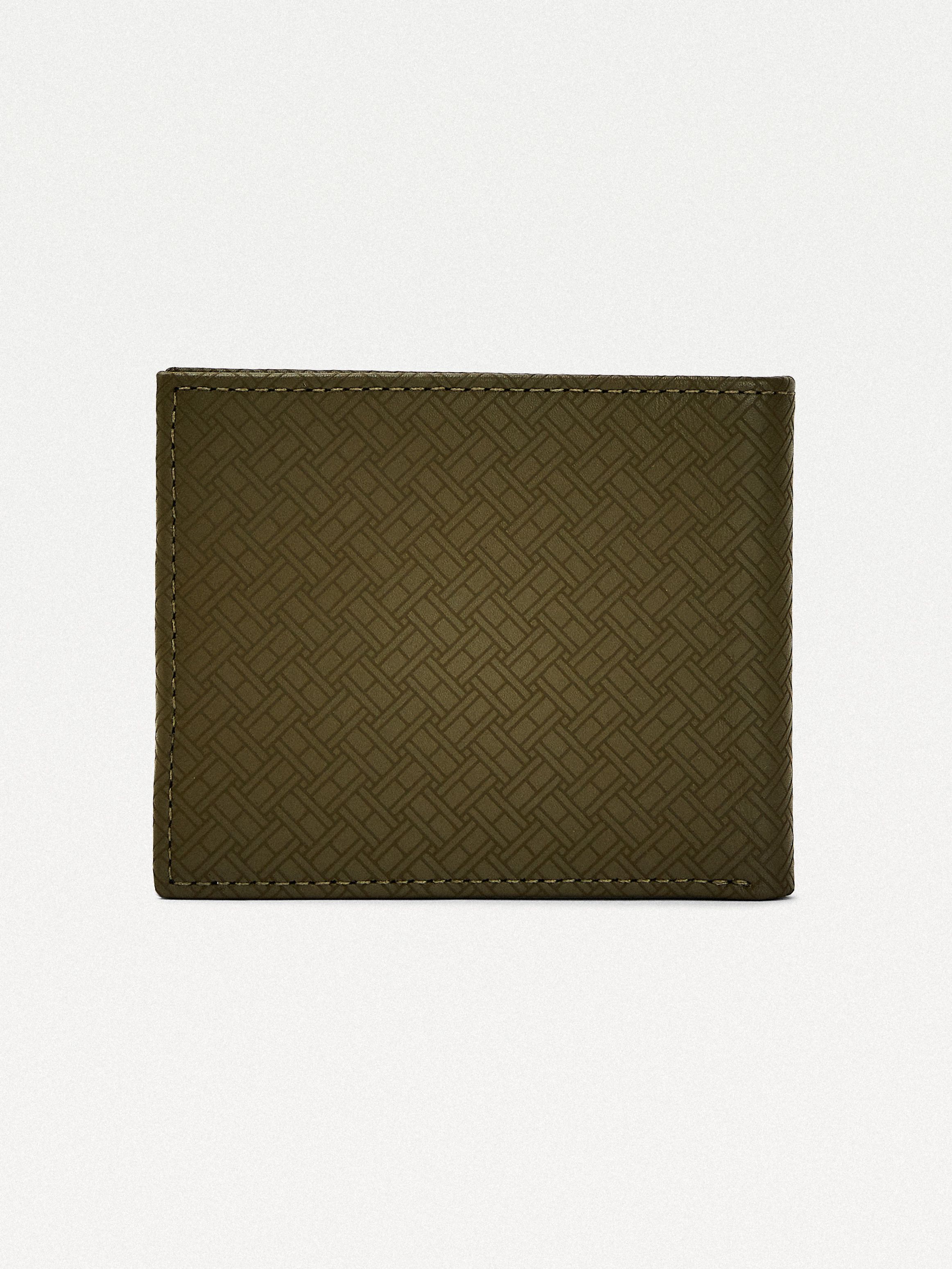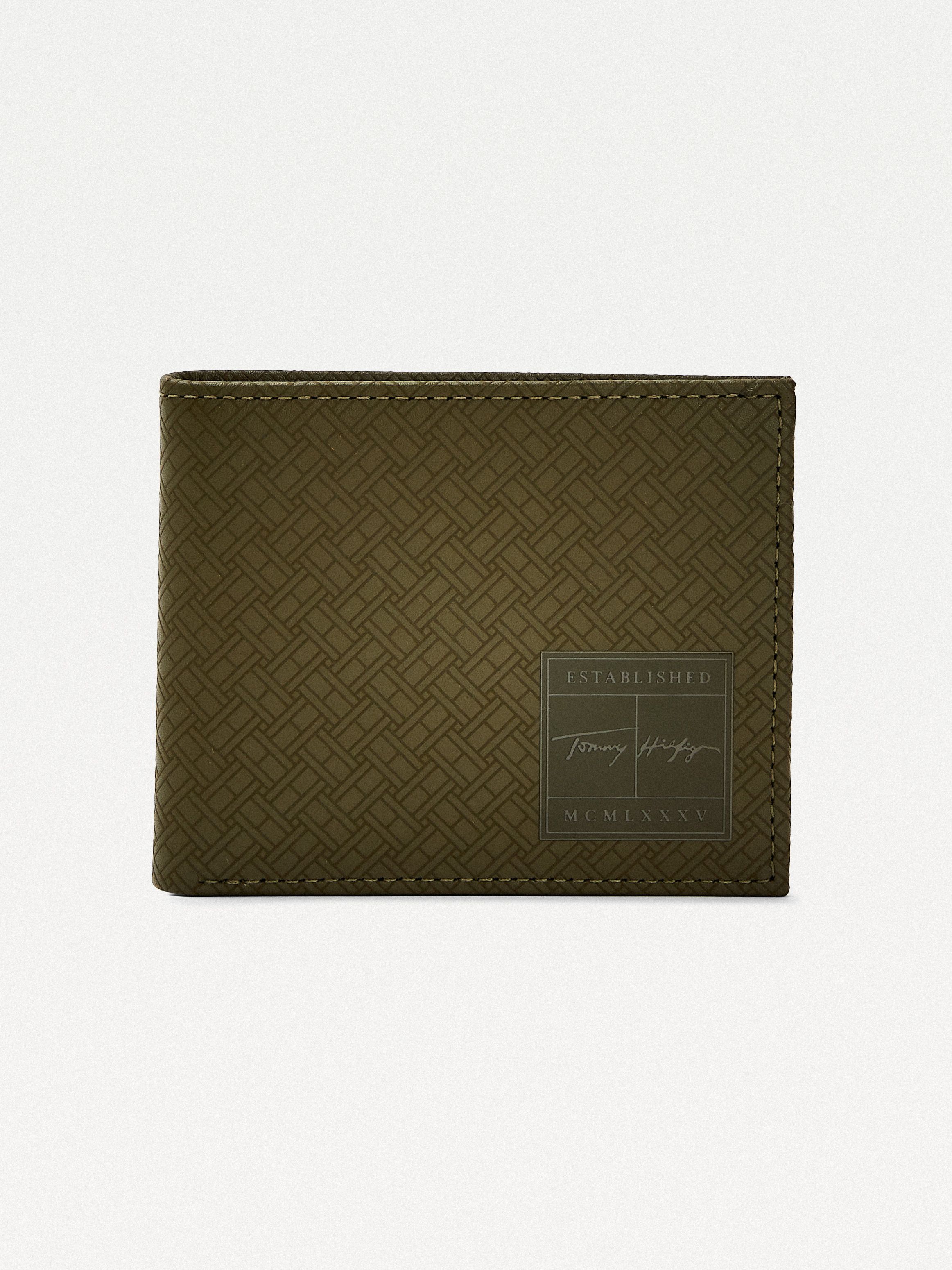 • Leather • All-over tonal flag print • Recycled polyester contrast lining • One interior billfold pocket • Multiple interior card slots • TH signature logo on front • Tommy Hilfiger logo debossed on interior • Tommy Hilfiger branding