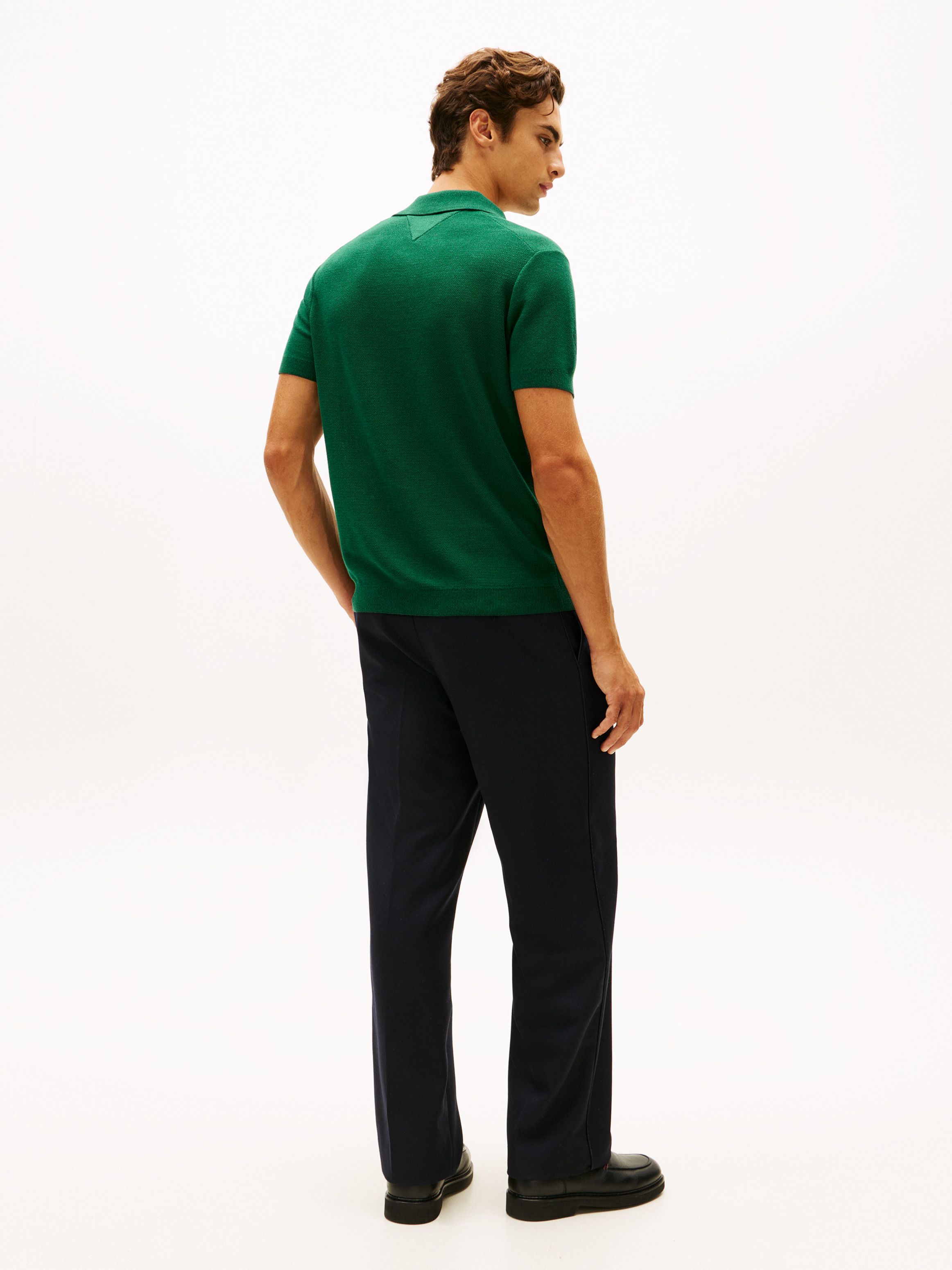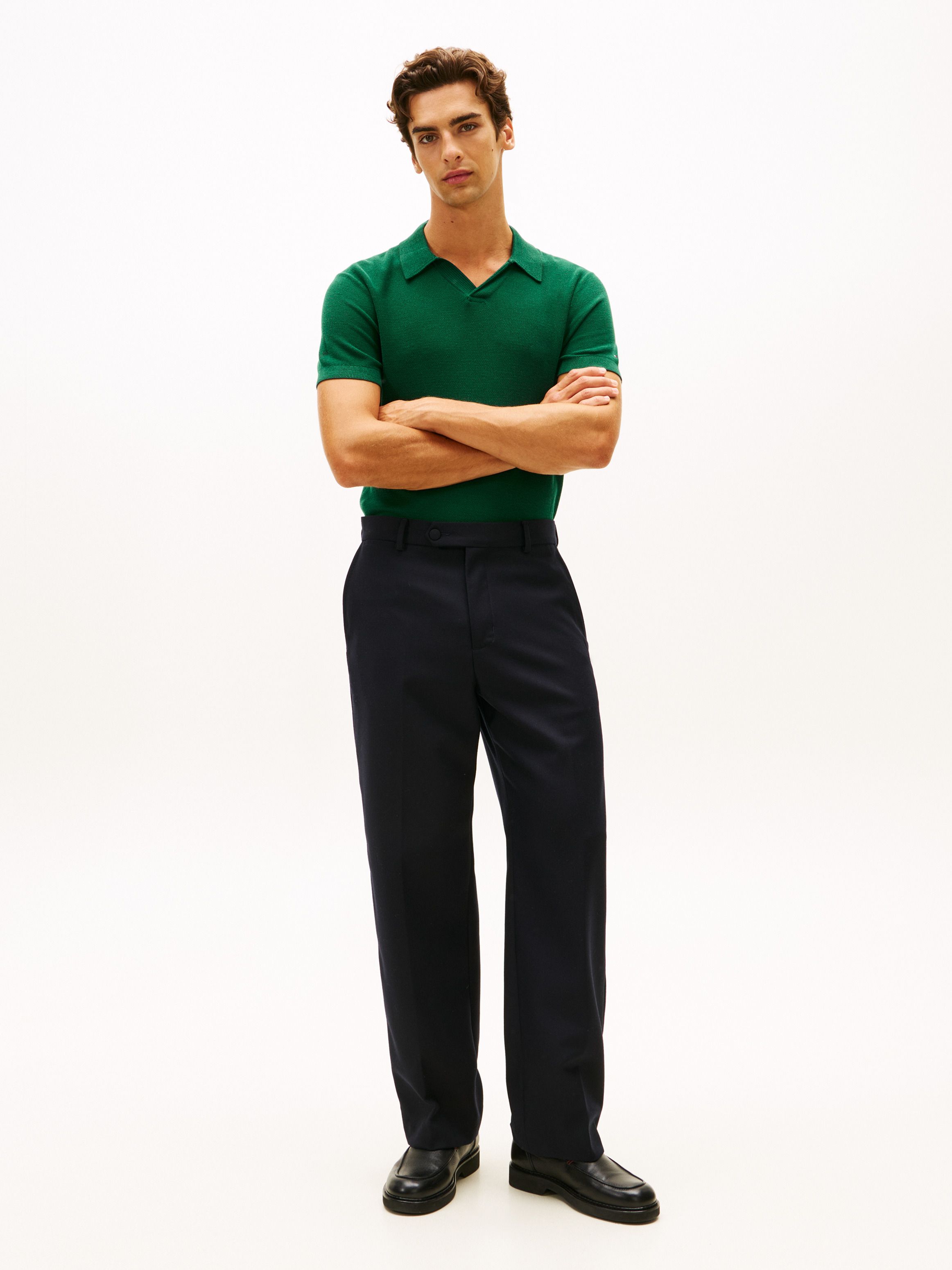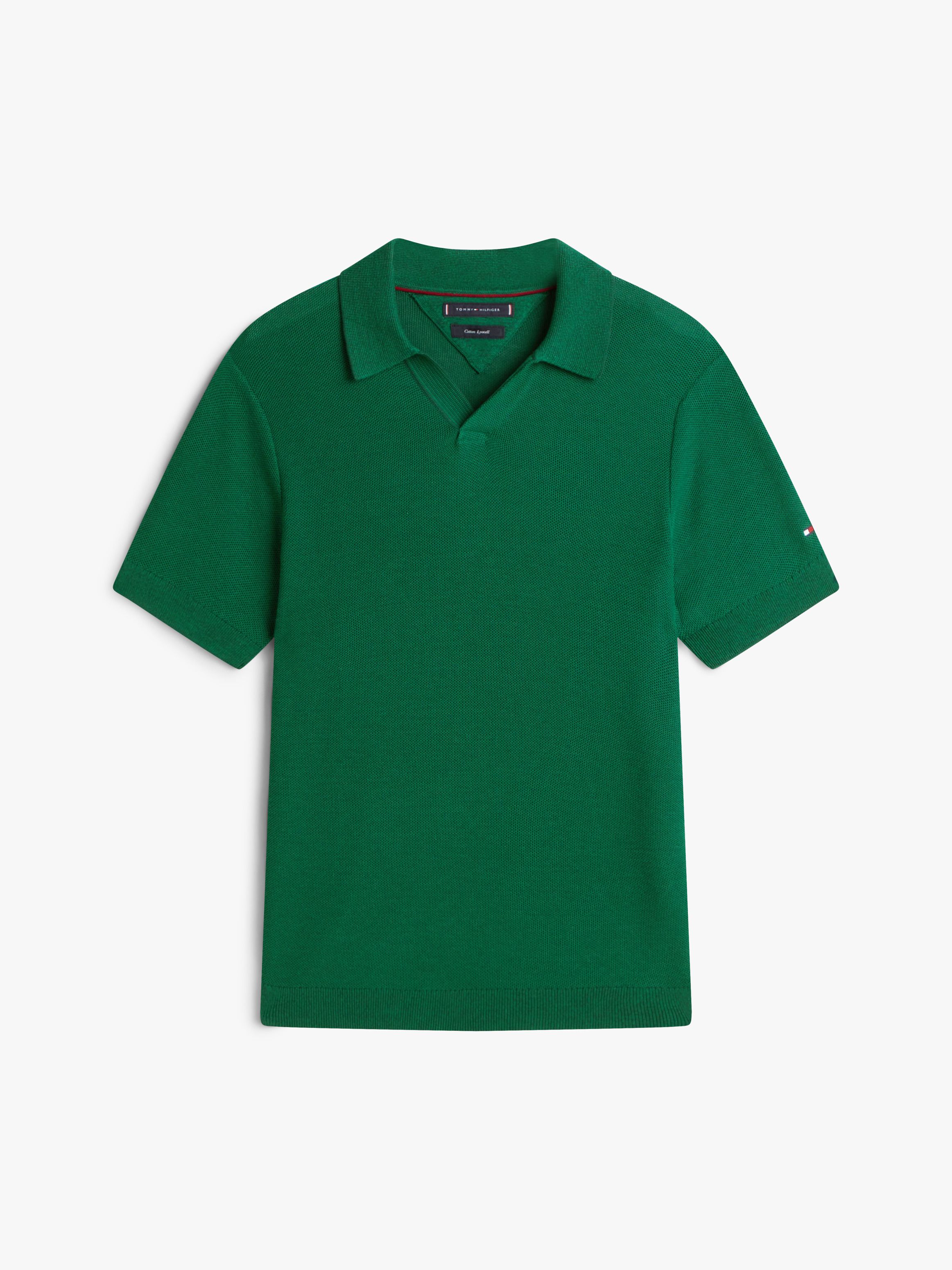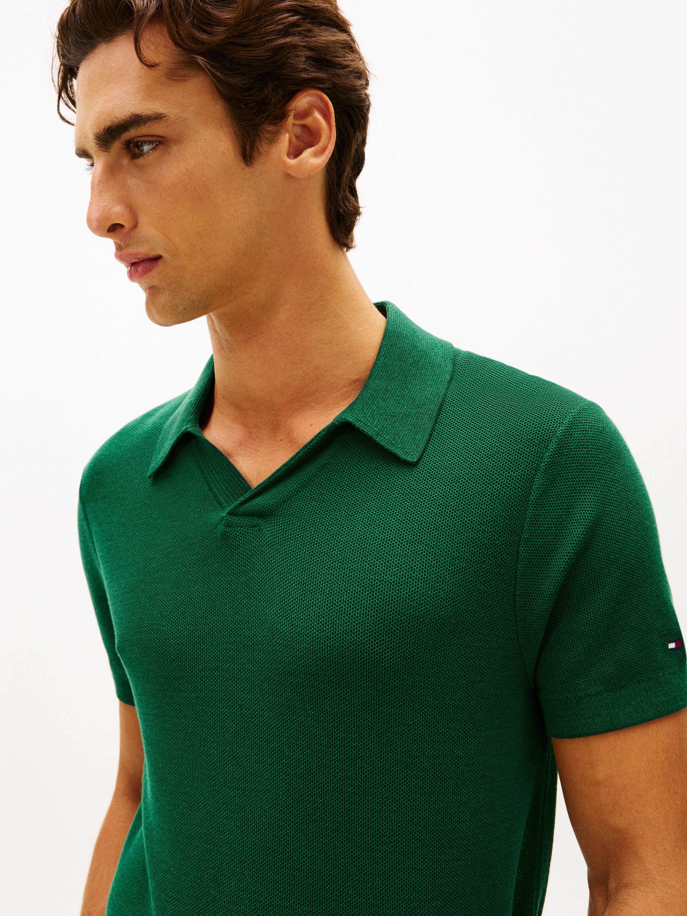 • Cotton blend • Honeycomb texture • Polo collar • Open placket • Tommy Hilfiger branding • Tommy Hilfiger flag embroidery on sleeve