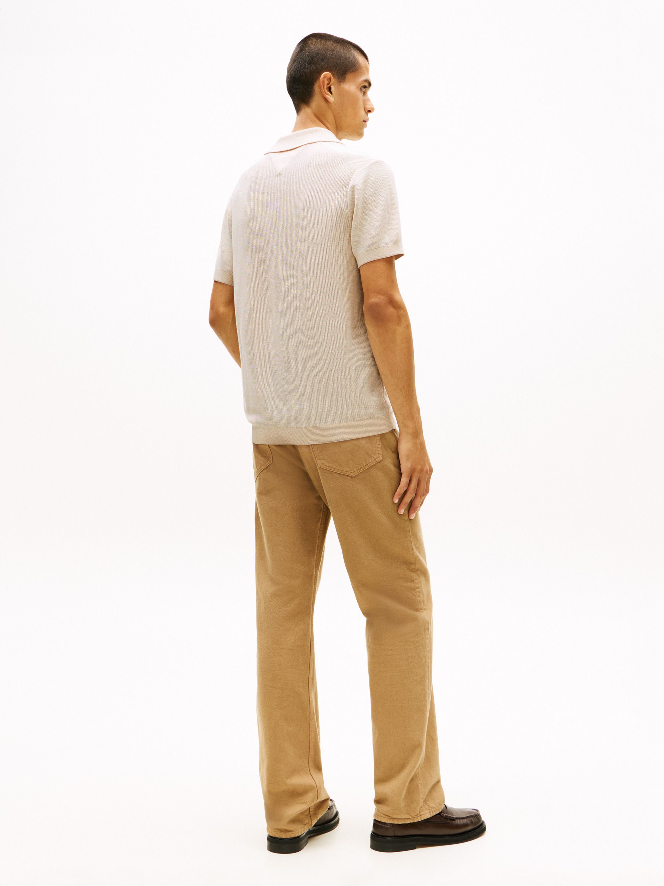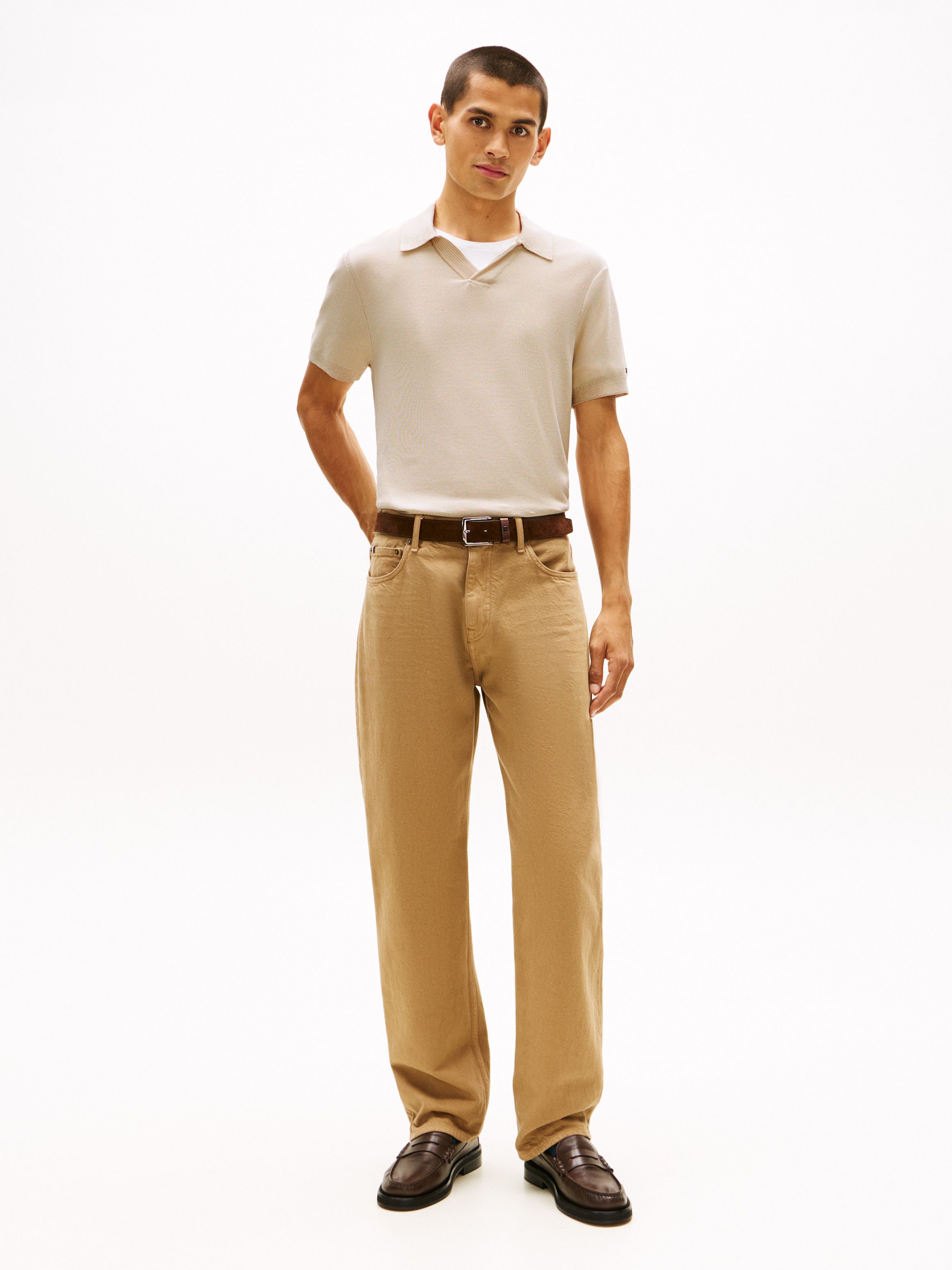 • Cotton blend • Honeycomb texture • Polo collar • Open placket • Tommy Hilfiger branding • Tommy Hilfiger flag embroidery on sleeve