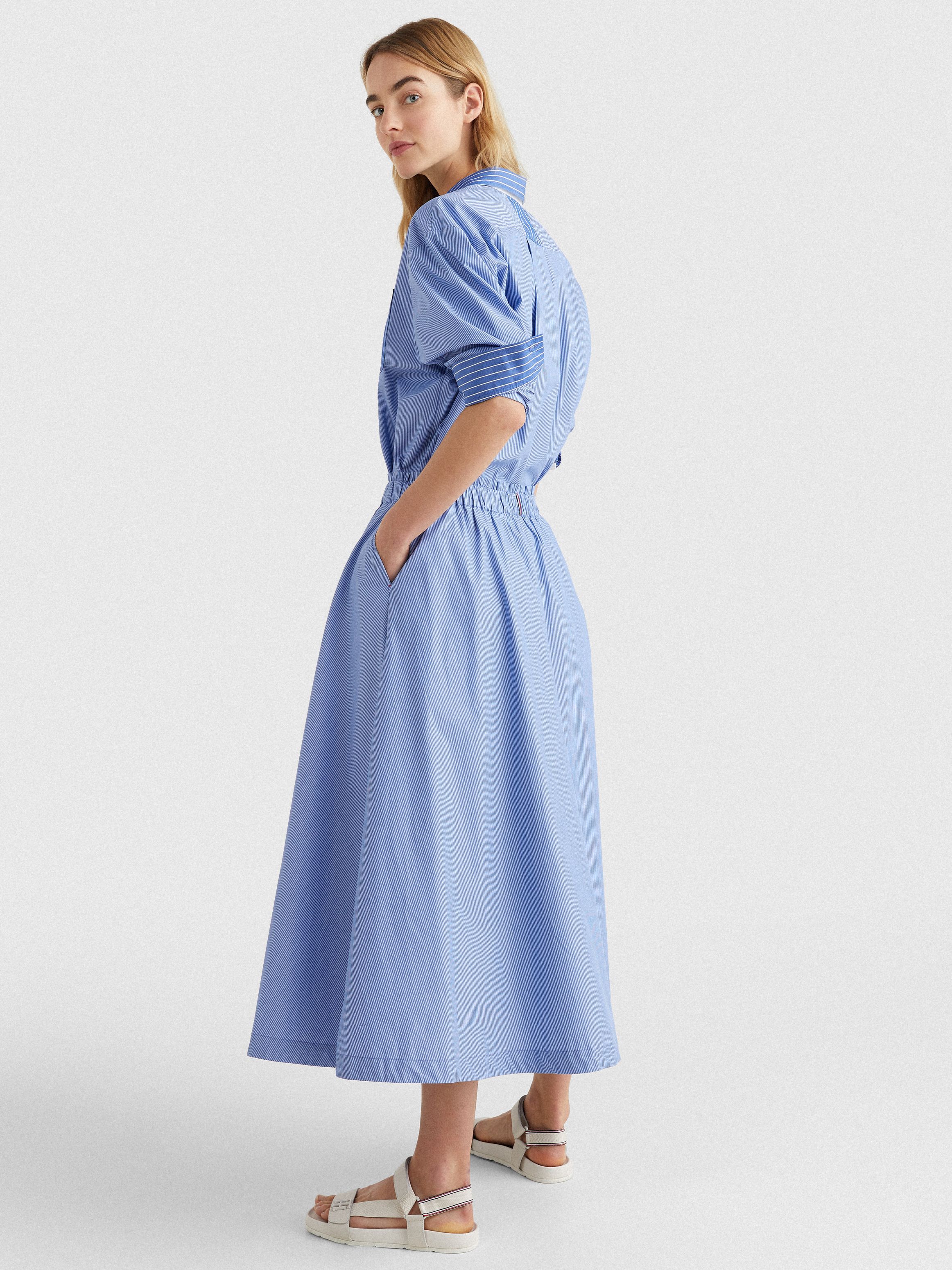 This relaxed fit midi skirt with a button front is cut from organic cotton with a subtle micro stripe.