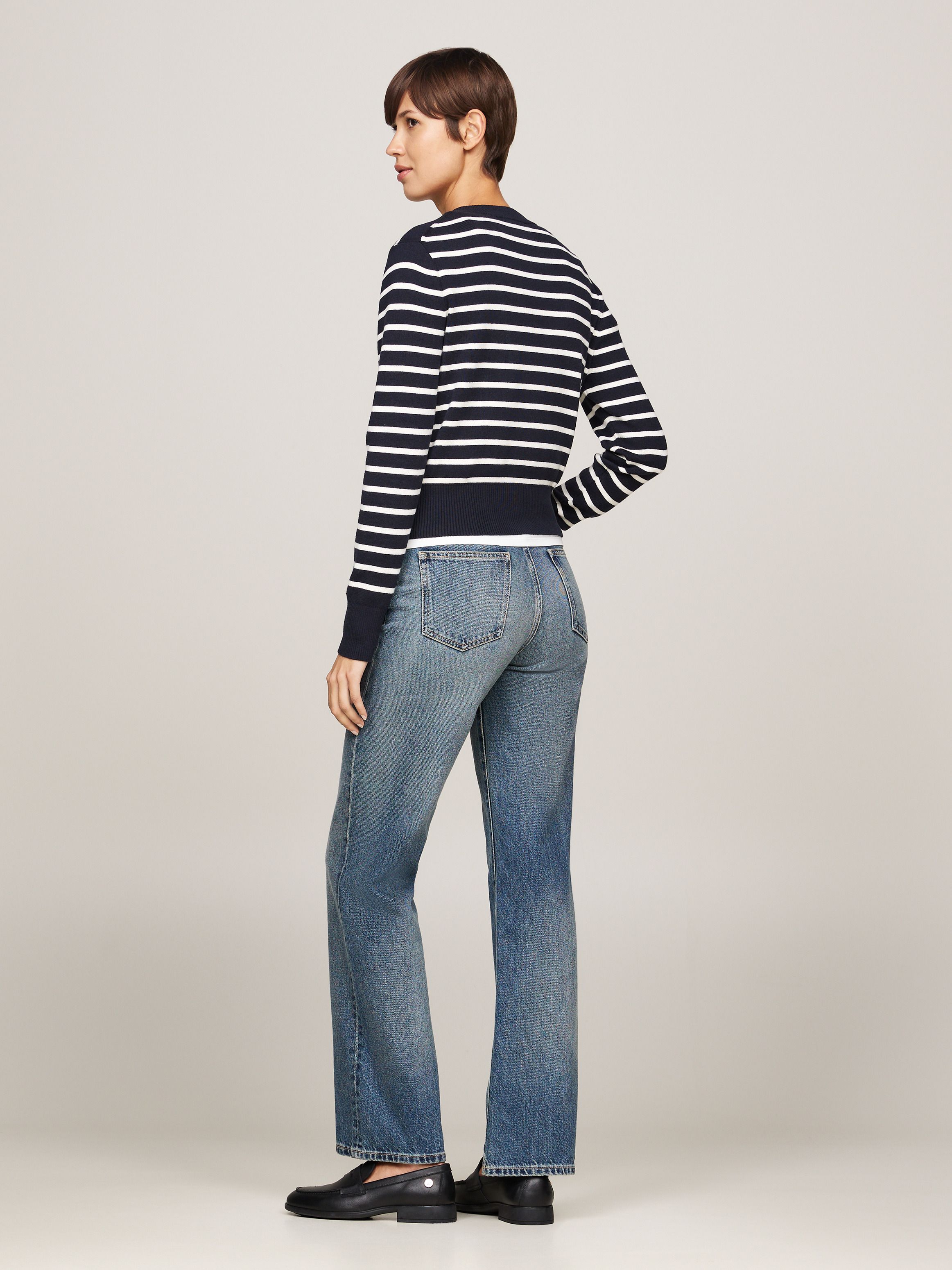 • Pure cotton • All-over horizontal stripe • Crew neck • Button closure • Rib-knit collar, cuffs and hem • TH crest embossed on buttons • Hilfiger monotype logo embroidery on front • Tommy Hilfiger branding • Tommy Hilfiger metal flag on cuff