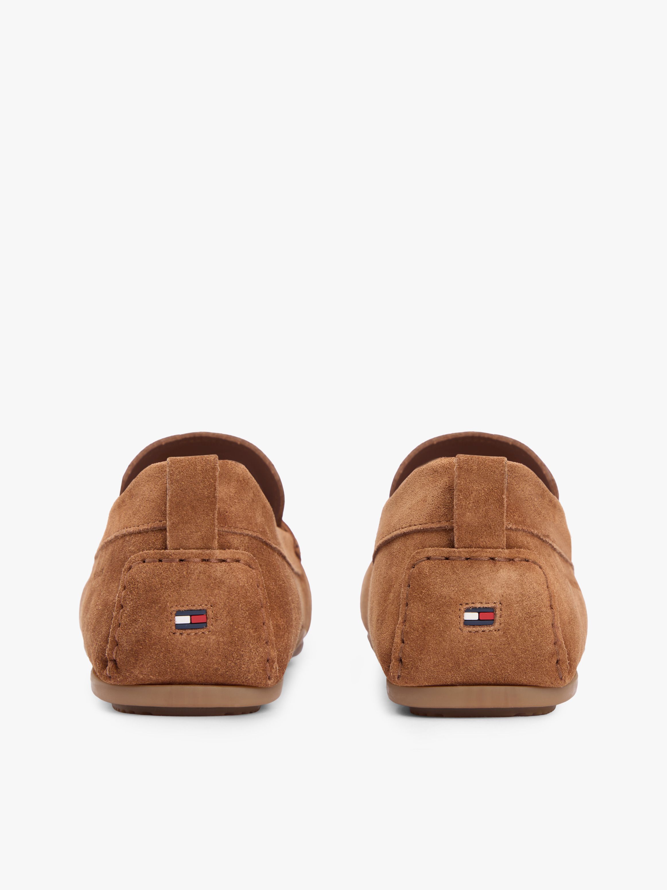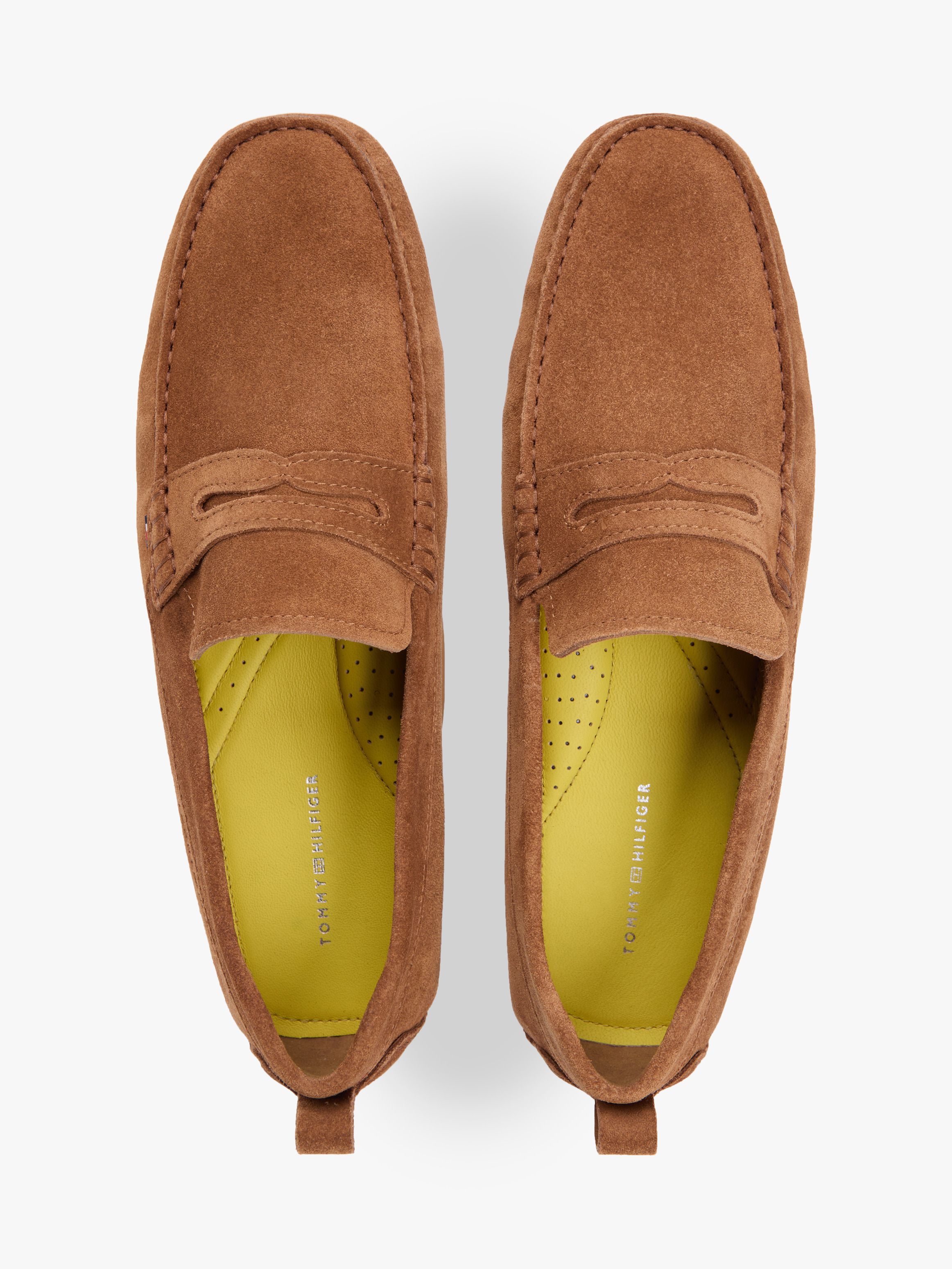• Suede upper • Napa leather lining • Polyurethane insock • Thermoplastic rubber cleated outsole • Pull-on loop • Penny strap • Signature tape on side • Tommy Hilfiger logo debossed on side • Tommy Hilfiger branding • Tommy Hilfiger rubberised flag on heel