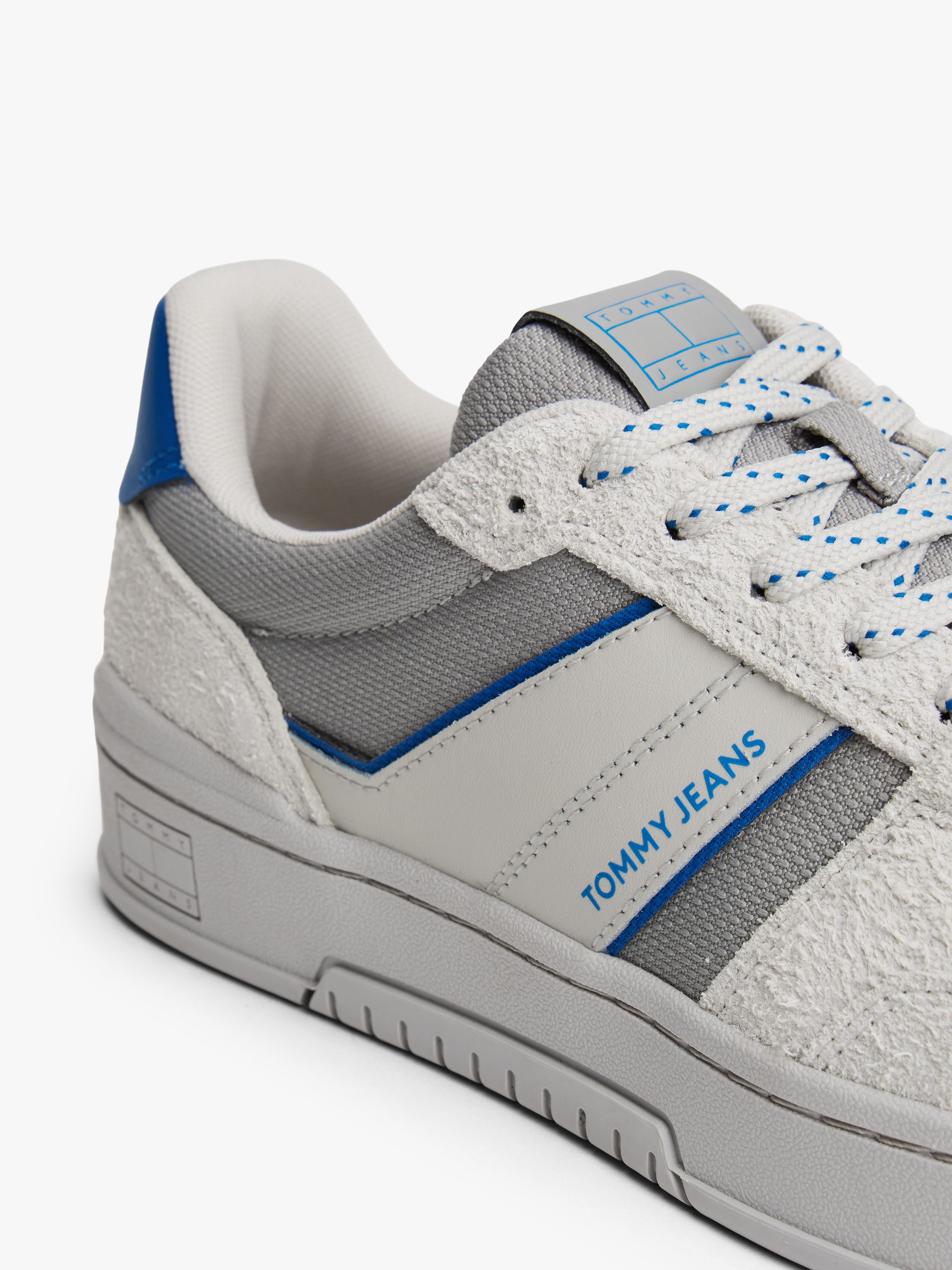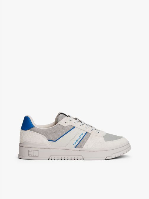 • Suede upper • Polyurethane, other textiles and thermoplastic rubber removable insock • Rubber outsole • Cupsole • Contrast mixed texture panels • Flecked laces • Ventilation detailing on upper • Tommy Jeans logo on side • Tommy badge debossed on midsole • Tommy Jeans branding
