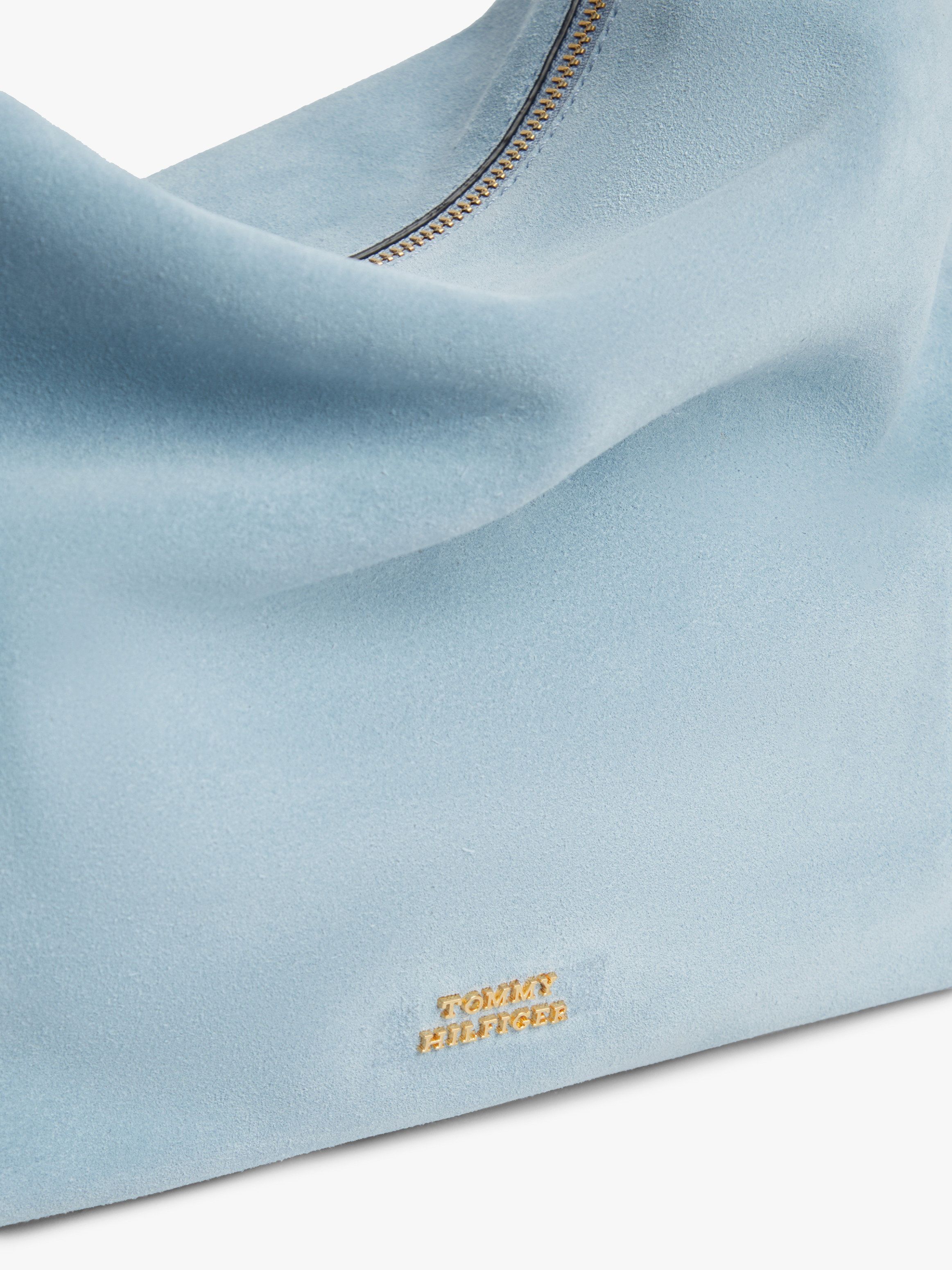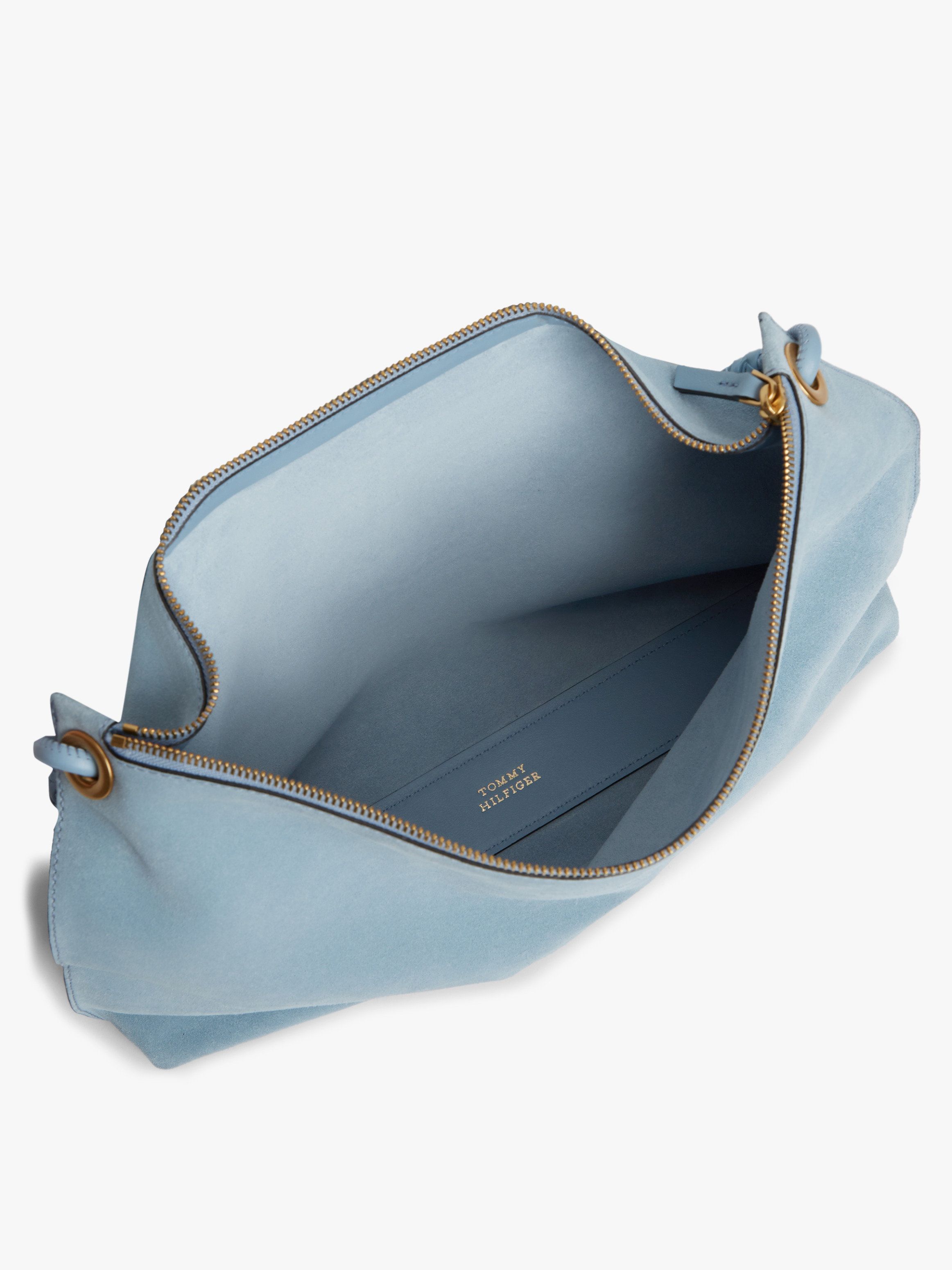 • Suede • Tassel on handle • Eyelet detail • Zip closure • Shoulder strap • One main compartment • Tommy Hilfiger metal logo on front • Tommy Hilfiger branding
