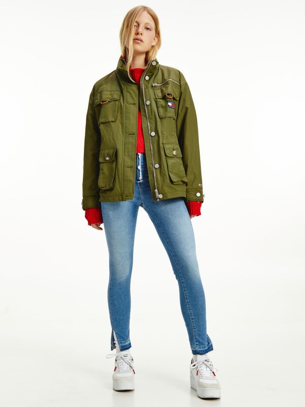 A distressed button fly combined with split and let-down hems give these faded, super-skinny jeans in recycled yarns a worn-in aesthetic.