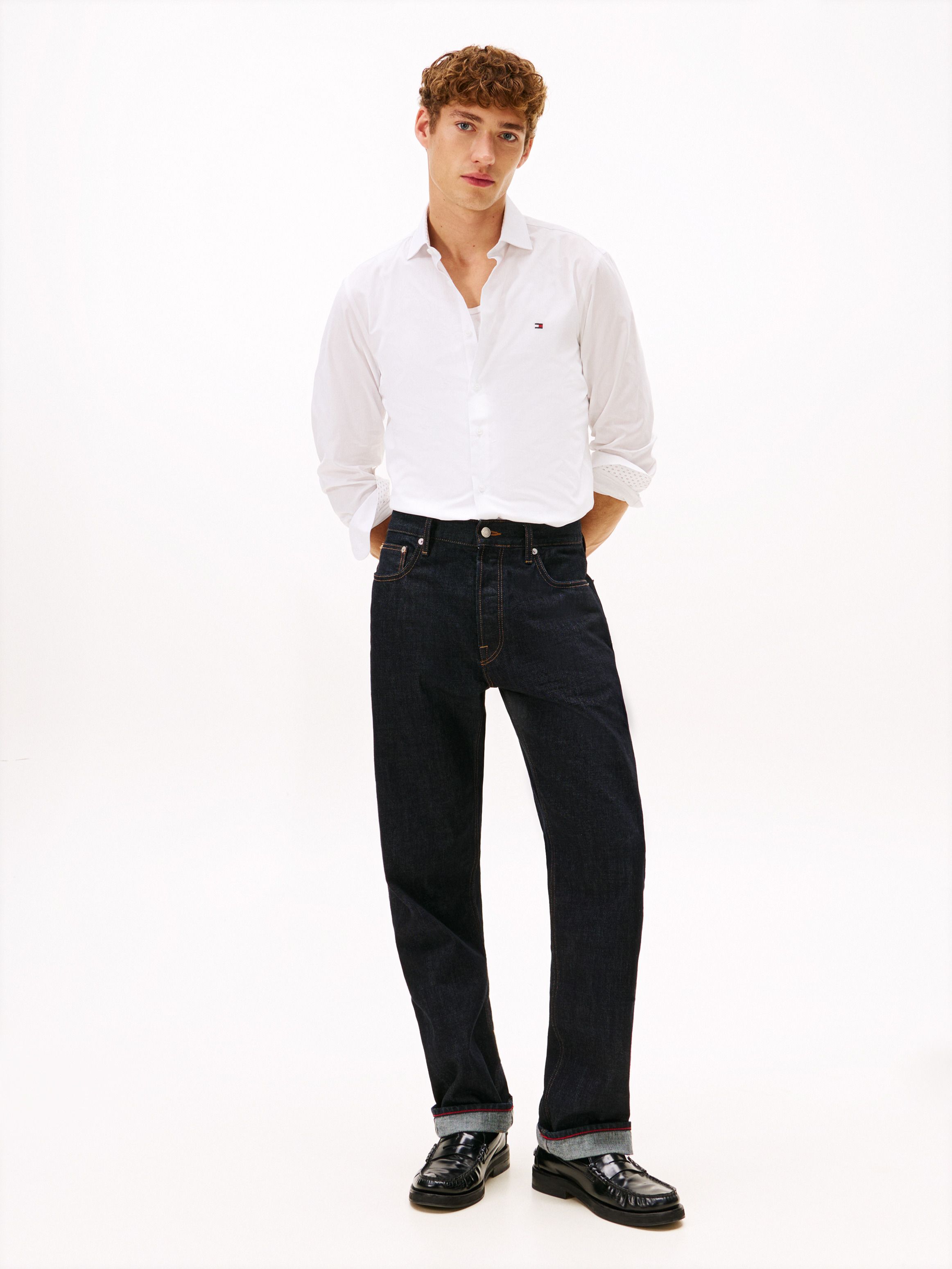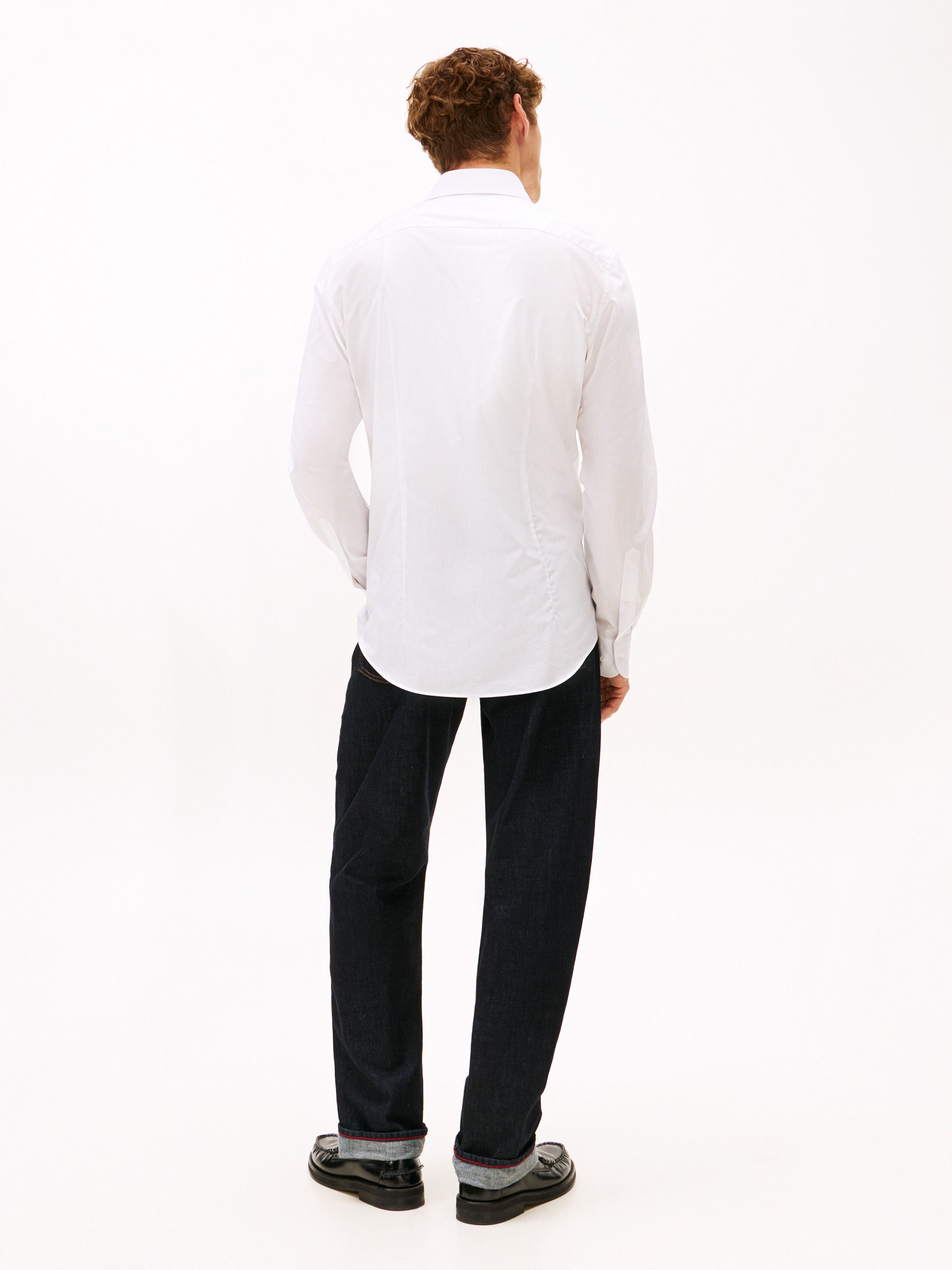 • Pure cotton dobby • Flex technology • Button-down collar • Rounded one-button cuffs • Box pleat on back • Signature tape inside neckline • Tommy Hilfiger branding • Tommy Hilfiger flag embroidery on chest