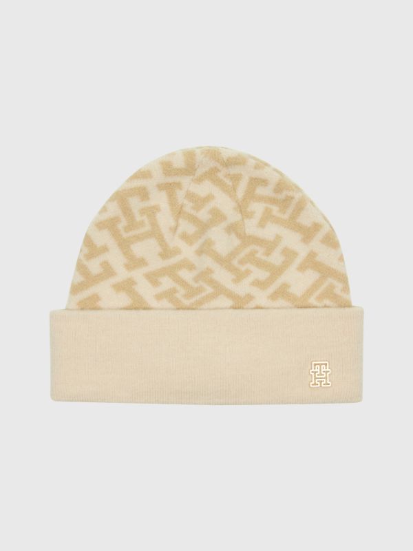 This cosy knitted wool-blend beanie features an all-over monogram pattern, with a branded plaque on the turn-up for a luxe finishing touch.