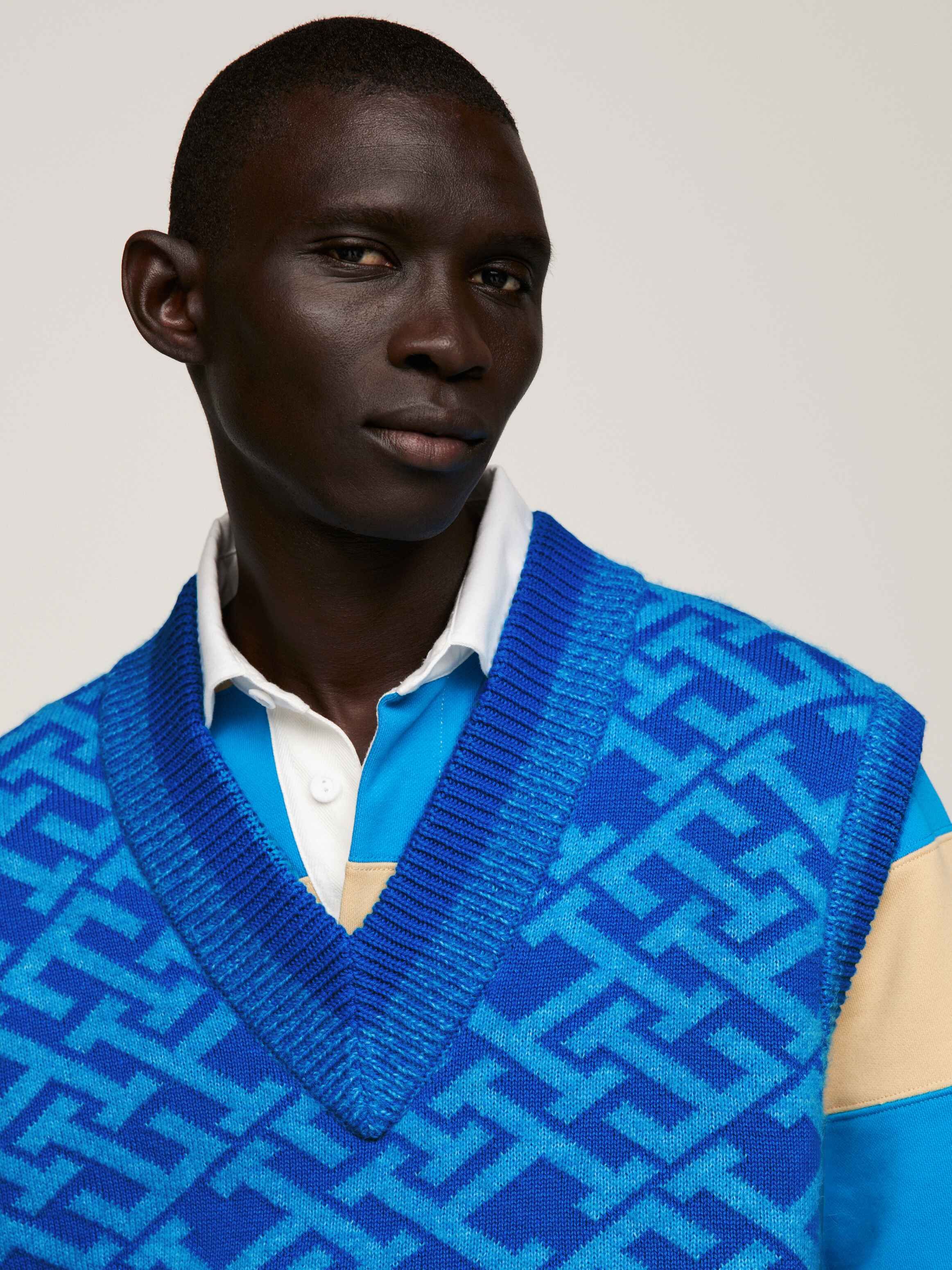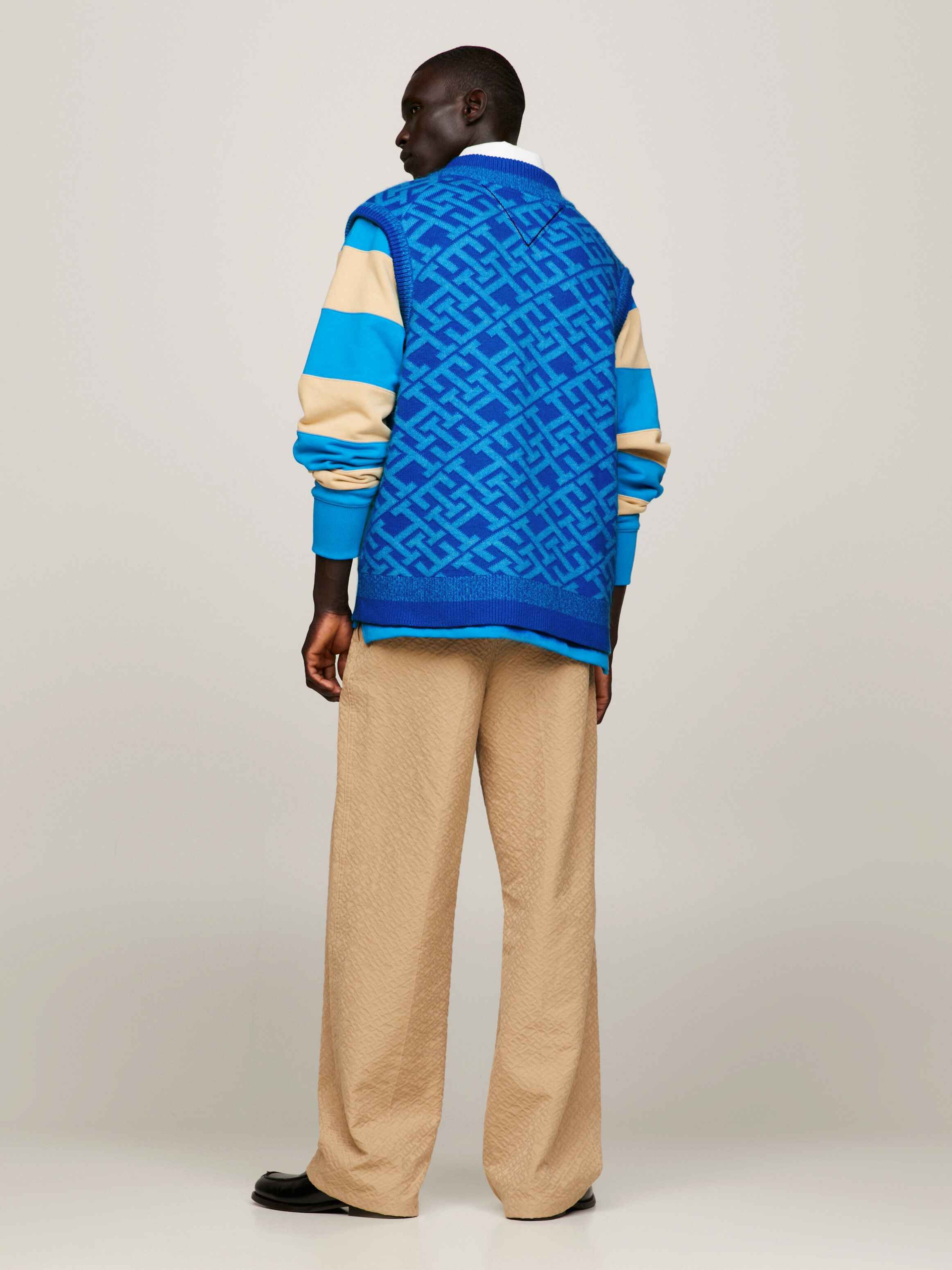 This stylish sweater vest features neat, all-over TH monograms and is crafted from premium fabrics for an elevated look.
