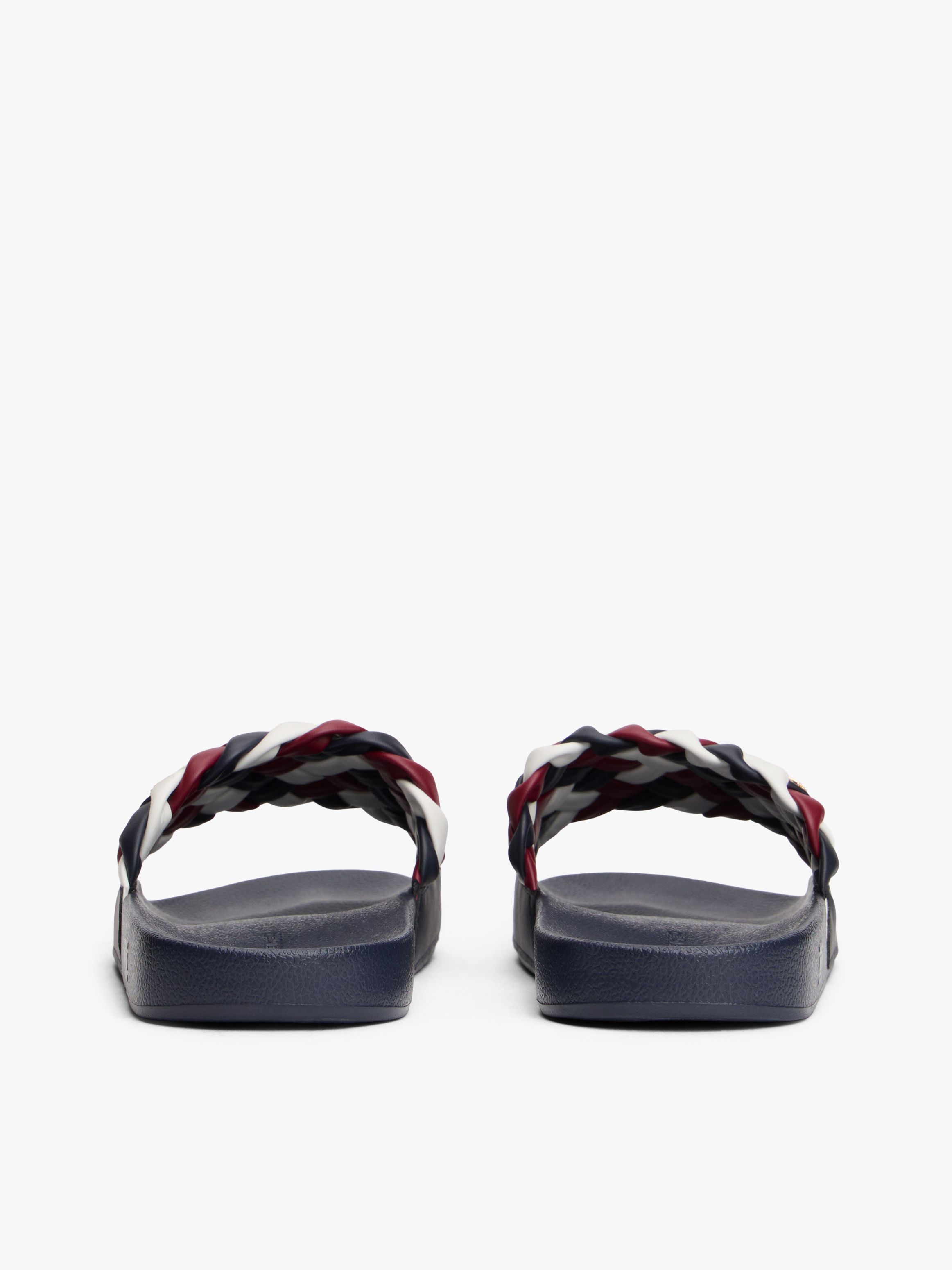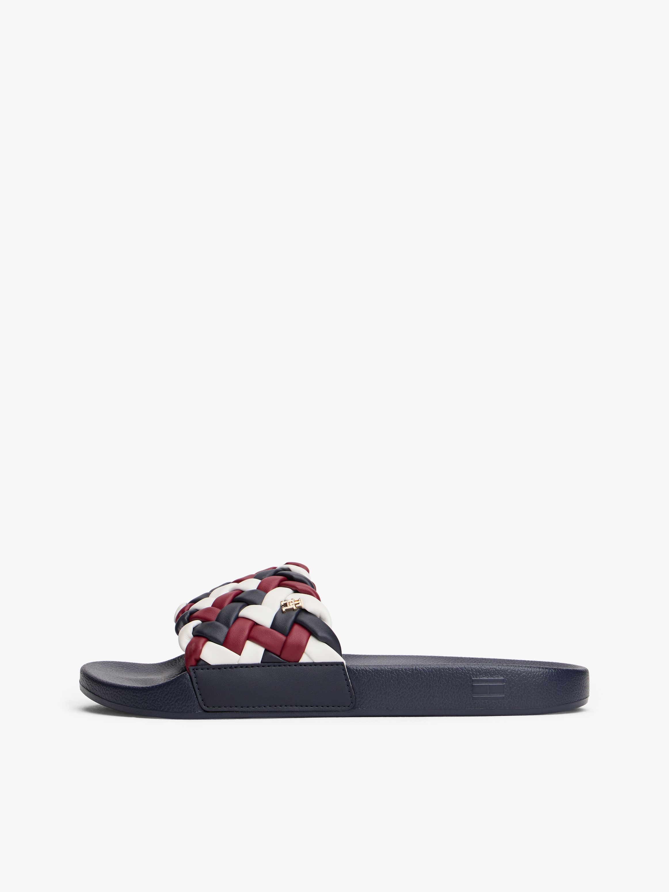 • Polyurethane mix upper • EVA outsole • Braided strap • Contoured footbed • TH monogram plaque on strap • Tommy Hilfiger logo debossed on footbed • Tommy Hilfiger branding