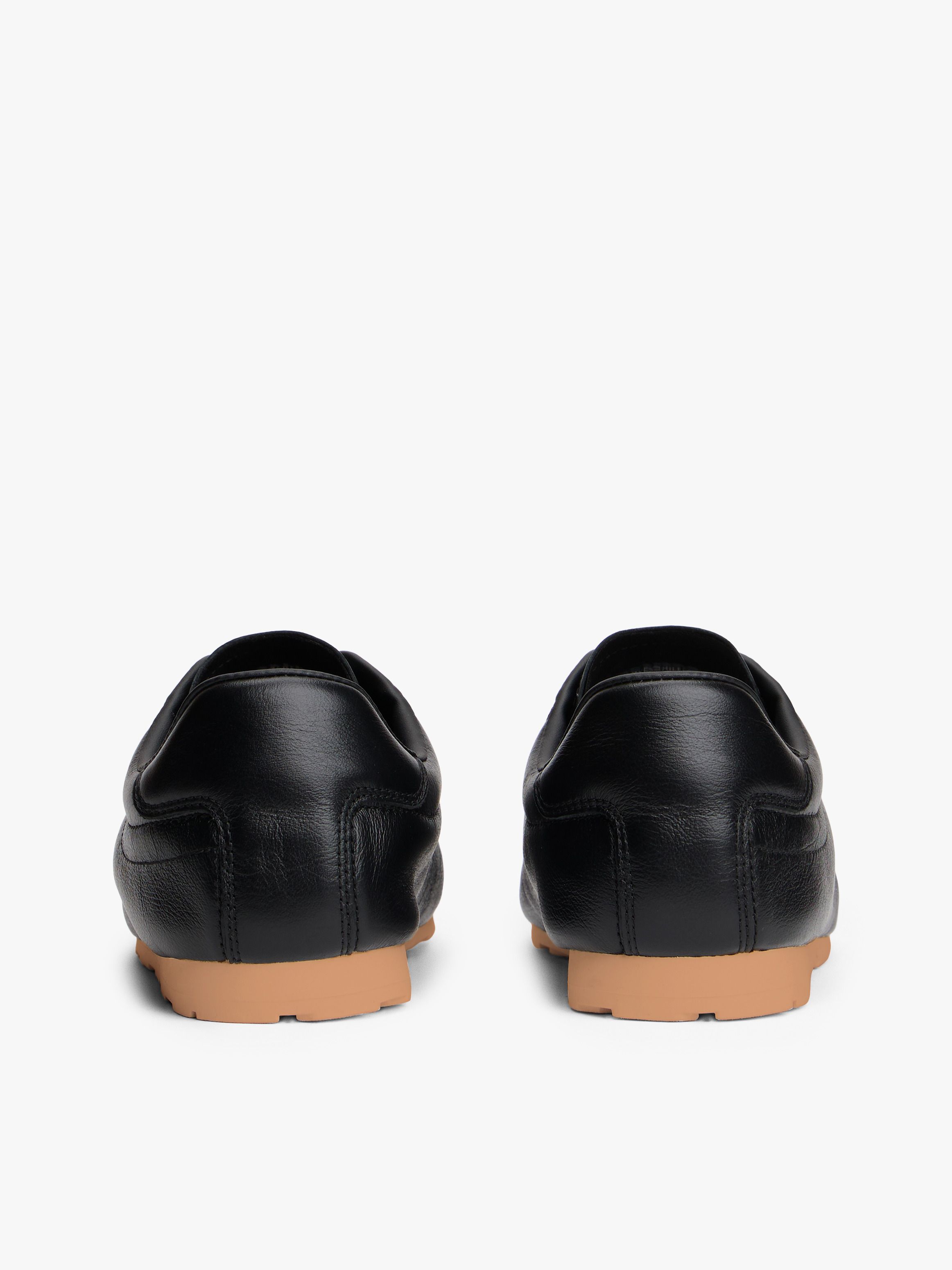 These trainers feature a ballerina-inspired low-profile silhouette, with metallic hardware and embossed logo detailing adding luxe texture to the design.