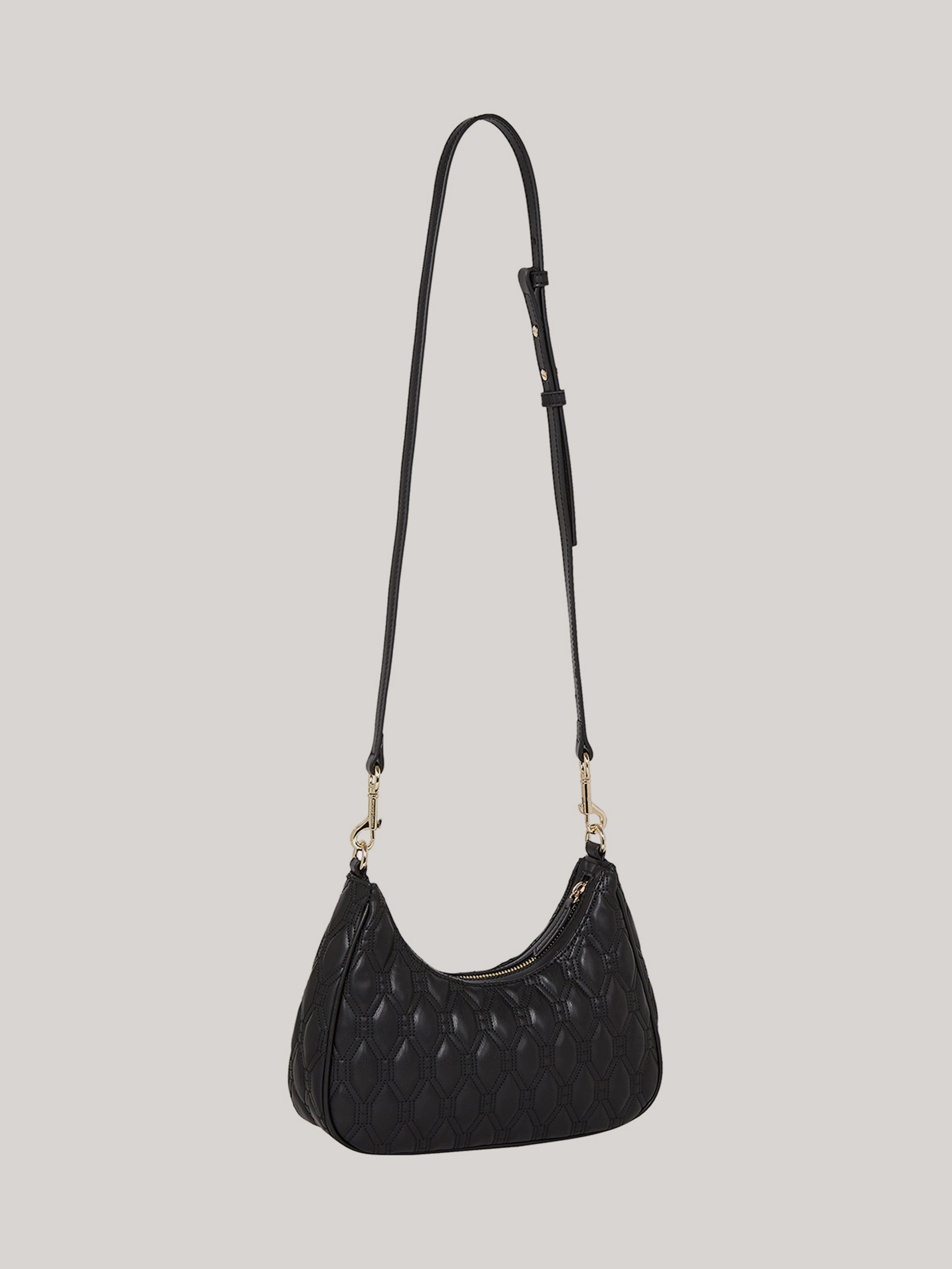 • Quilted stitching • Zip closure • Adjustable removable crossover strap • One main compartment • One interior zipped pocket • TH monogram plaque on front • Tommy Hilfiger branding