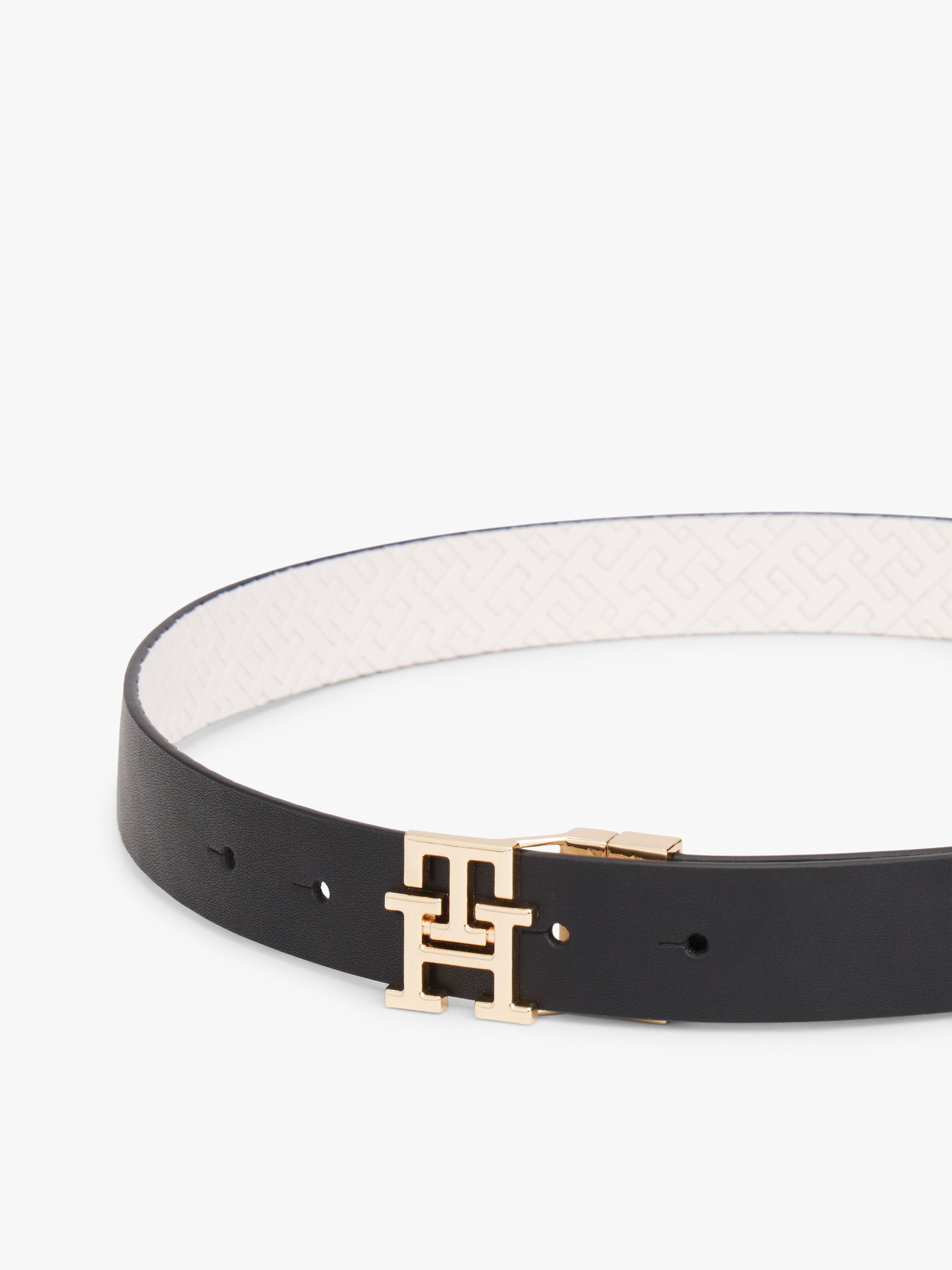 This smooth leather belt features a TH monogram repeat design on the reverse side for when you want to switch things up.