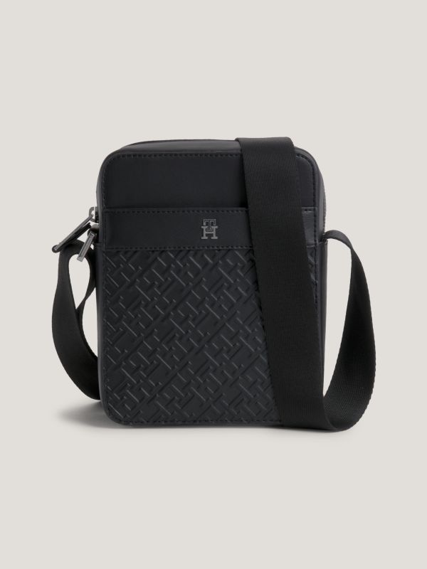 • Smooth finish • All-over TH monogram embossed on front • All-over TH monogram on lining • Zip closure • Adjustable crossover strap • One main compartment • One front slip pocket • One interior slip pocket • Tonal TH monogram plaque on front pocket • Tommy Hilfiger branding