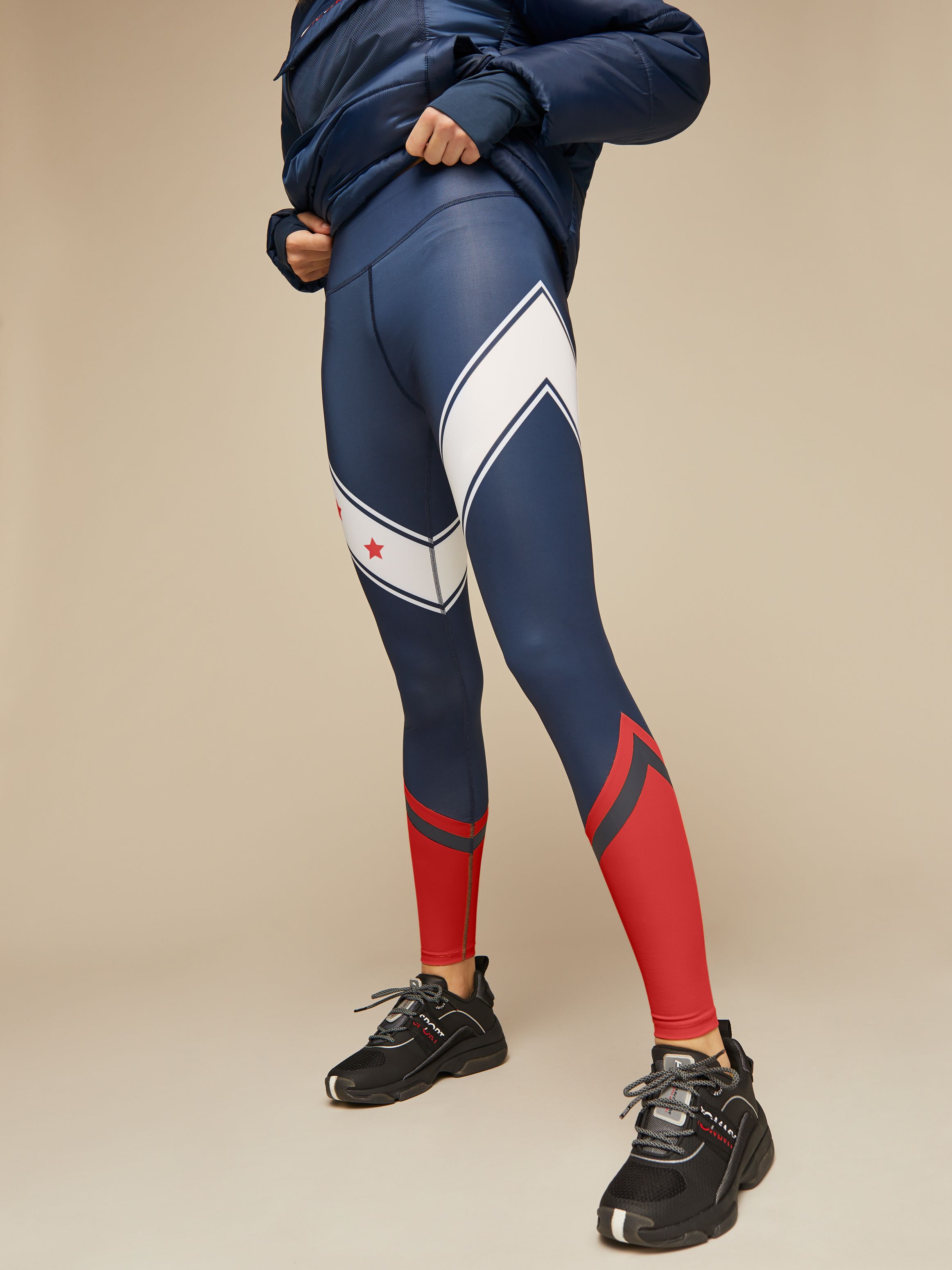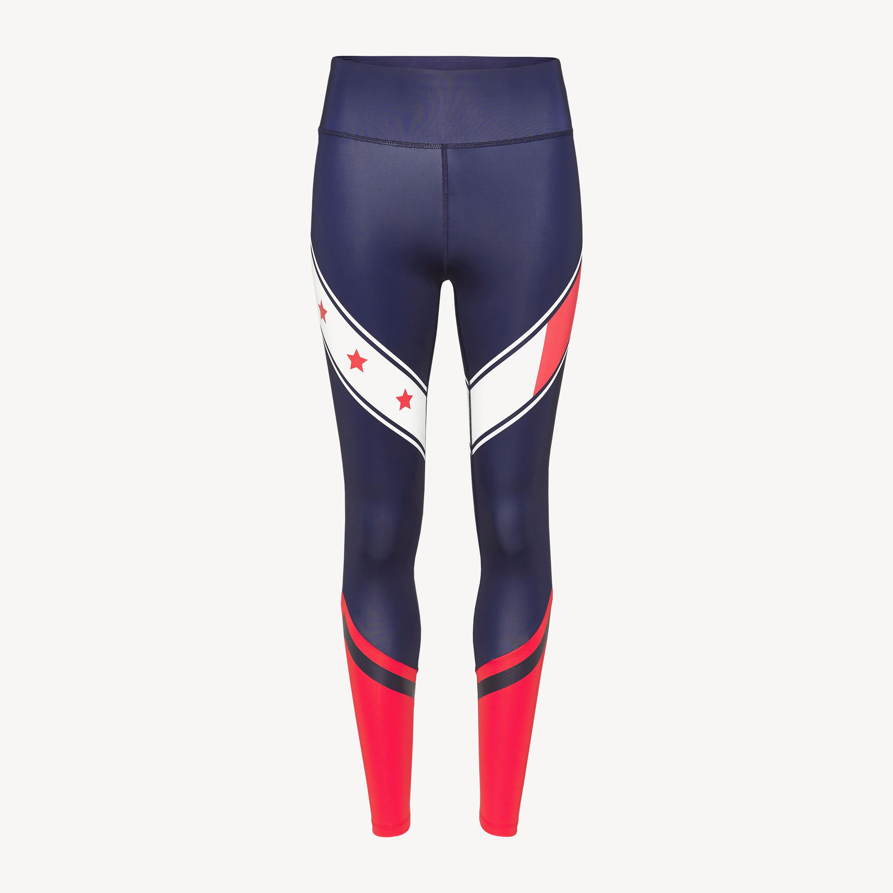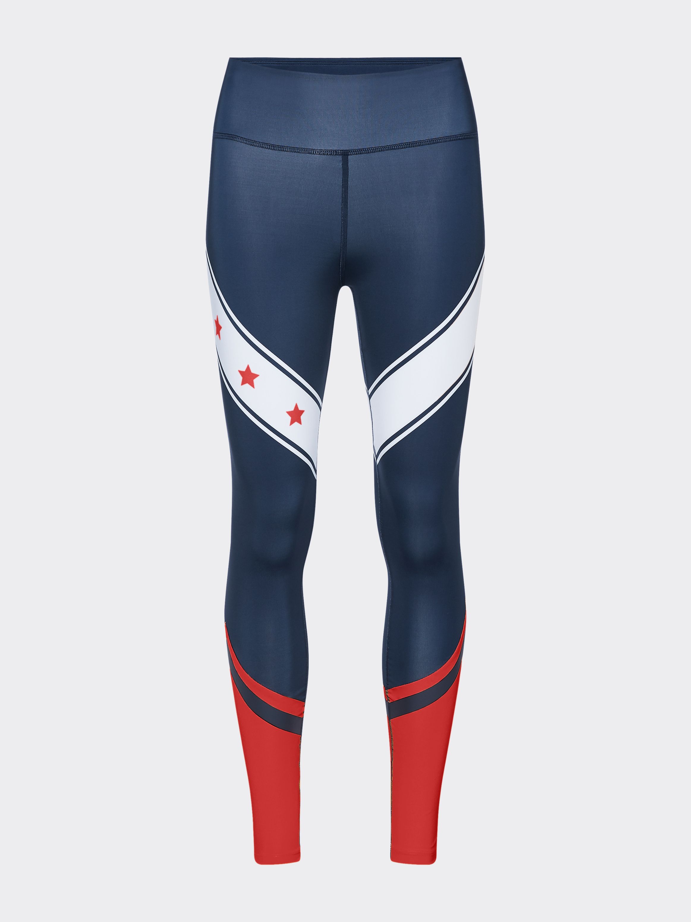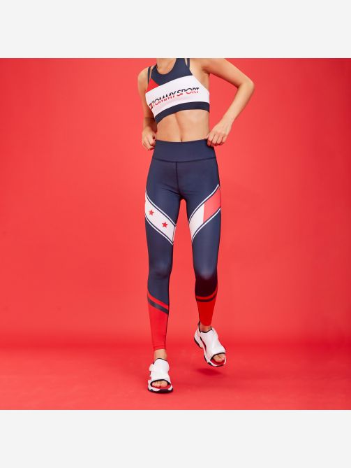 • Tight compression fabric • Stretch jersey • Moisture wicking • Contrast panels on legs • Contrast stripe and star print on front and back • Elasticated waistband • Tommy Sport logo at back • Tommy Sport flag at back
