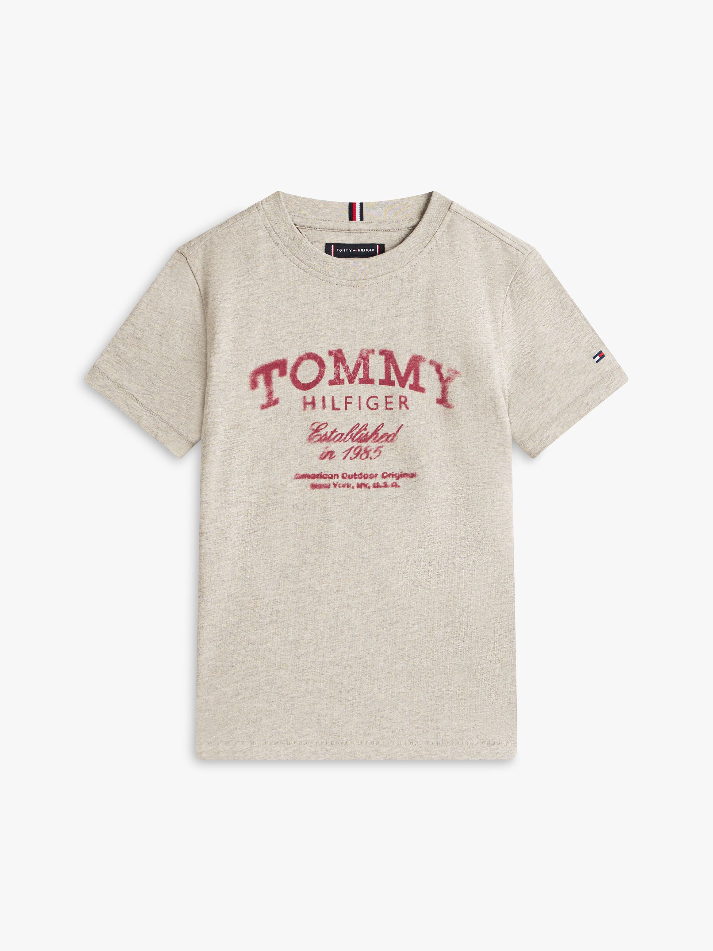Tommy Faded Print Short Sleeve T •Shirt offers a modern interpretation of everyday style, crafted from regenerative cotton (100%) in a refined grey finish.
