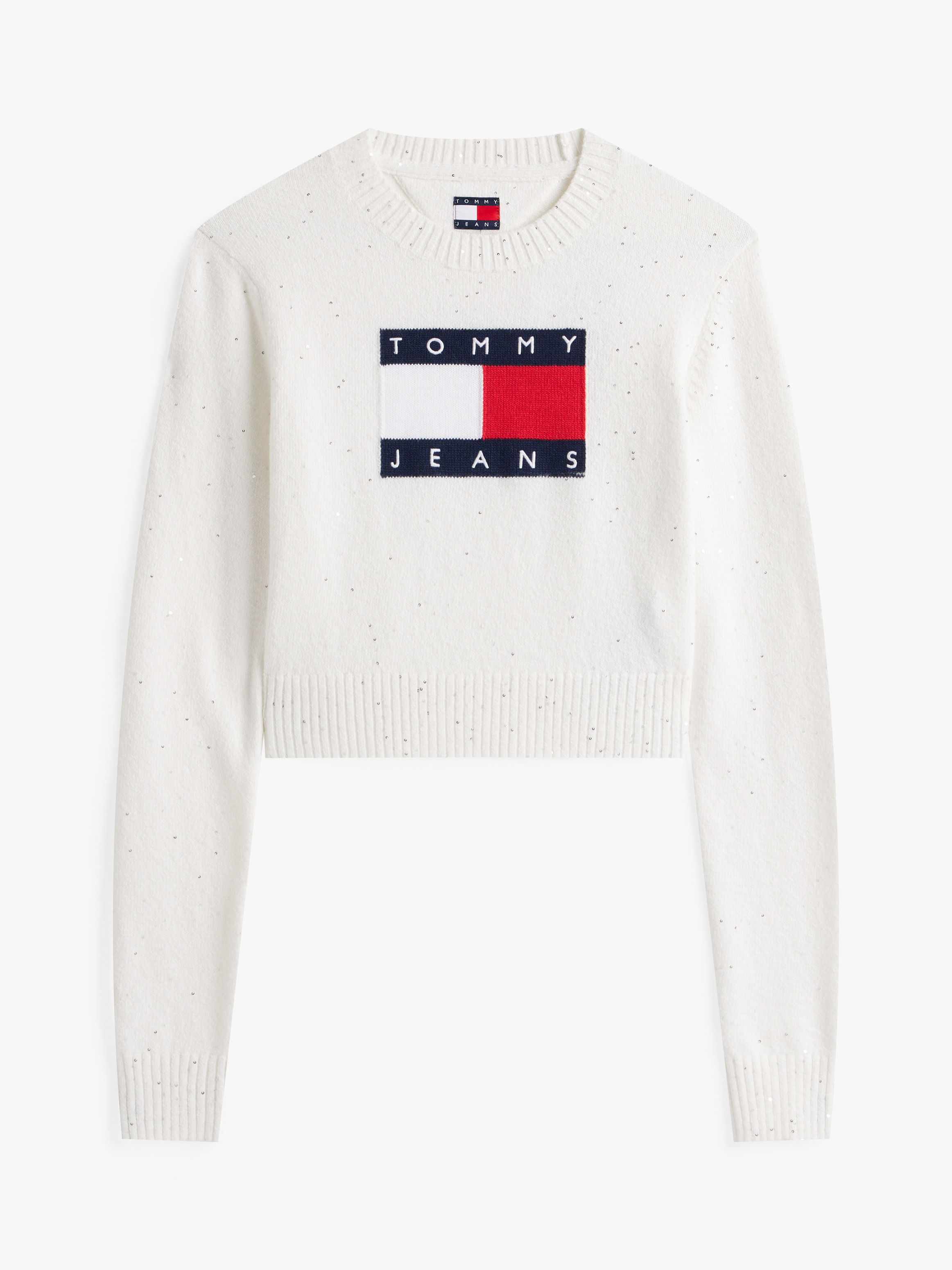 Get into the party spirit with this slim-fit jumper, knitted with sparkling sequins and finished with a bold Tommy flag badge.