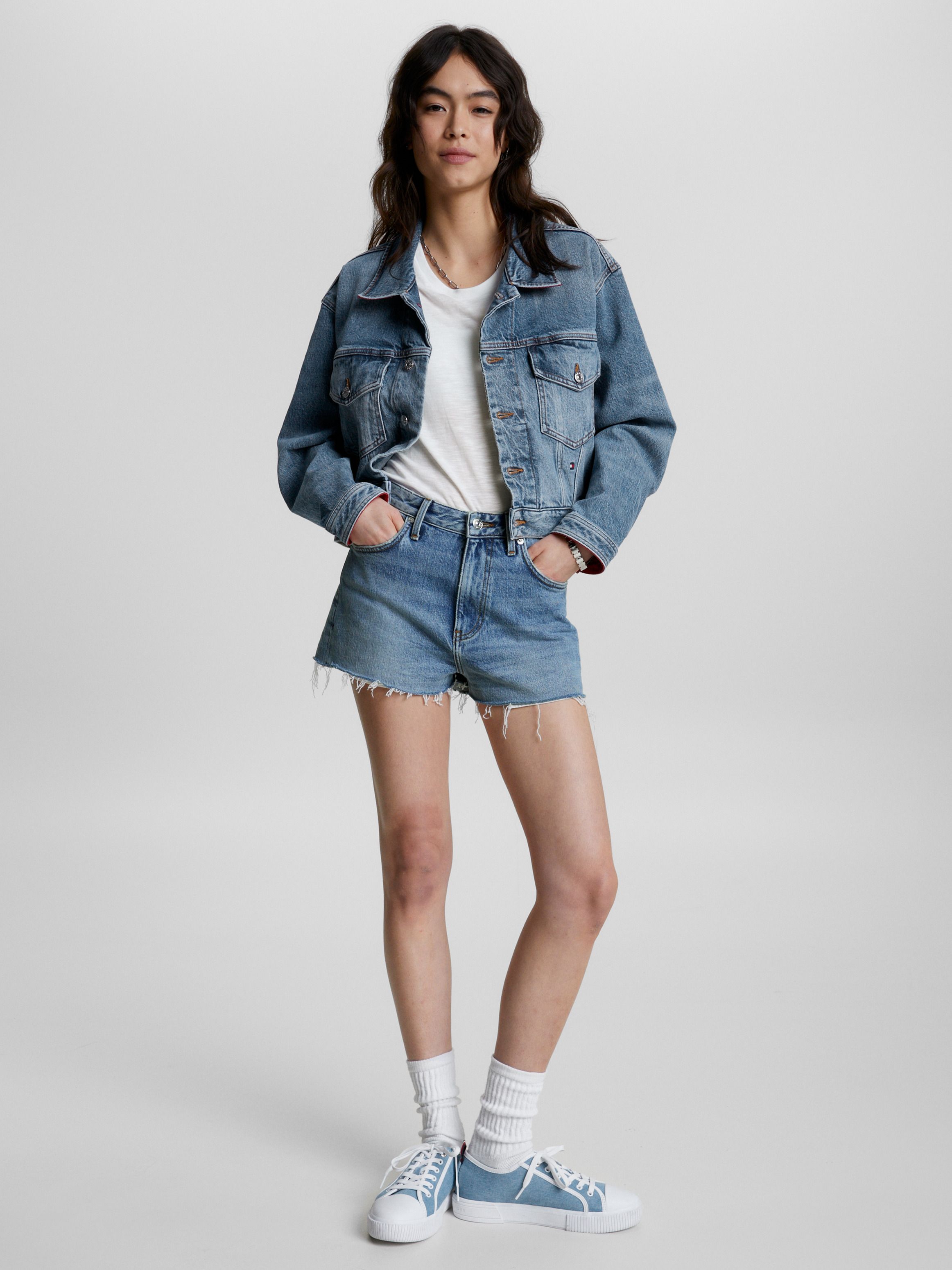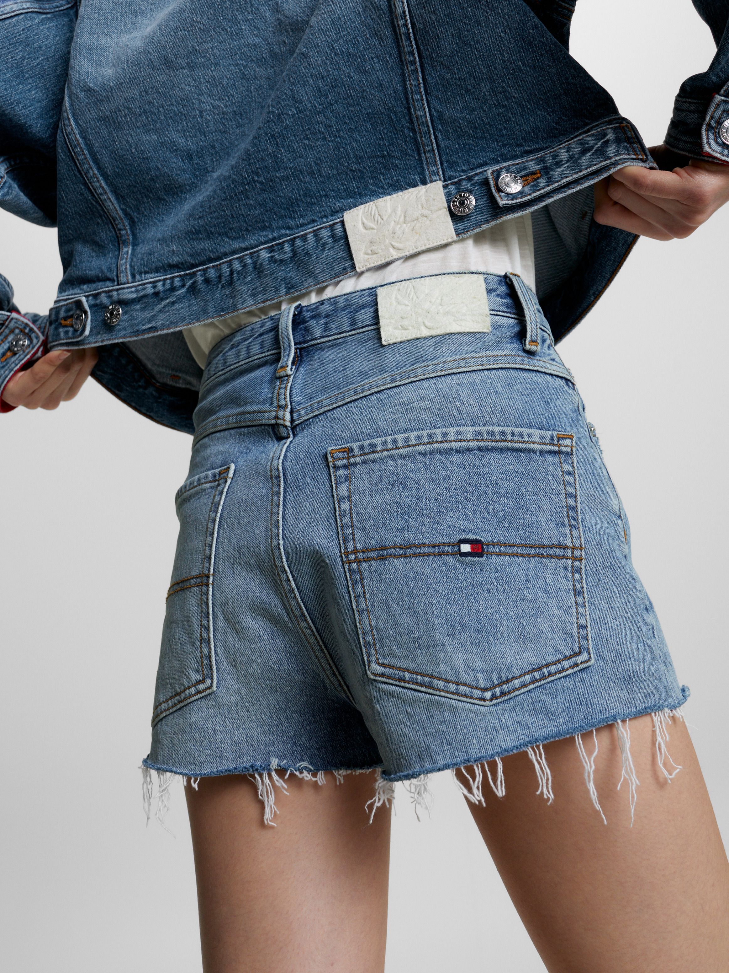 • Stretch cotton denim • Zip with button closure • Five-pocket styling • Raw hems • Tommy Hilfiger x Shawn Mendes branding • Tommy Hilfiger flag embroidery on coin and back pockets