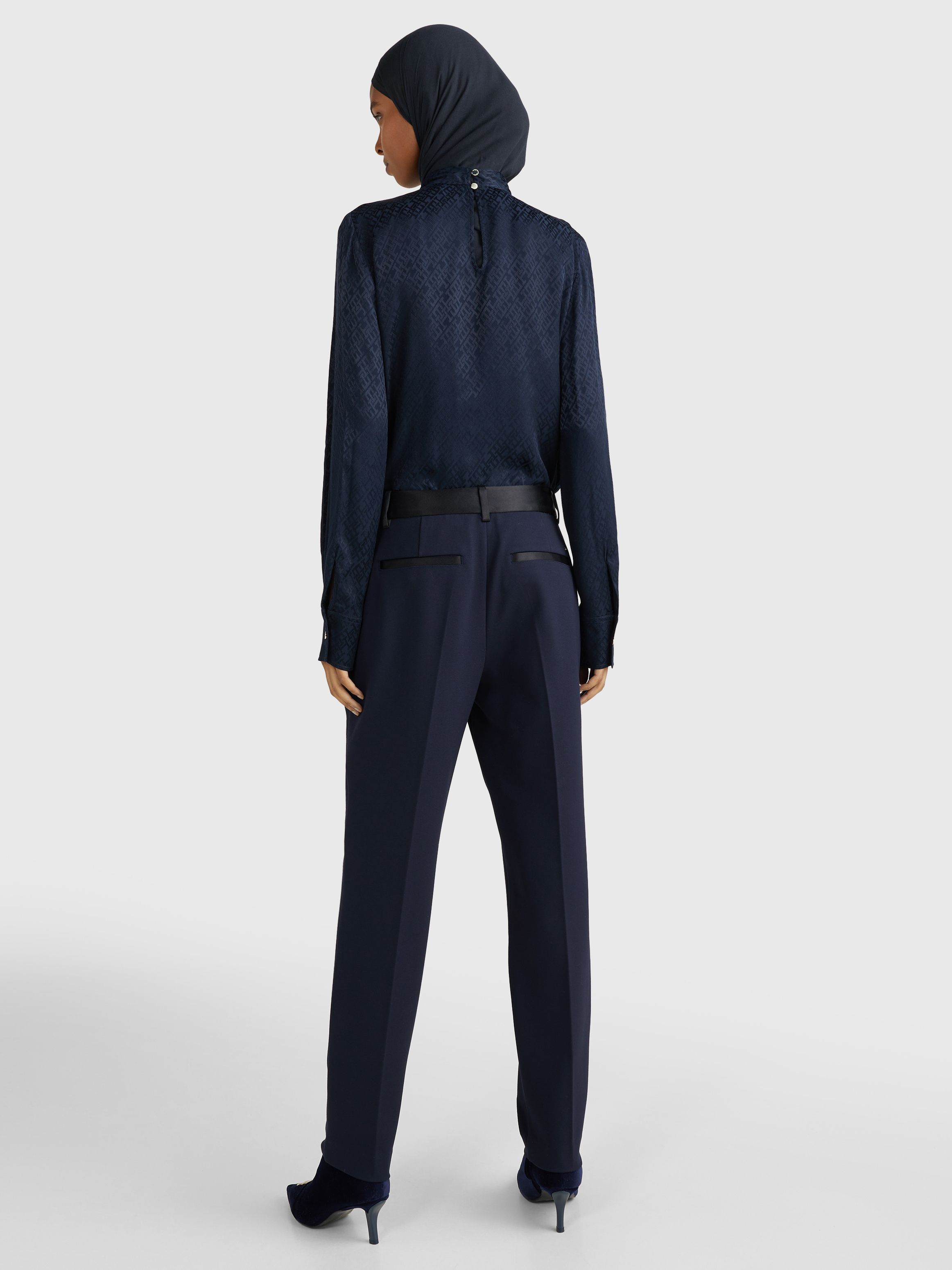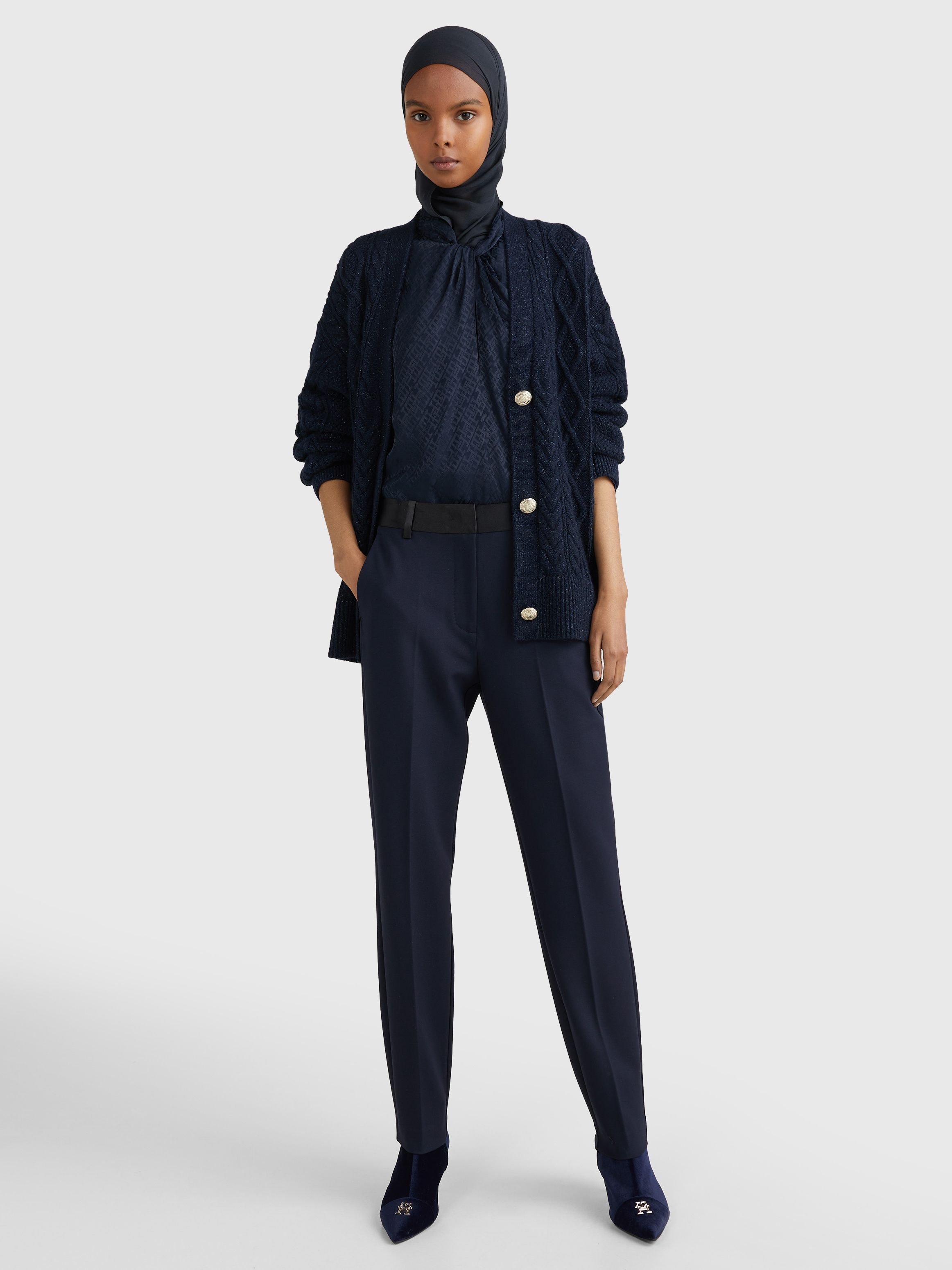 • Punto milano fabric • Zip closure • Two back welt pockets • Tonal detail on waist and pockets • Tommy Hilfiger branding • Tommy Hilfiger flag on back