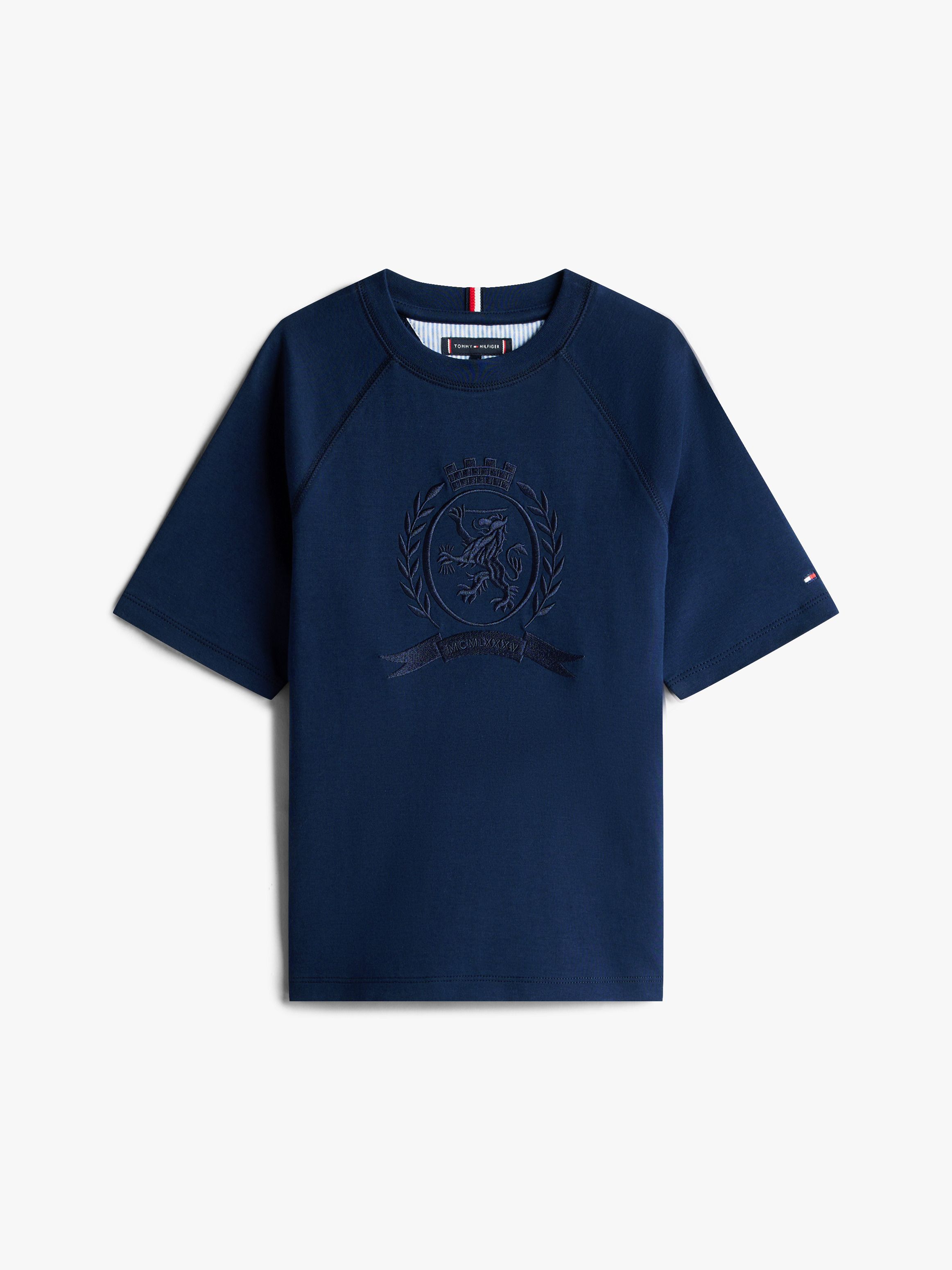 Tonal TH crest embroidery lends a refined air to this crew-neck T-shirt, crafted from pure cotton in a premium interlock knit.