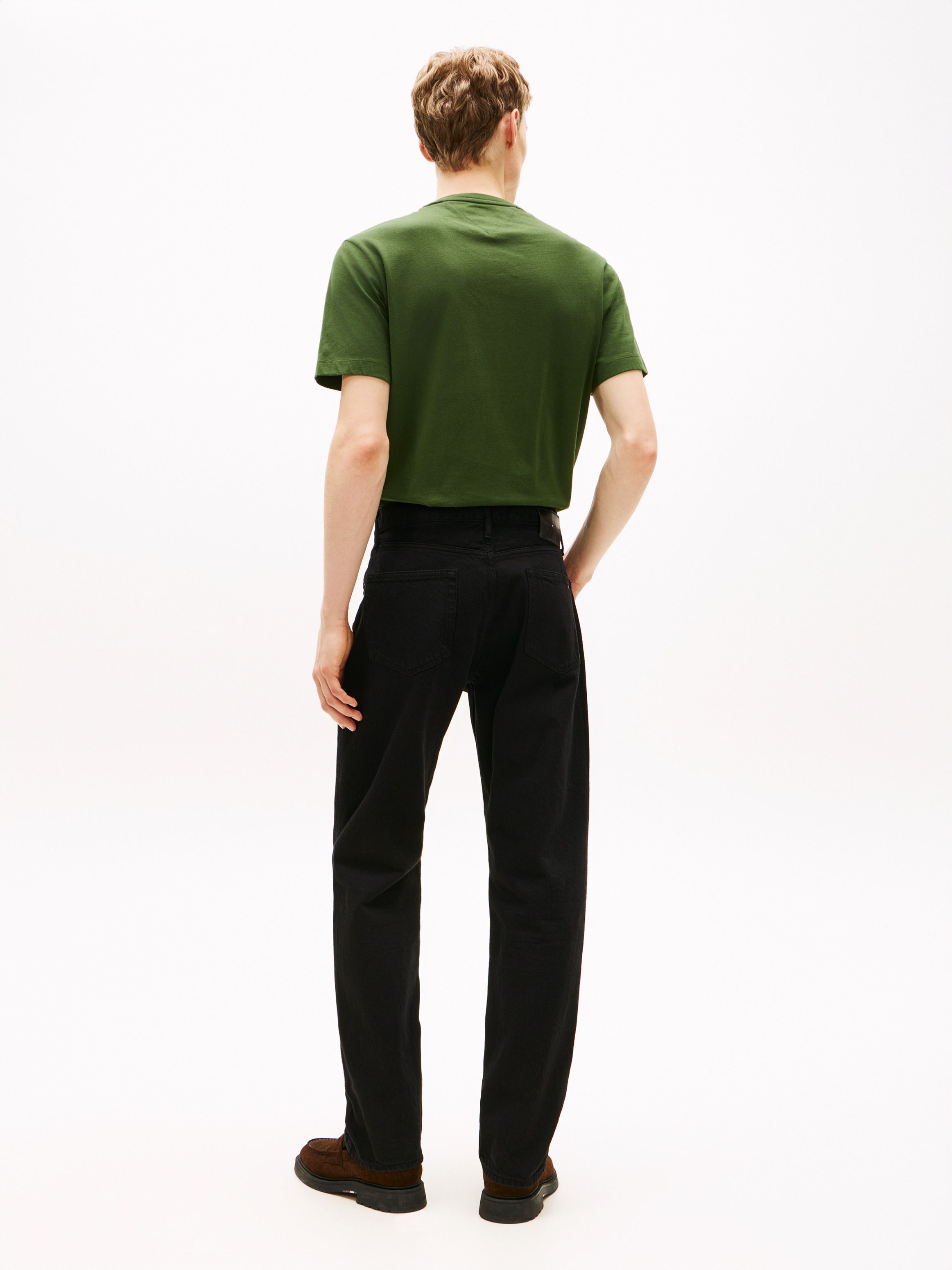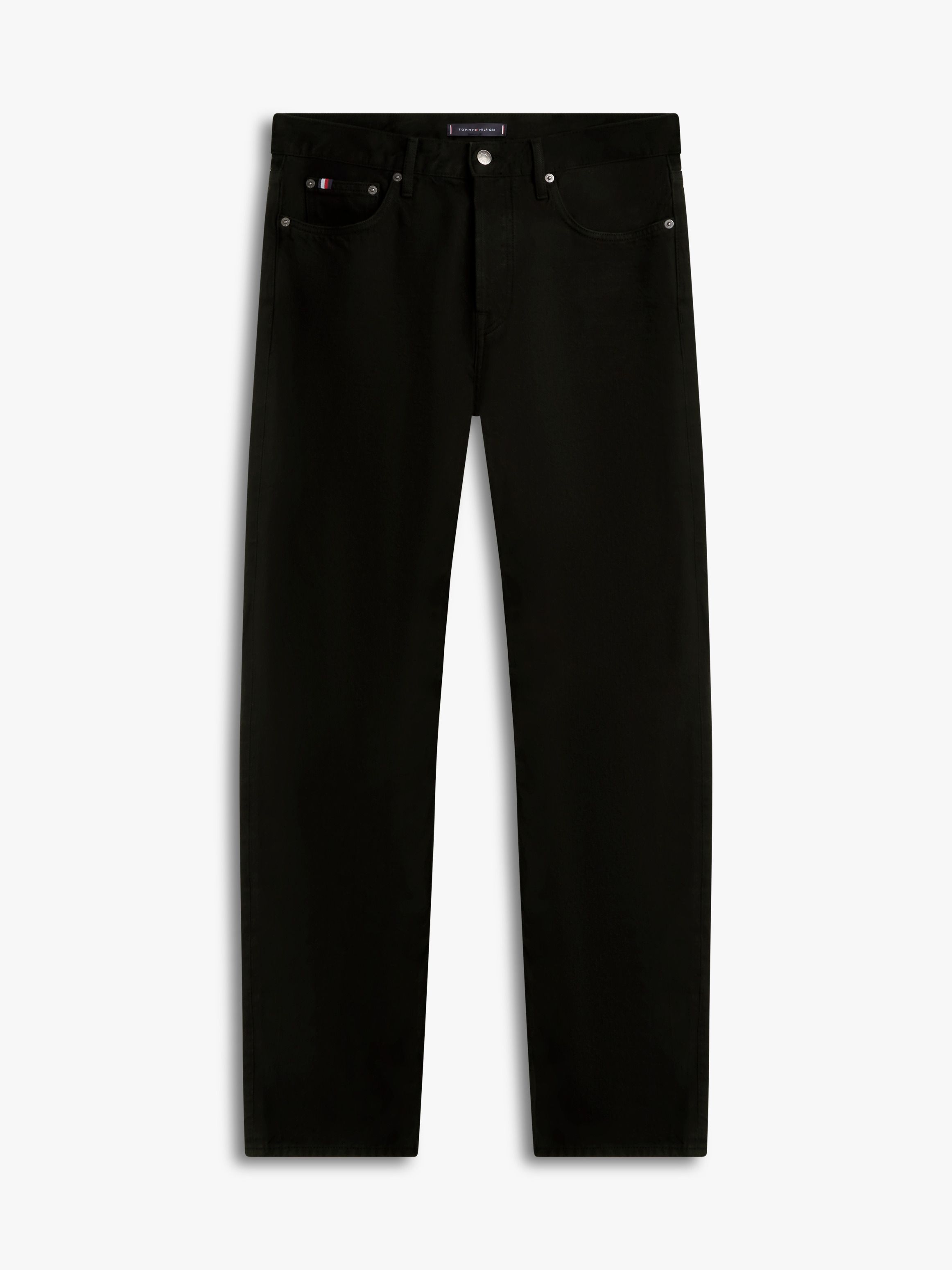 • Rigid denim • Garment dyed • Zip with button closure • Five-pocket styling • Signature tape on coin pocket • Tommy Hilfiger branding • Tommy Hilfiger flag embroidery on back pocket
