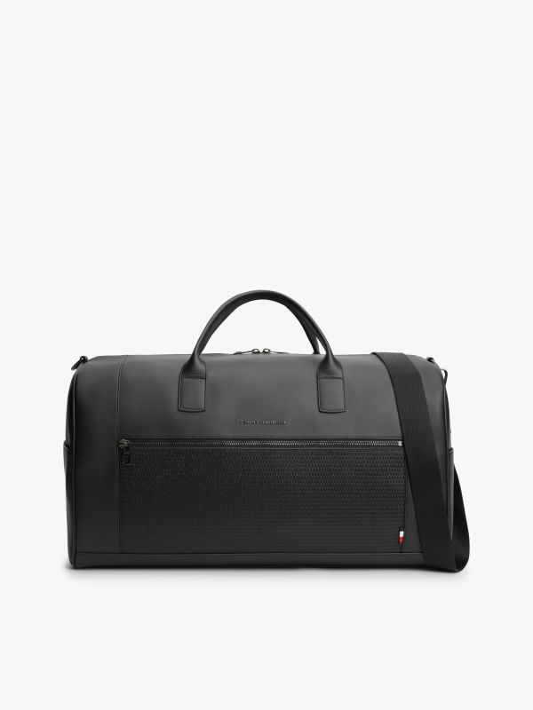 • Smooth finish • Woven detail on front pocket • Zip closure • Two top handles • Removable crossbody strap • One main compartment • One exterior zipped compartment • Two exterior slip pockets • Signature tape on front pocket • Tommy Hilfiger metal logo on front • Tommy Hilfiger branding
